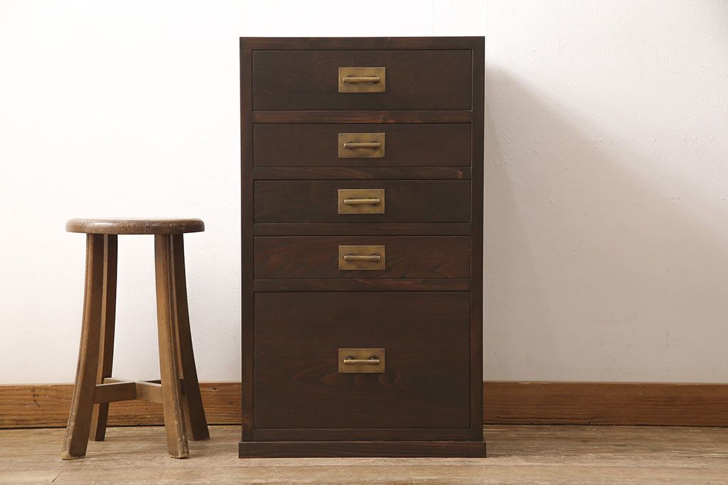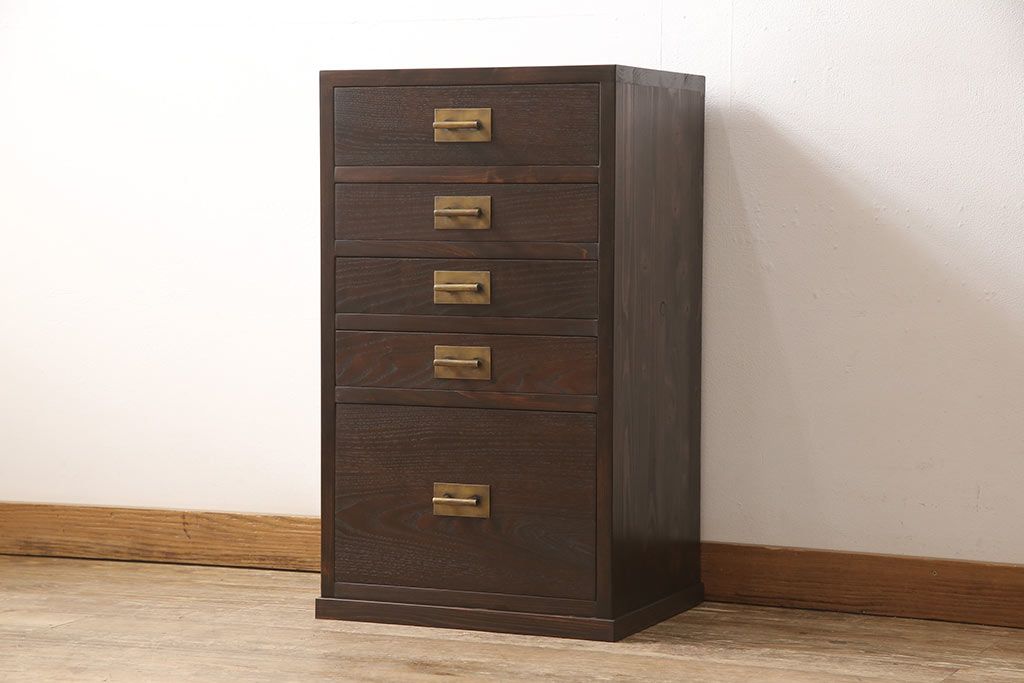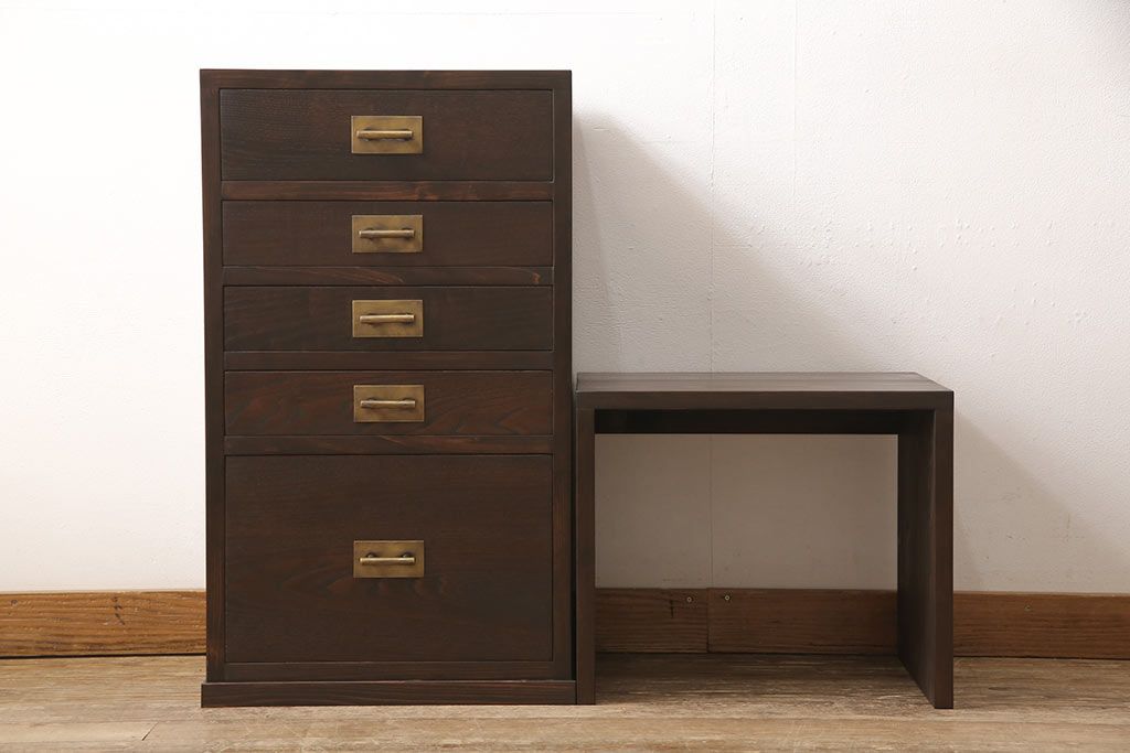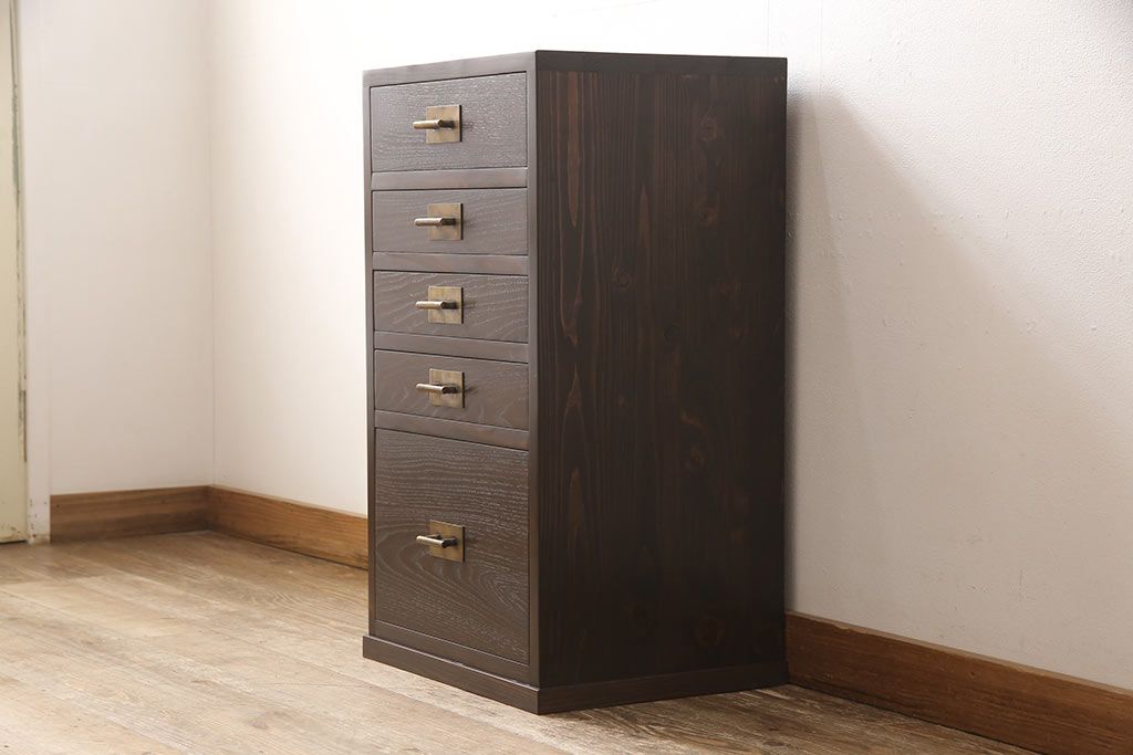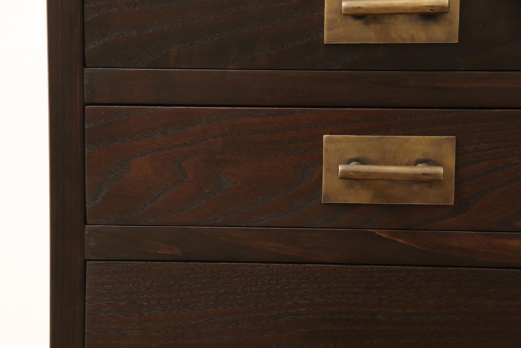 小引き出しを新規製作!引手にお客様支給の真鍮製引手を使用。(サイドチェスト)