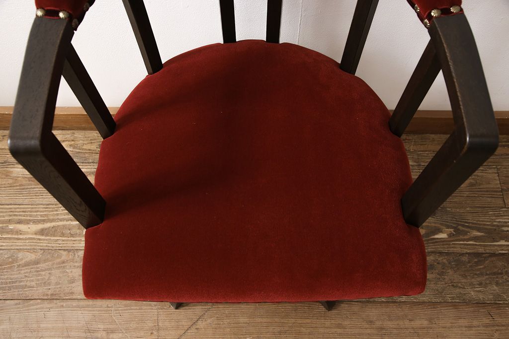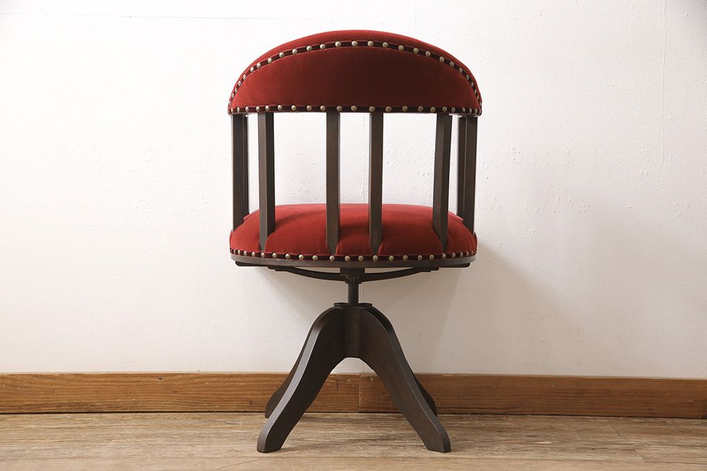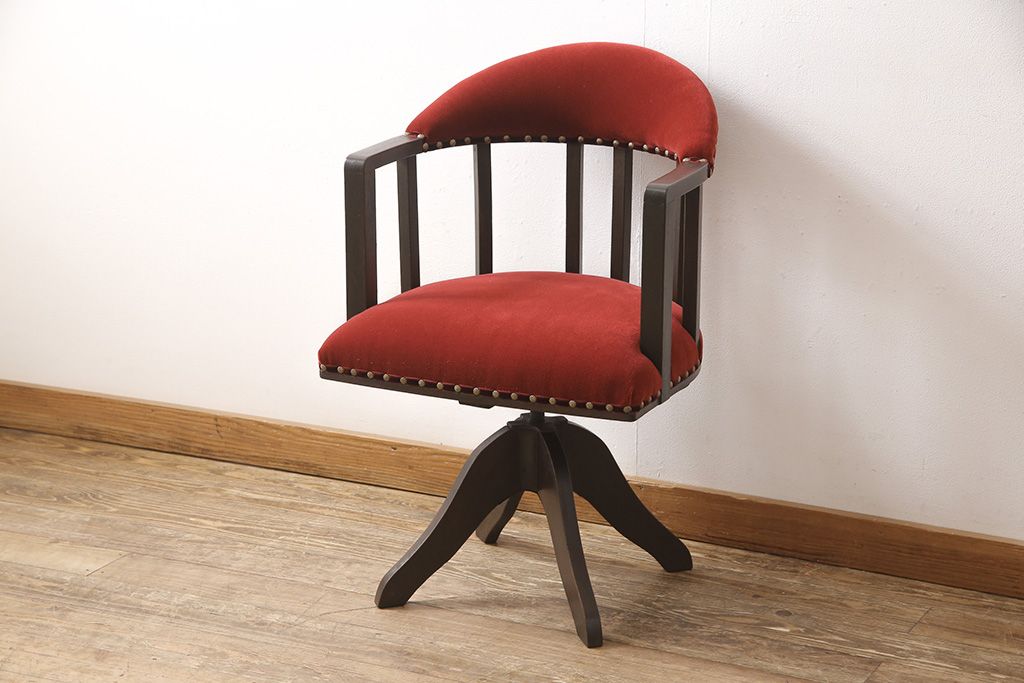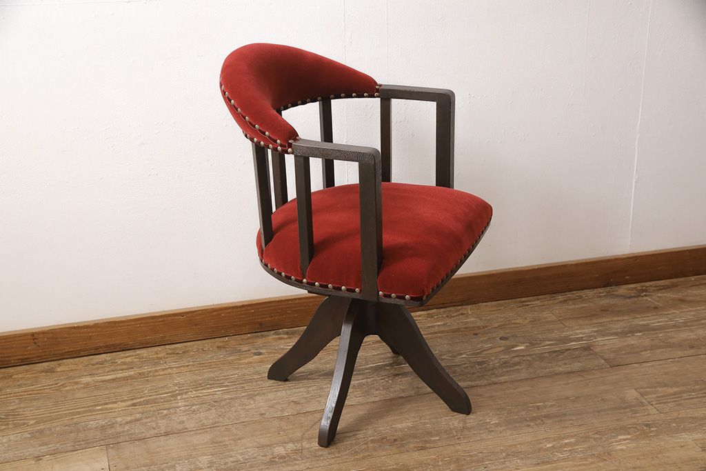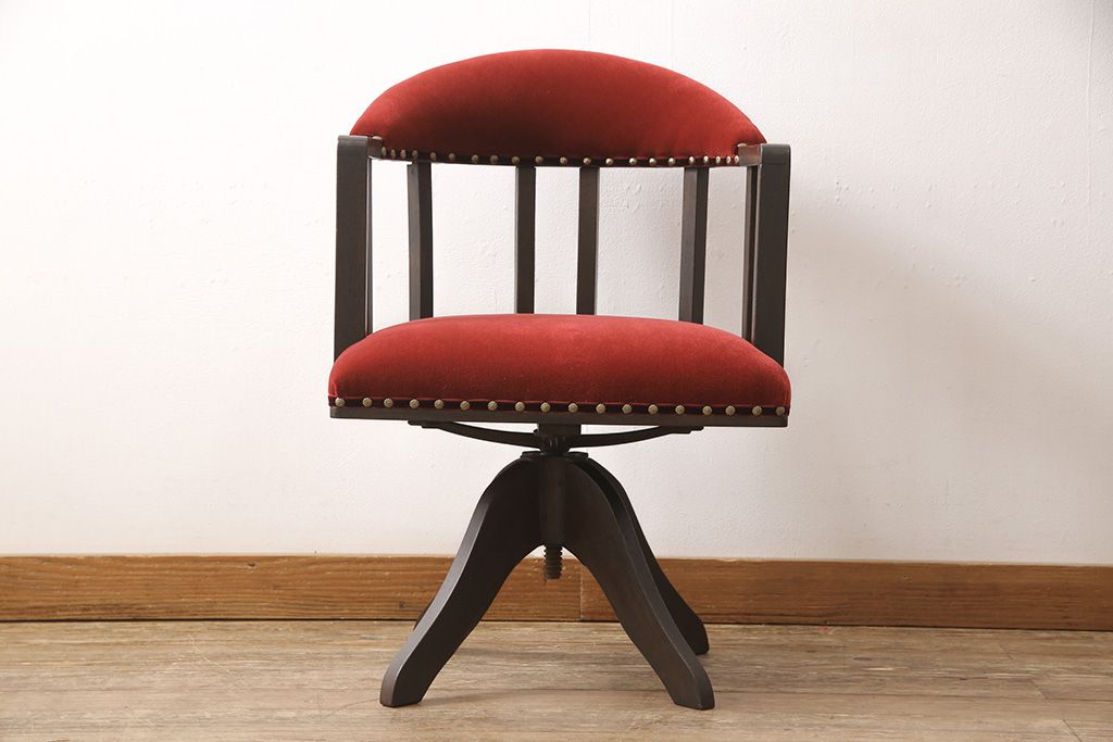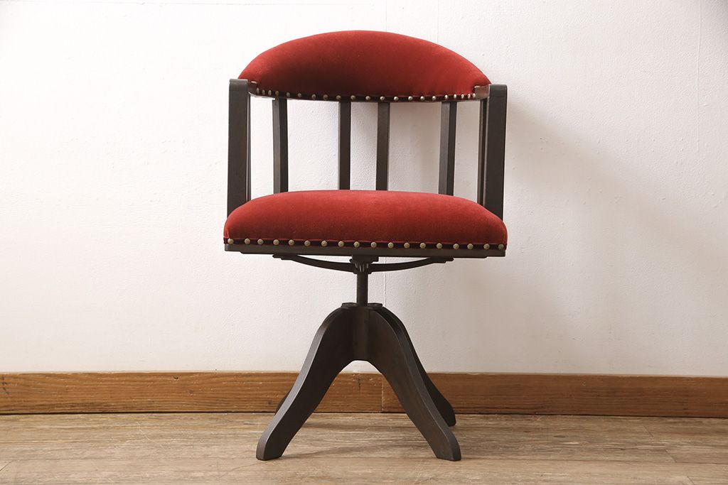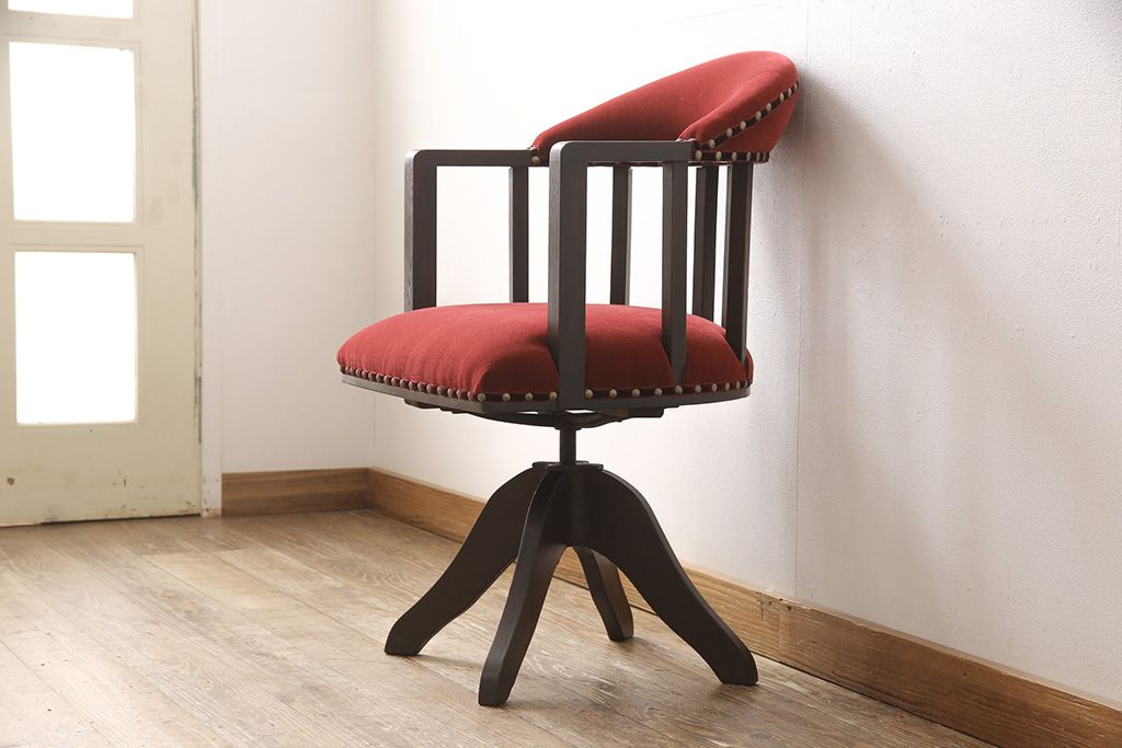 回転イスをリペア&カスタム!クッション座面を張り、木部は濃い茶色に着色し仕上げ。(ドクターチェア、アームチェア)