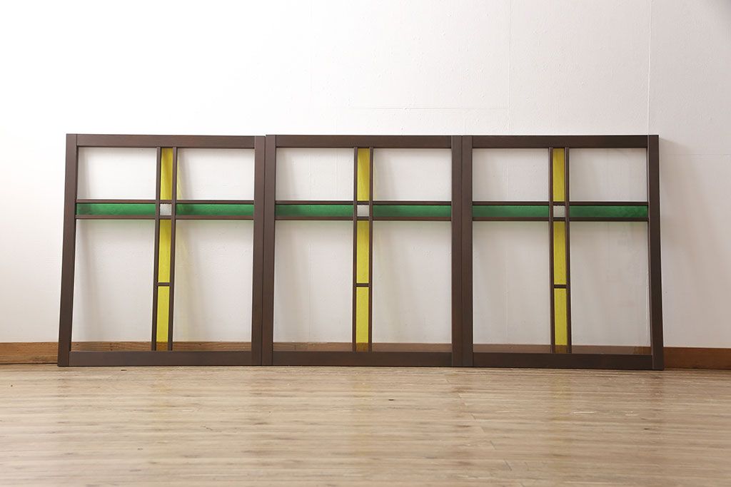 ガラス窓3枚を新規製作!色ガラス・ダイヤガラスを使用し、大正ロマンな仕上がりに。(建具、ガラス戸)