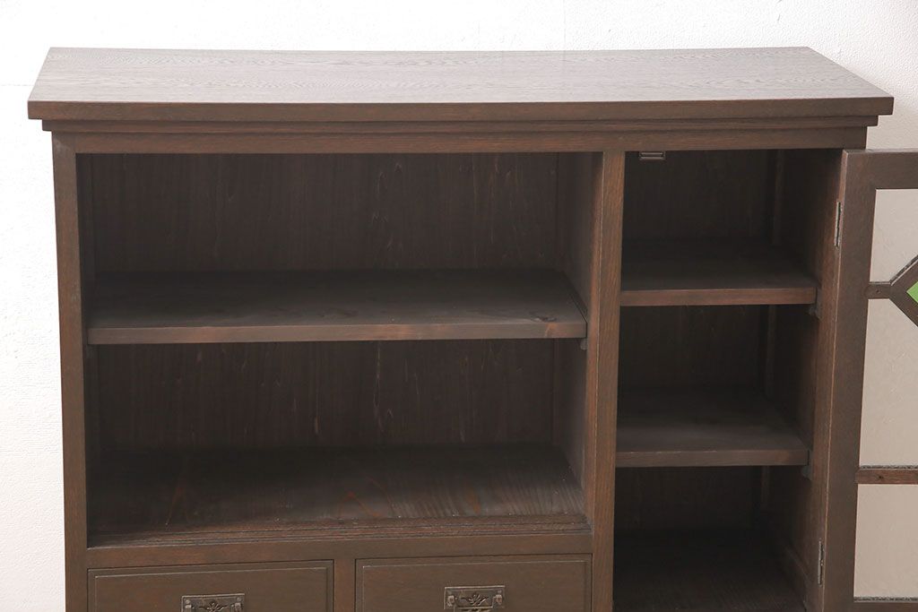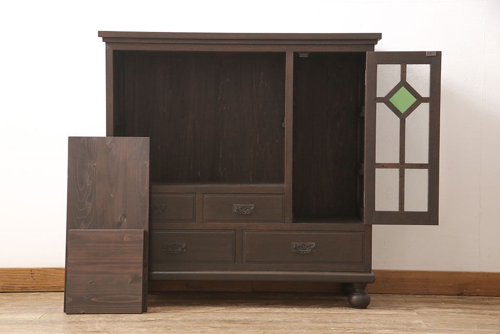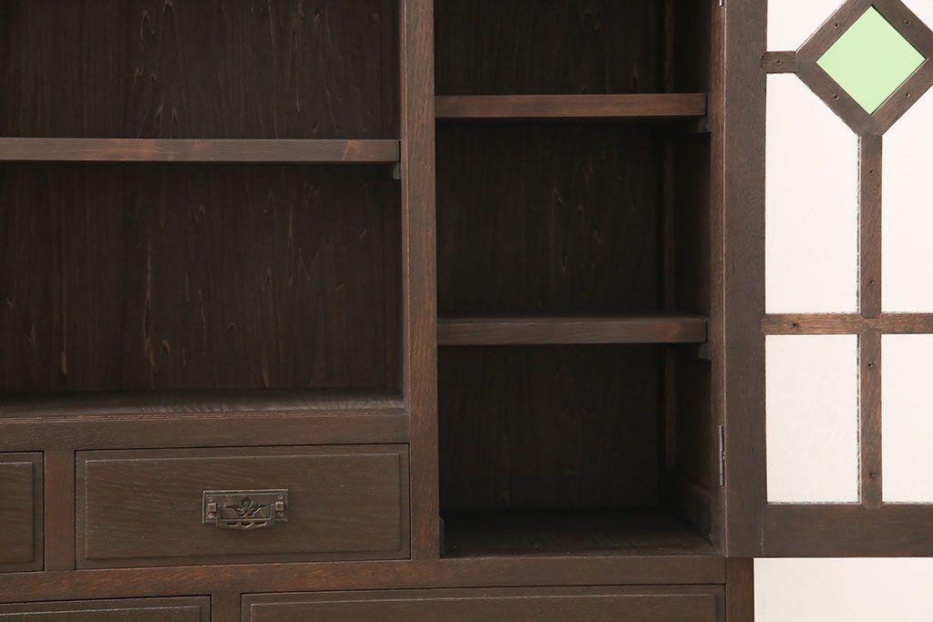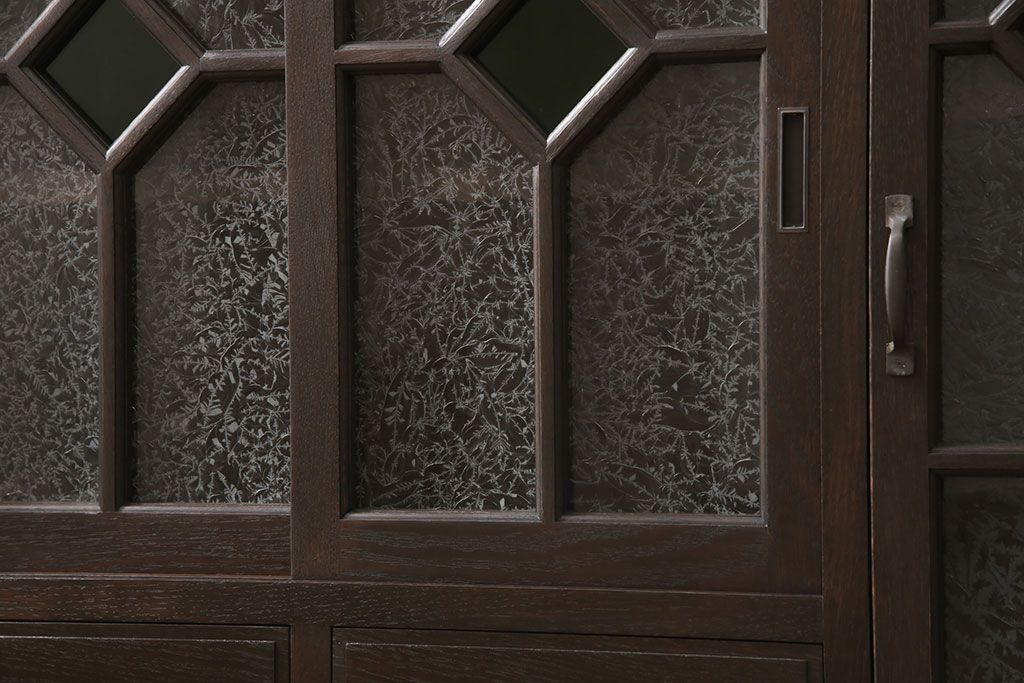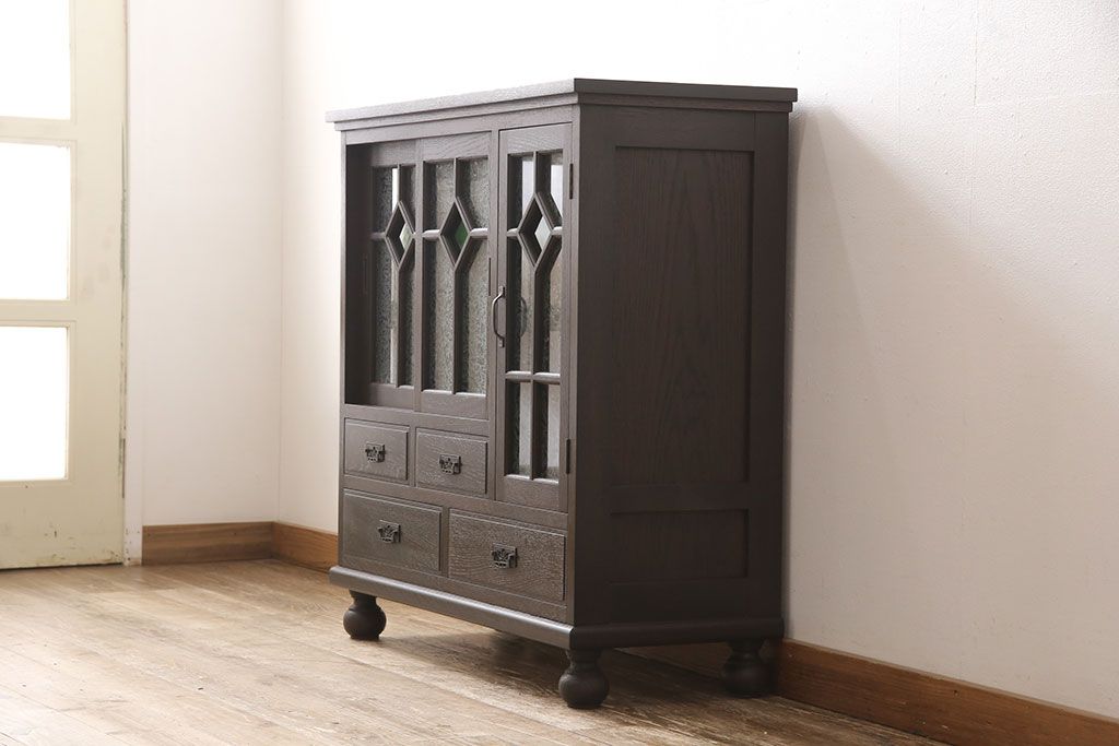 収納棚を新規製作!扉に色ガラスや結霜ガラスを使い、大正ロマン風に。(キャビネット、戸棚)