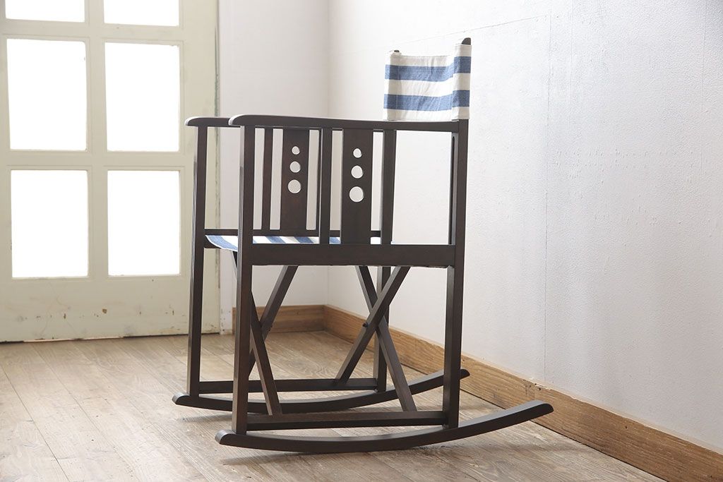 日本楽器・山葉(ヤマハ)の折り畳み式ロッキングチェアをリペア&カスタム!高品質リペアを施し、生地を張り替え。(アームチェア、椅子)