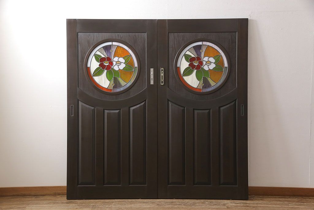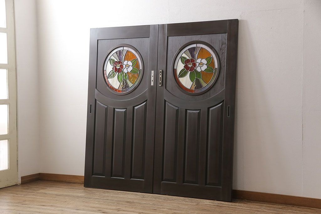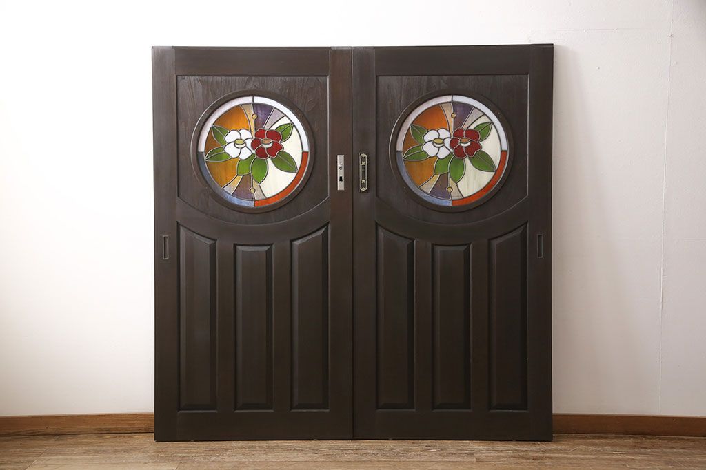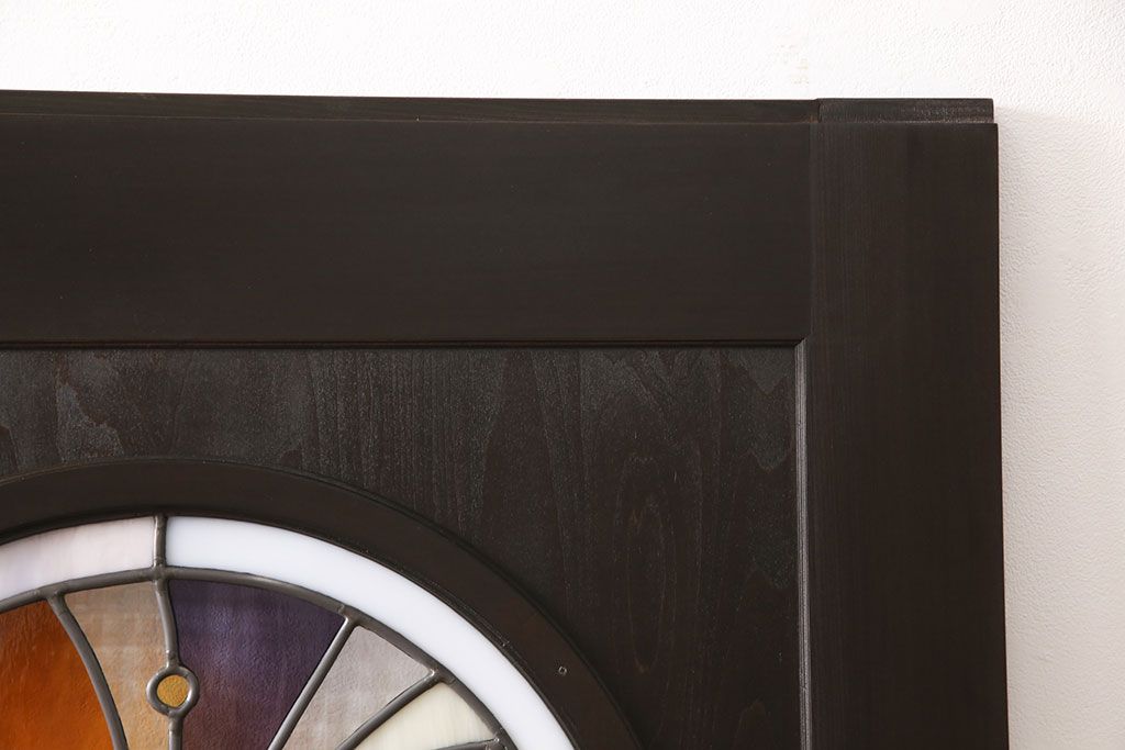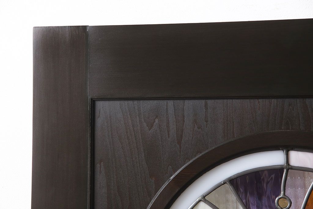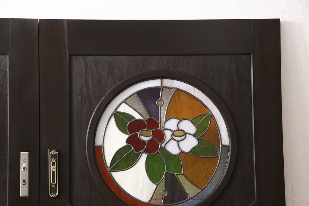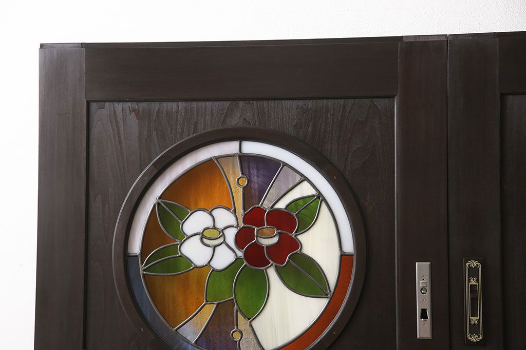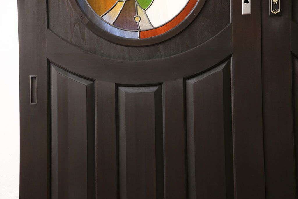 ドア・建具> 板戸・帯戸 > ステンドグラス入り引き戸を新規製作!お客様のデザインを元にステンドグラスを制作。木部はモールディングを施し、クラシカルな仕上がりに。(玄関戸、引き違い戸)