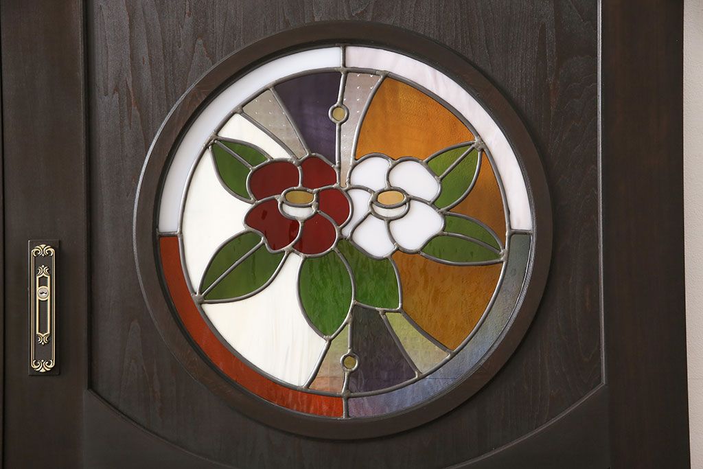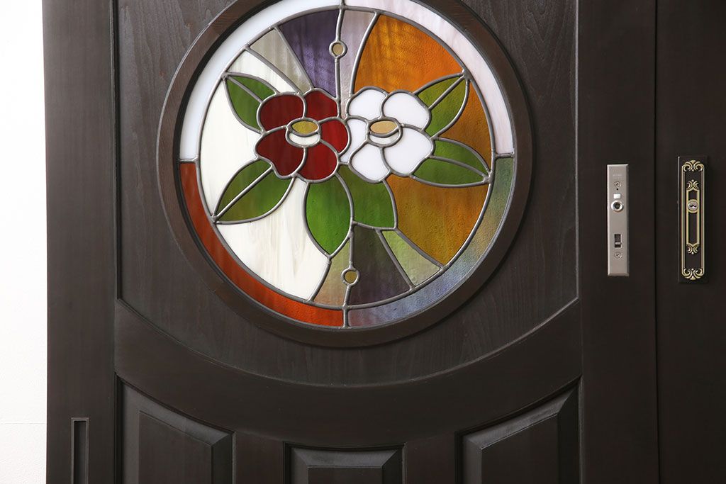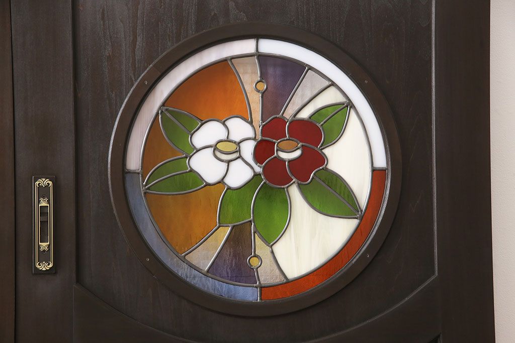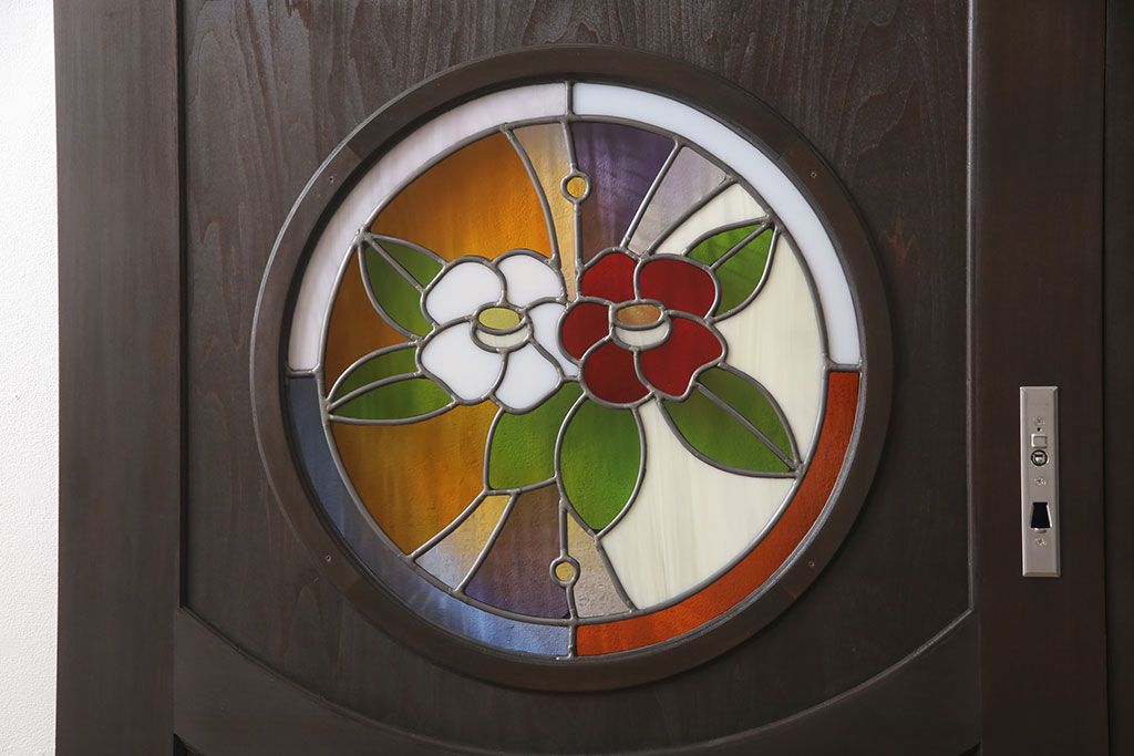 ステンドグラス入り引き戸を新規製作!お客様のデザインを元にステンドグラスを制作。木部はモールディングを施し、クラシカルな仕上がりに。(玄関戸、引き違い戸)