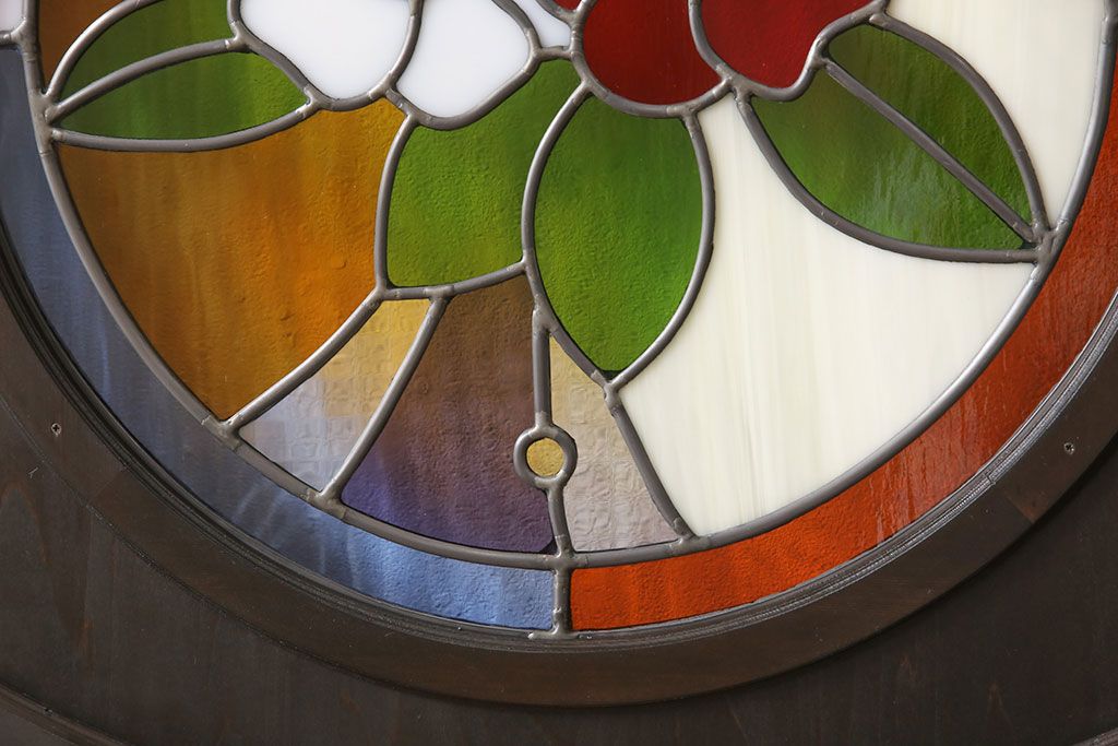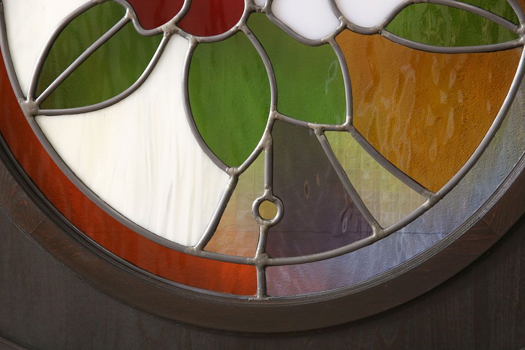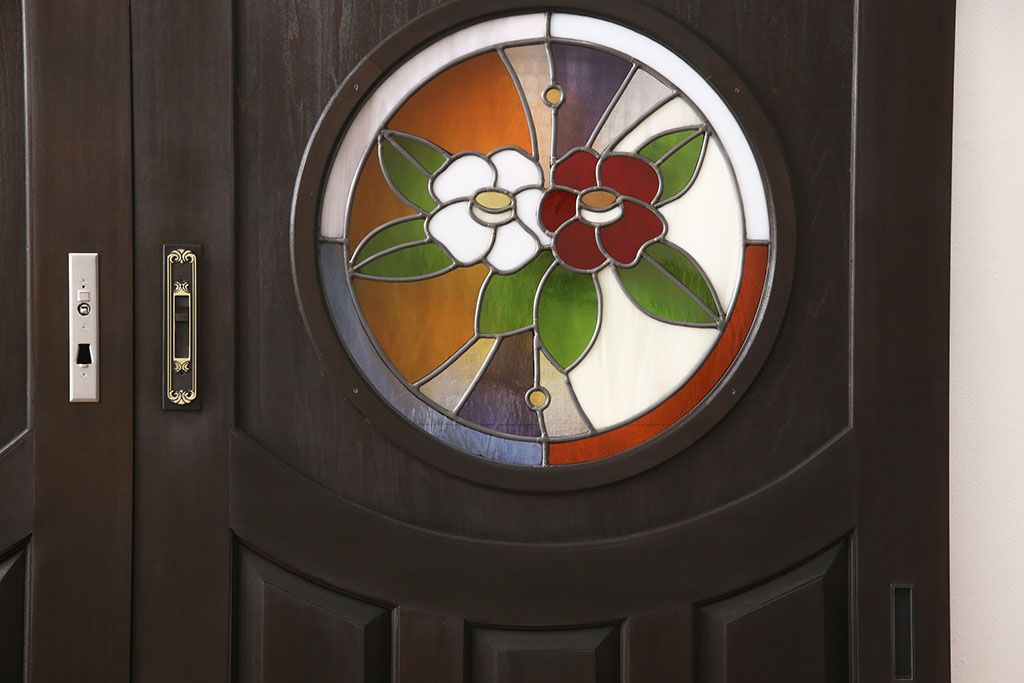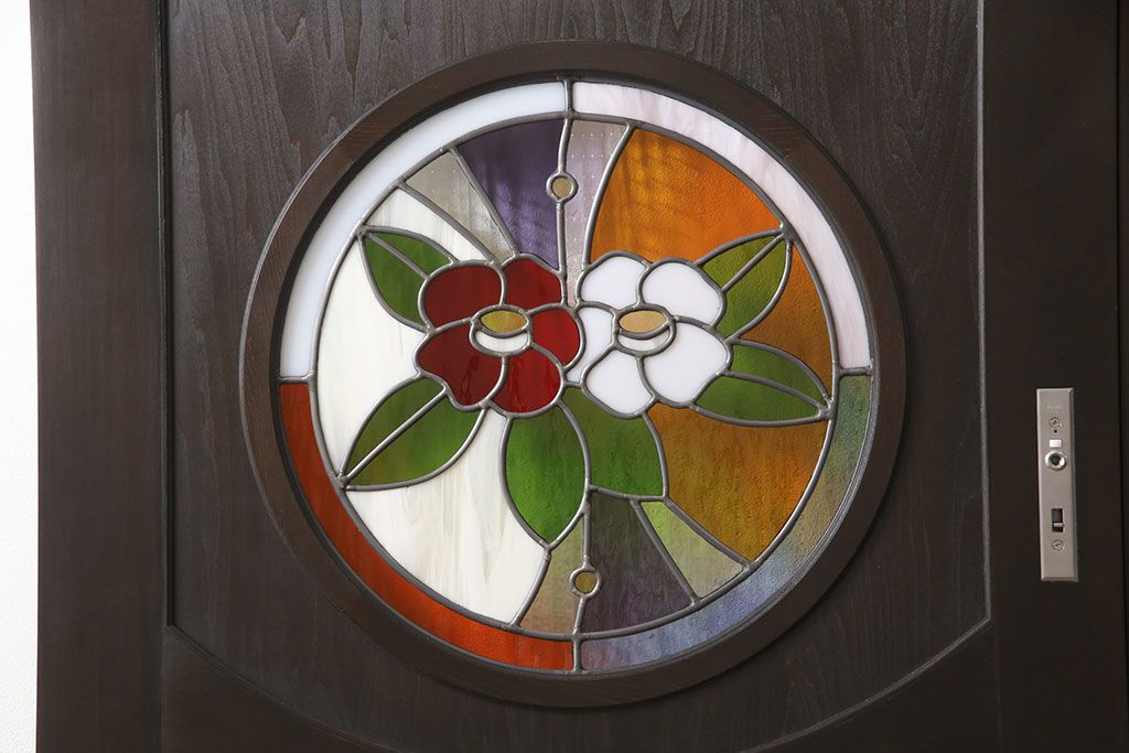 フルオーダー家具実績 > ステンドグラス入り引き戸を新規製作!お客様のデザインを元にステンドグラスを制作。木部はモールディングを施し、クラシカルな仕上がりに。(玄関戸、引き違い戸)