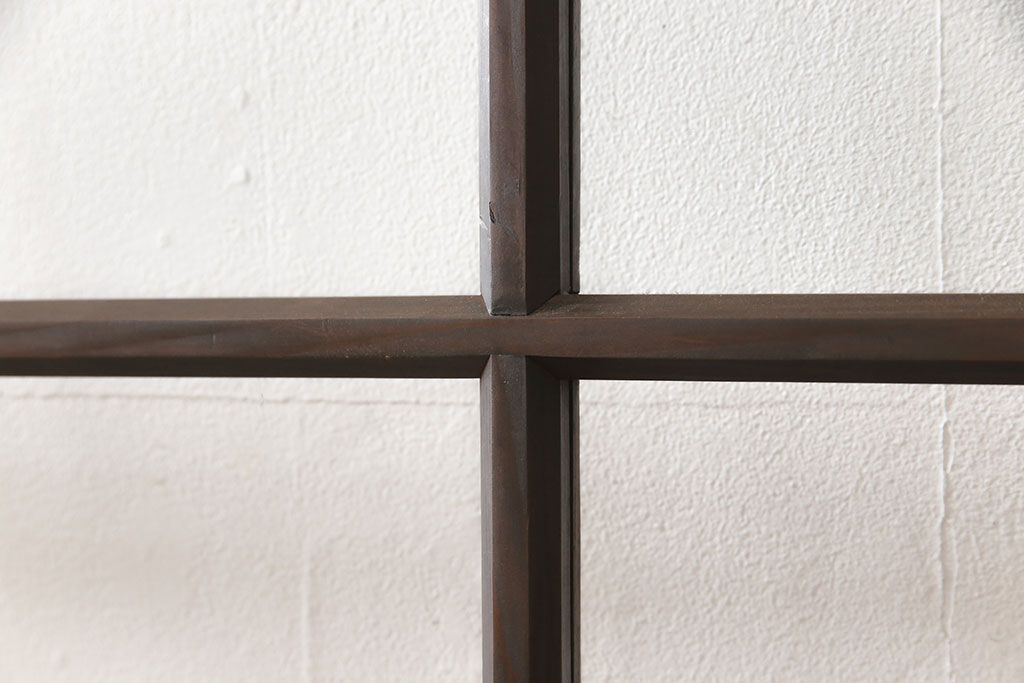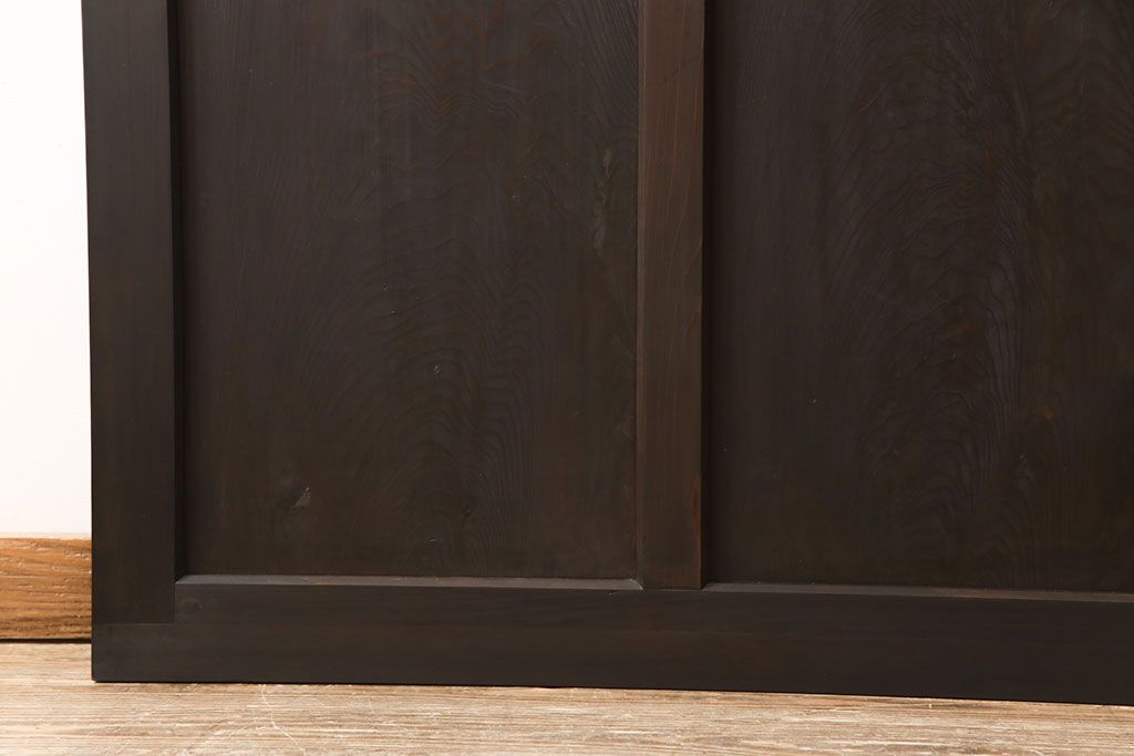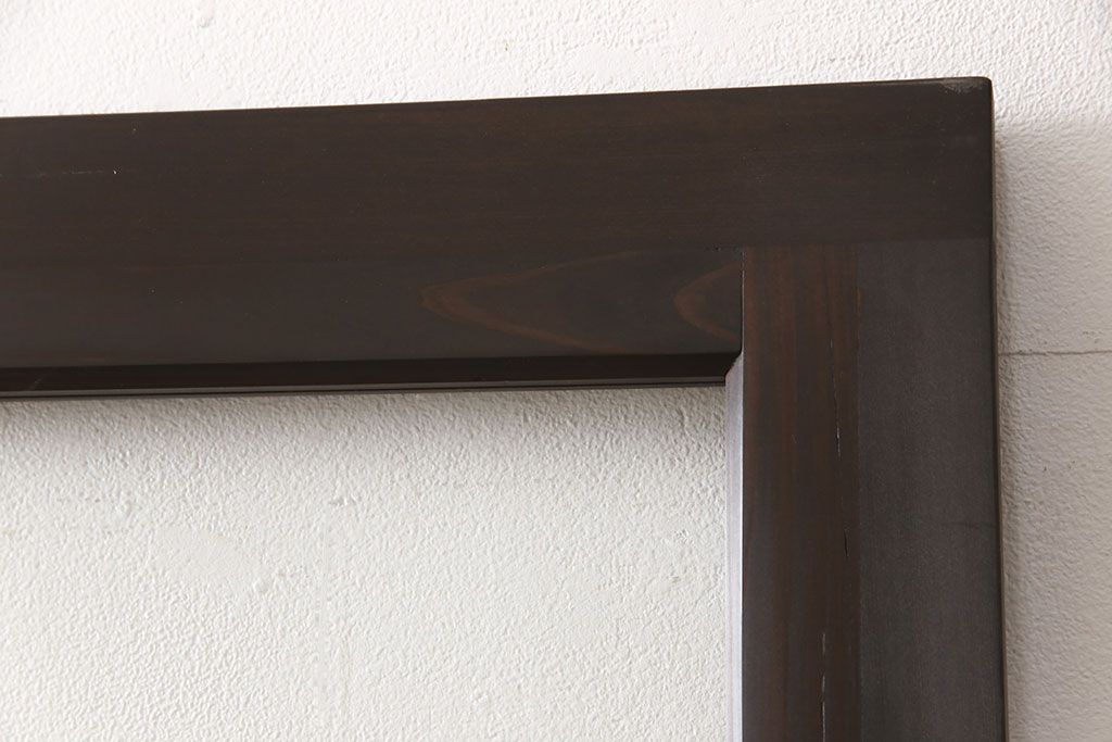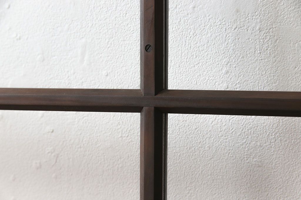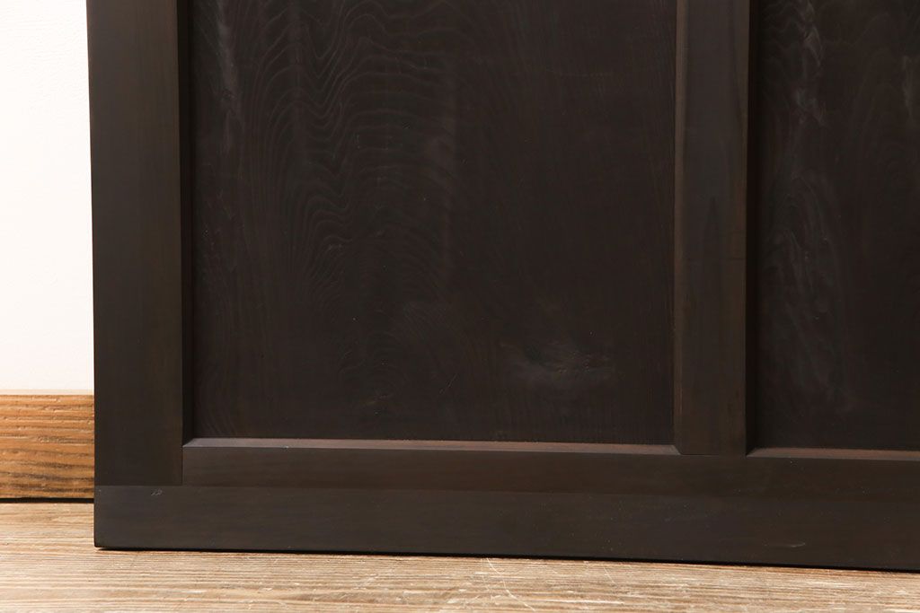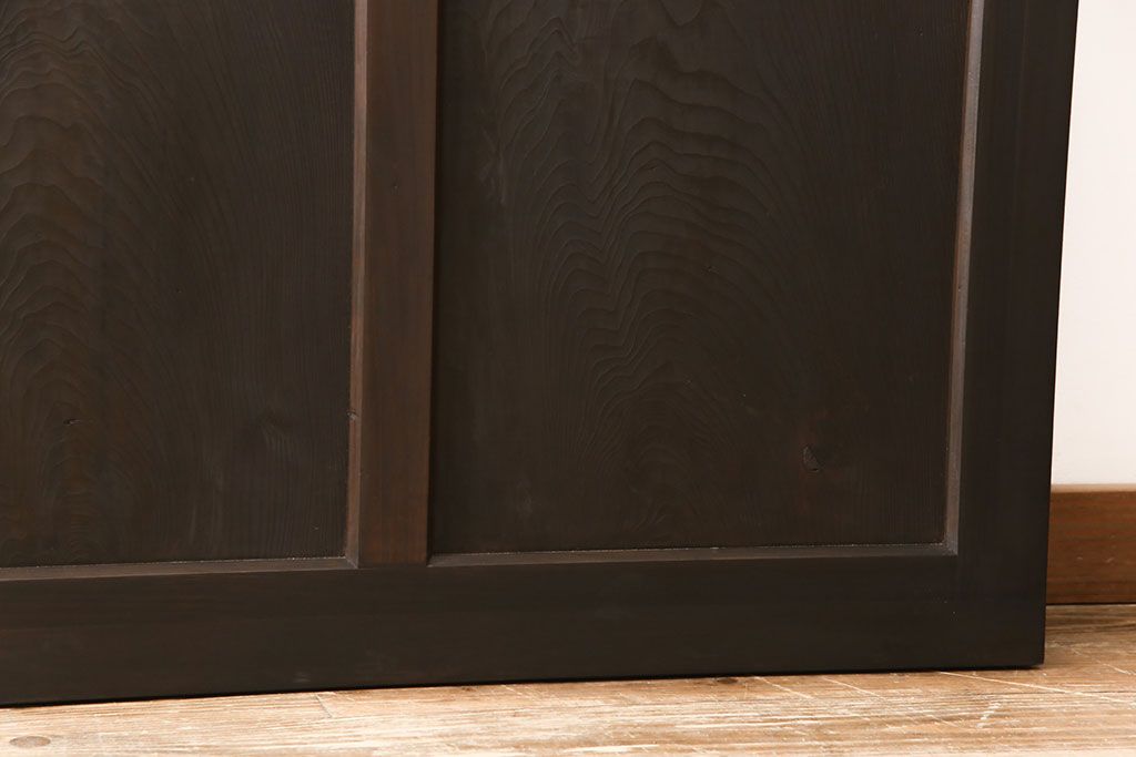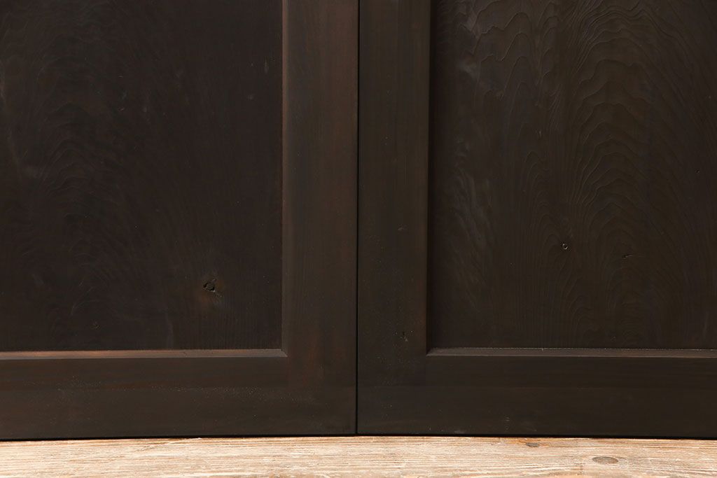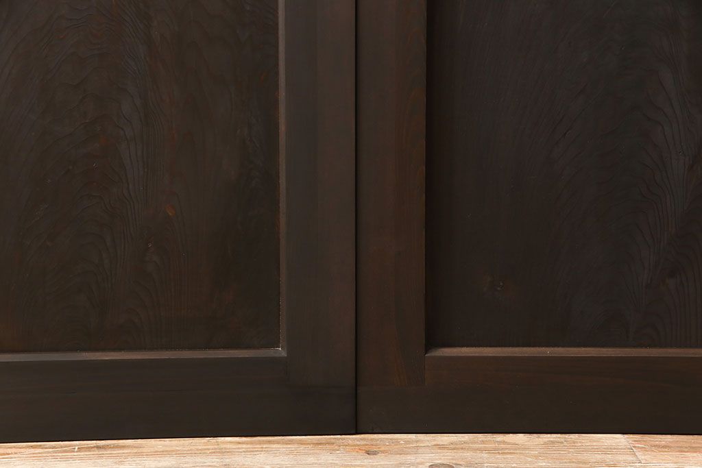 セミオーダー家具実績 > ガラス戸2枚をリペア&カスタム!新材を継ぎ足し高さと幅を大きくリサイズ。引手・戸車を追加し、ガラス部分はゆらゆらガラスを使用。濃い茶色に着色仕上げ。(引き戸)