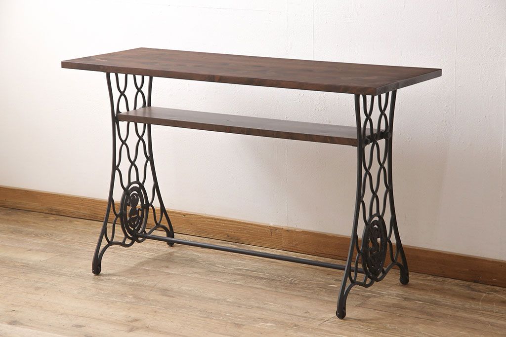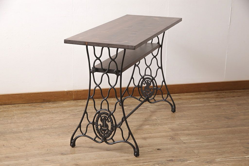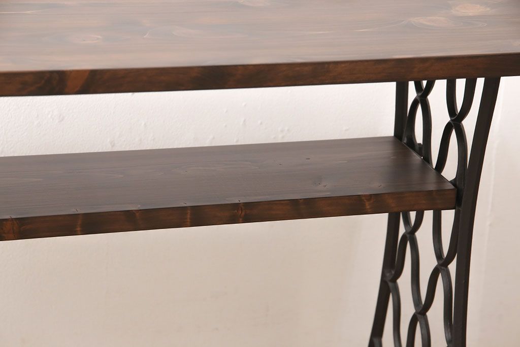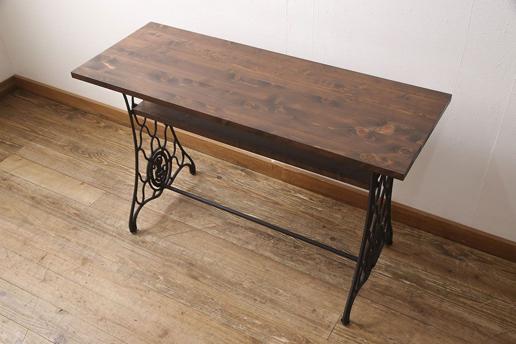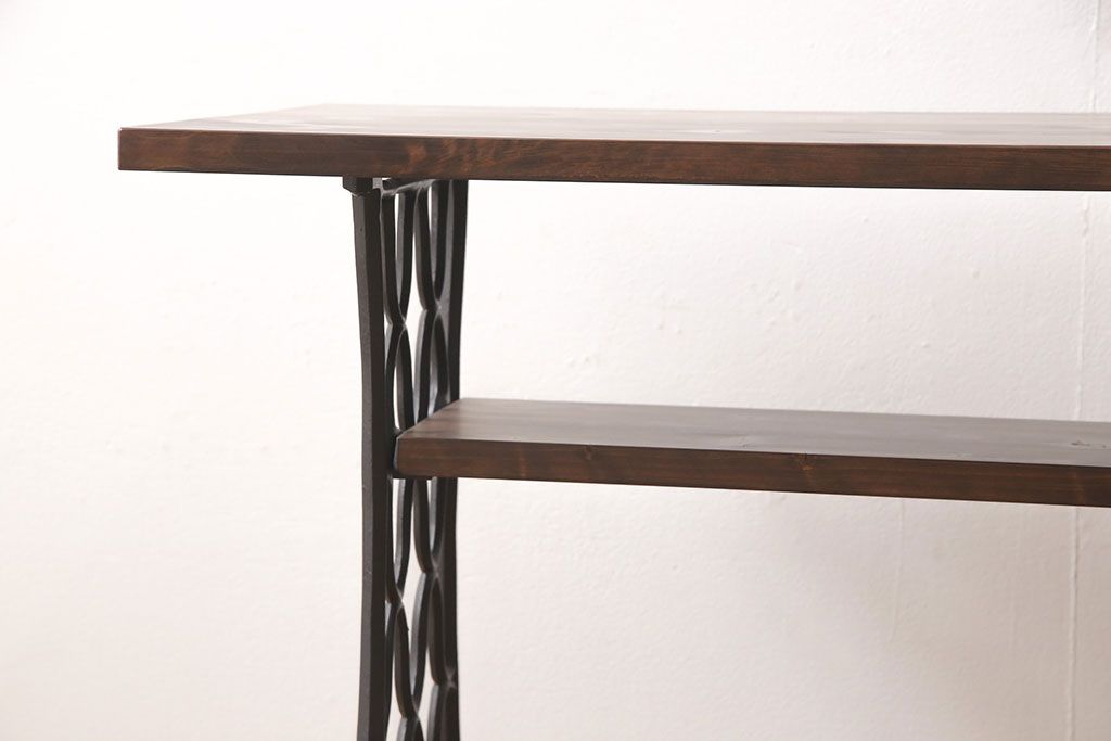 テーブル> コンソールテーブル > イギリスアンティークのミシン台をリペア&カスタム!鉄脚に天板と棚板を取り付けテーブルにリメイク。(ミシンテーブル、作業台)