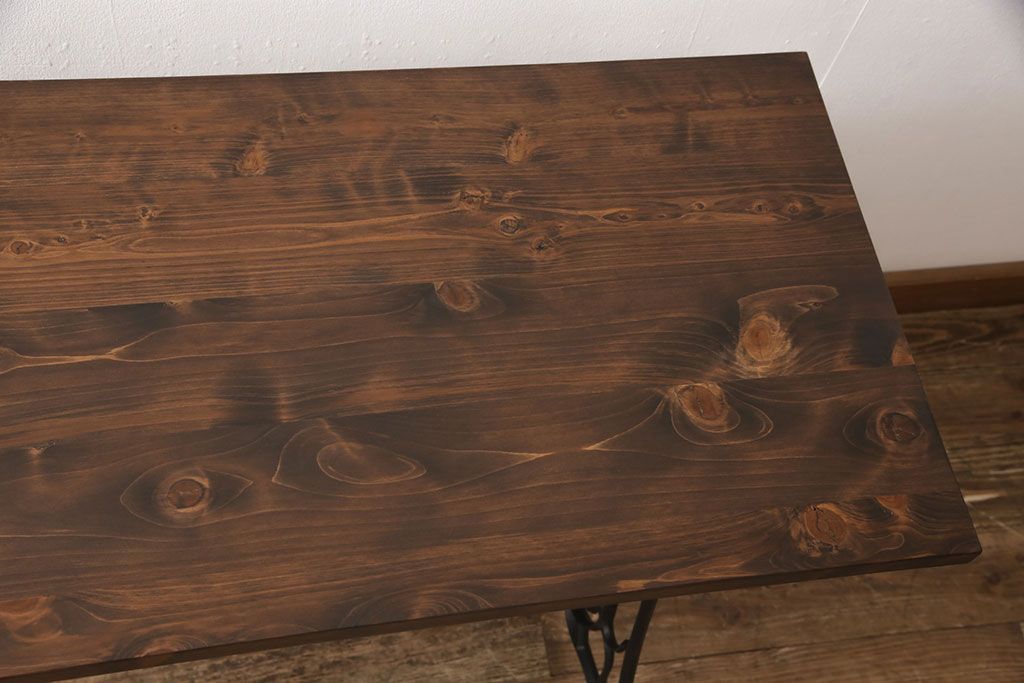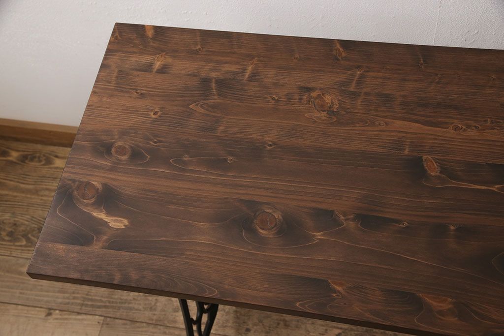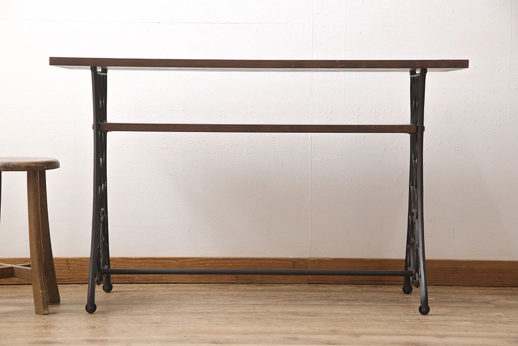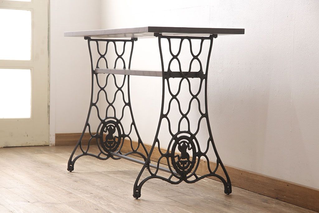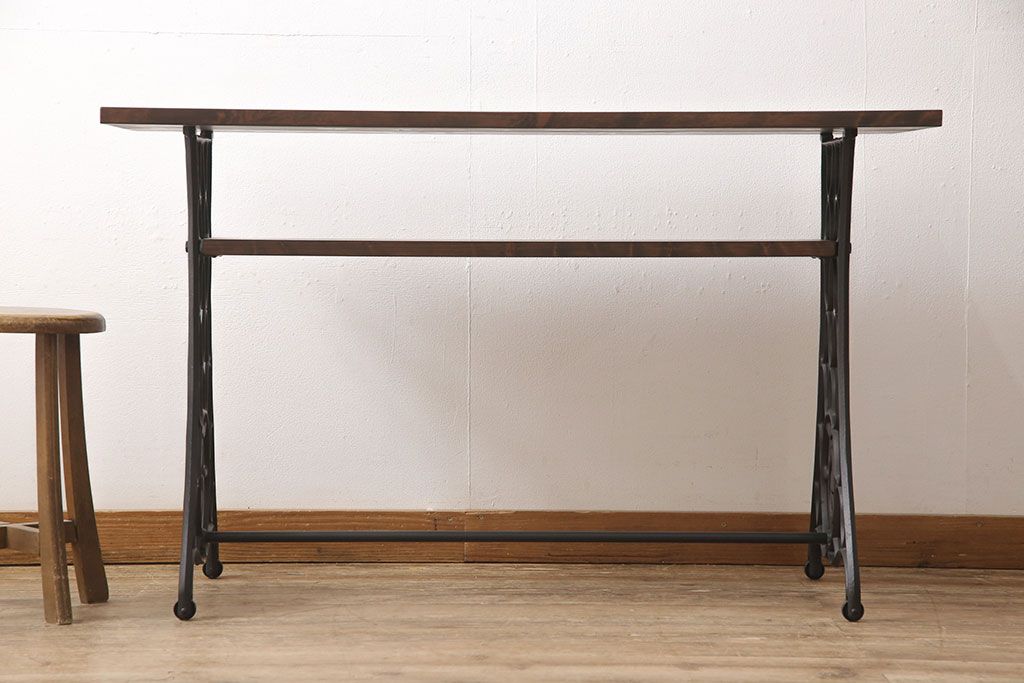 テーブル> コンソールテーブル > イギリスアンティークのミシン台をリペア&カスタム!鉄脚に天板と棚板を取り付けテーブルにリメイク。(ミシンテーブル、作業台)