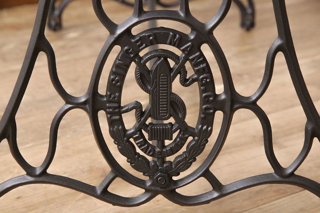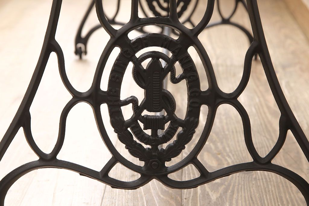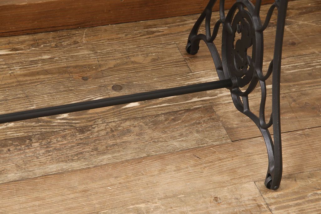 セミオーダー家具実績 > イギリスアンティークのミシン台をリペア&カスタム!鉄脚に天板と棚板を取り付けテーブルにリメイク。(ミシンテーブル、作業台)
