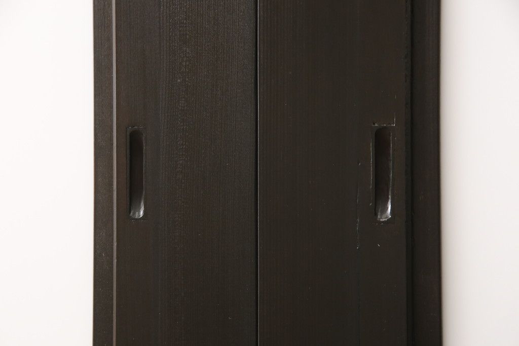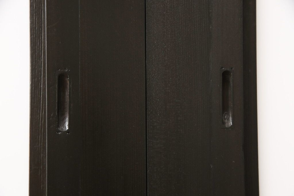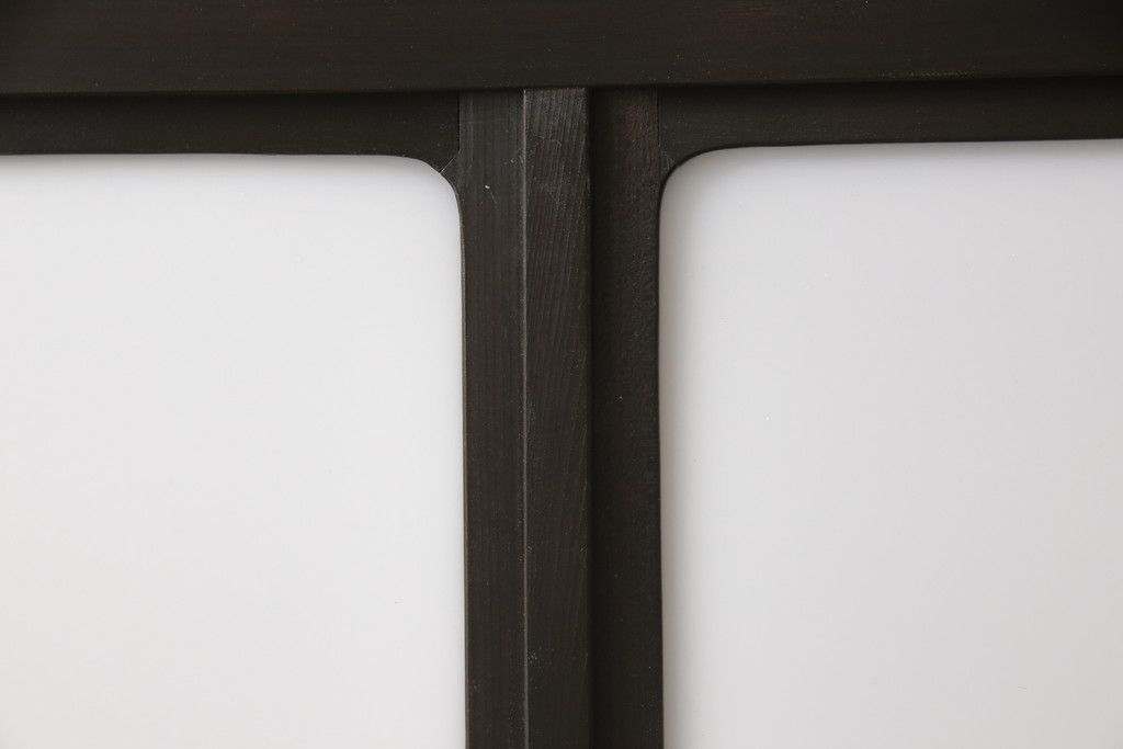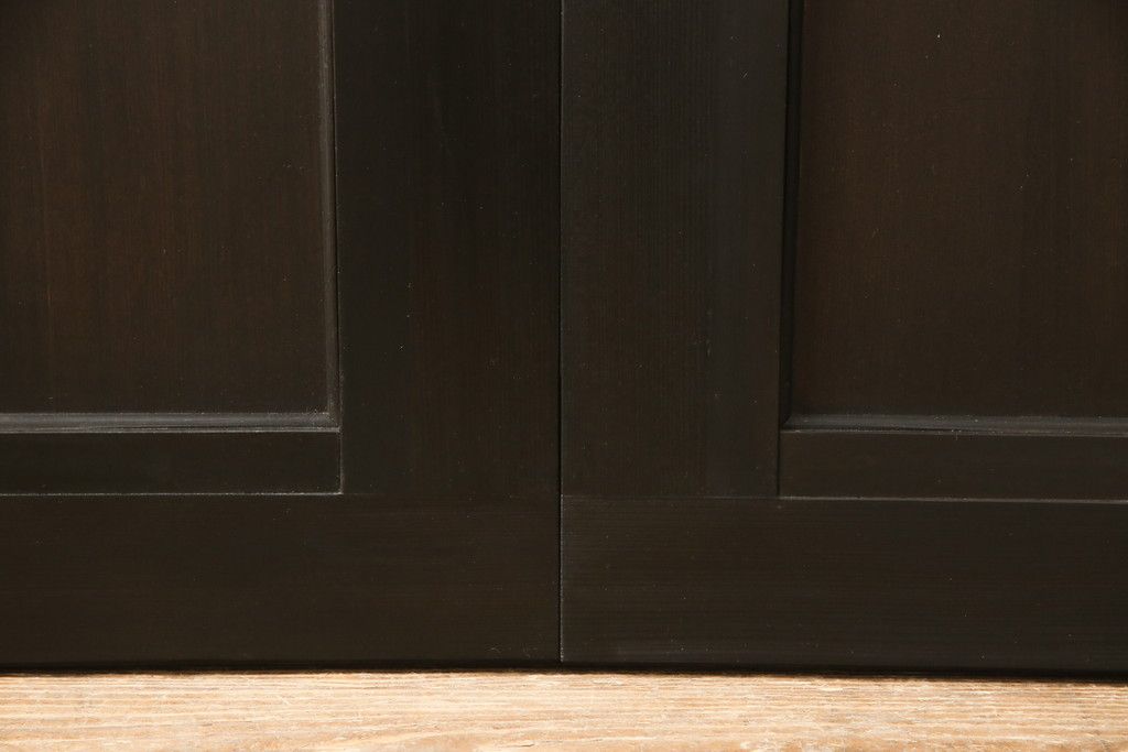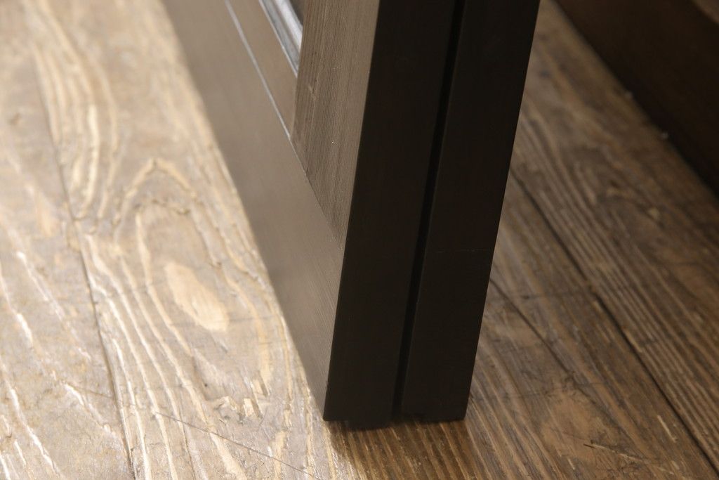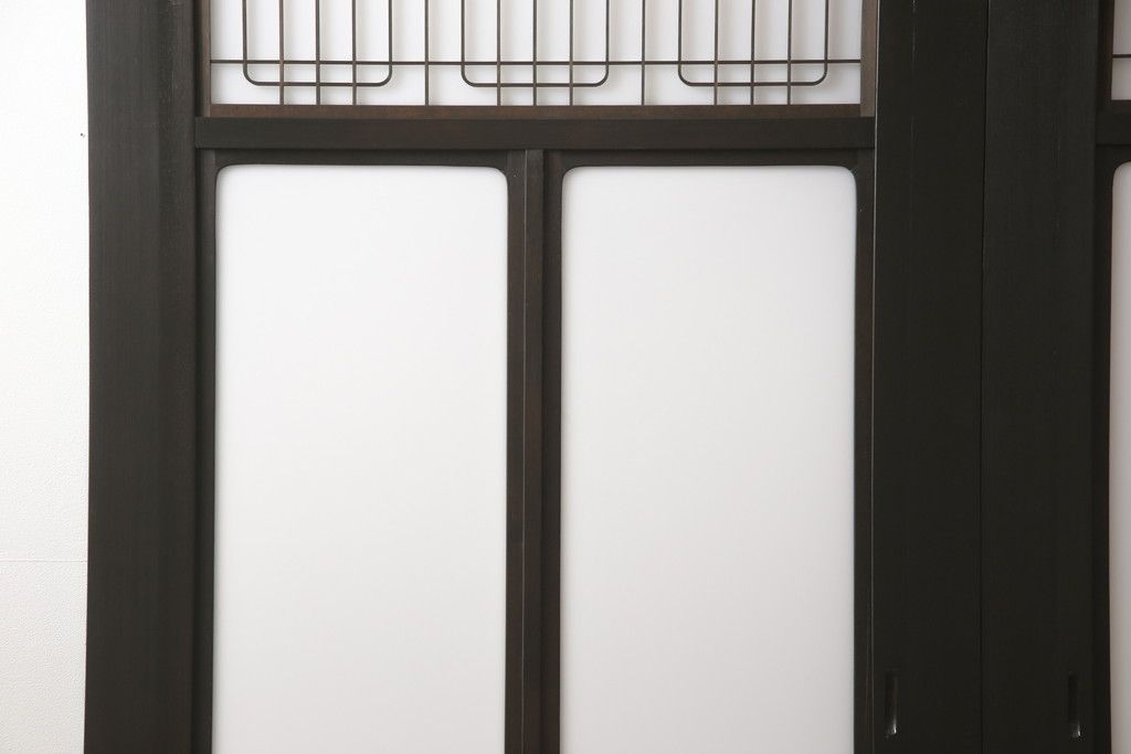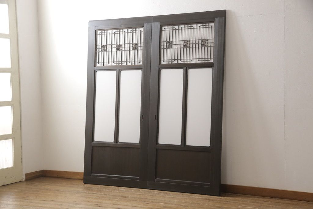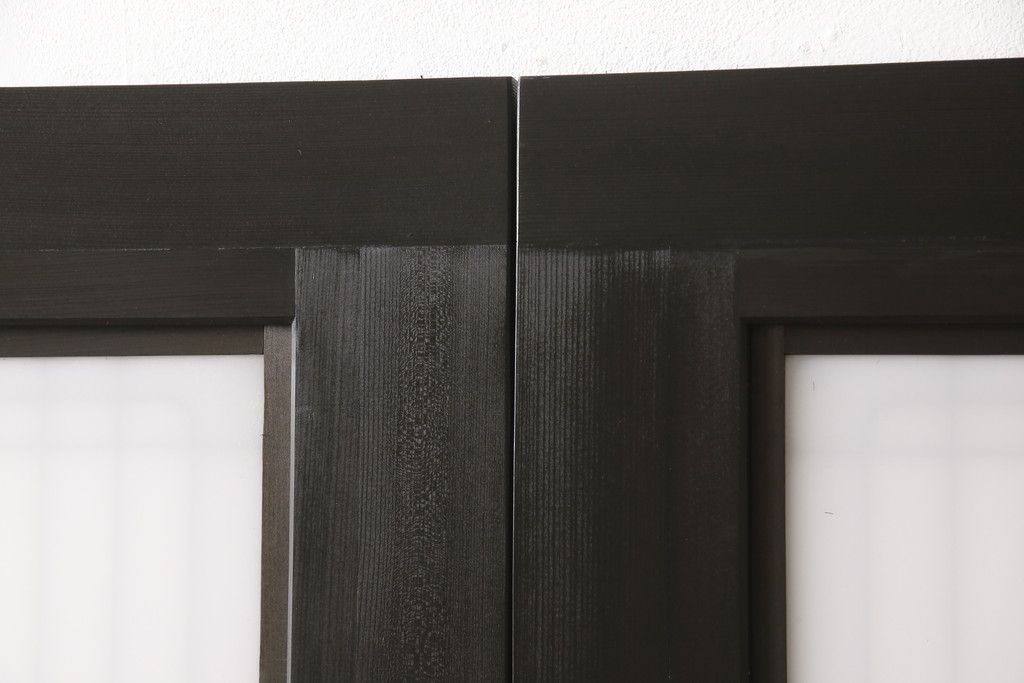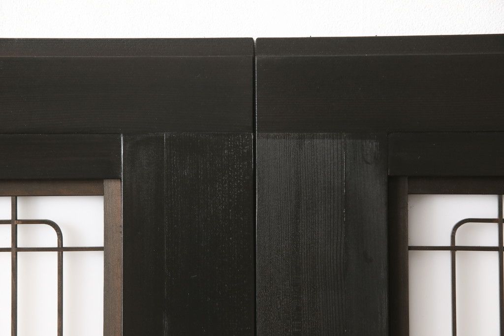 ドア・建具 > ヴィンテージの組子入りガラス戸2枚をリペア&カスタム!高さと幅をリサイズし、ガラスをアクリル板に変更。濃い茶色で着色仕上げ。(引き戸、建具、ビンテージ)