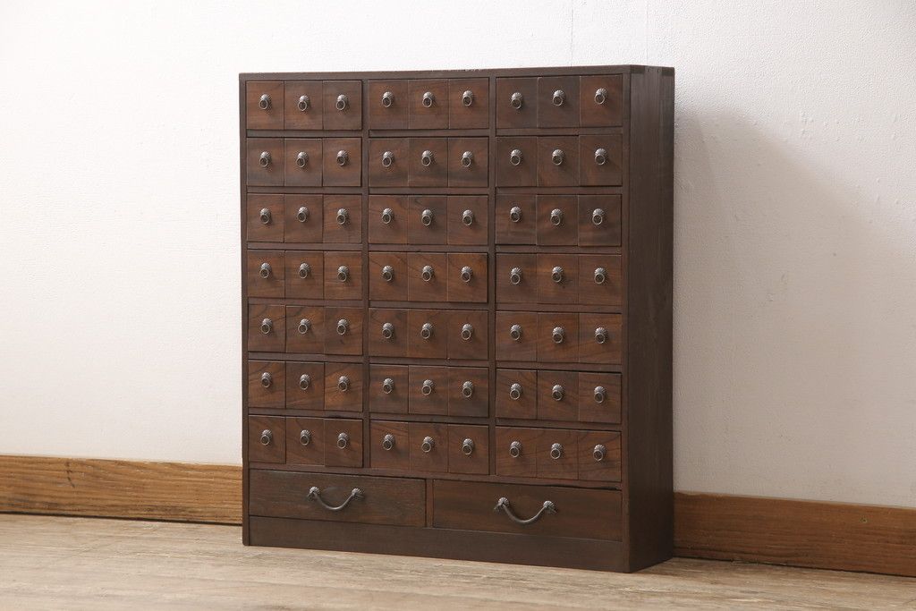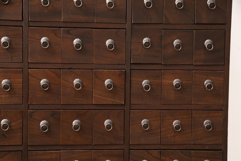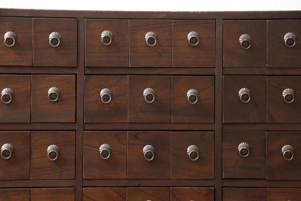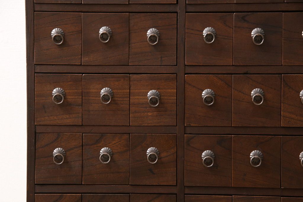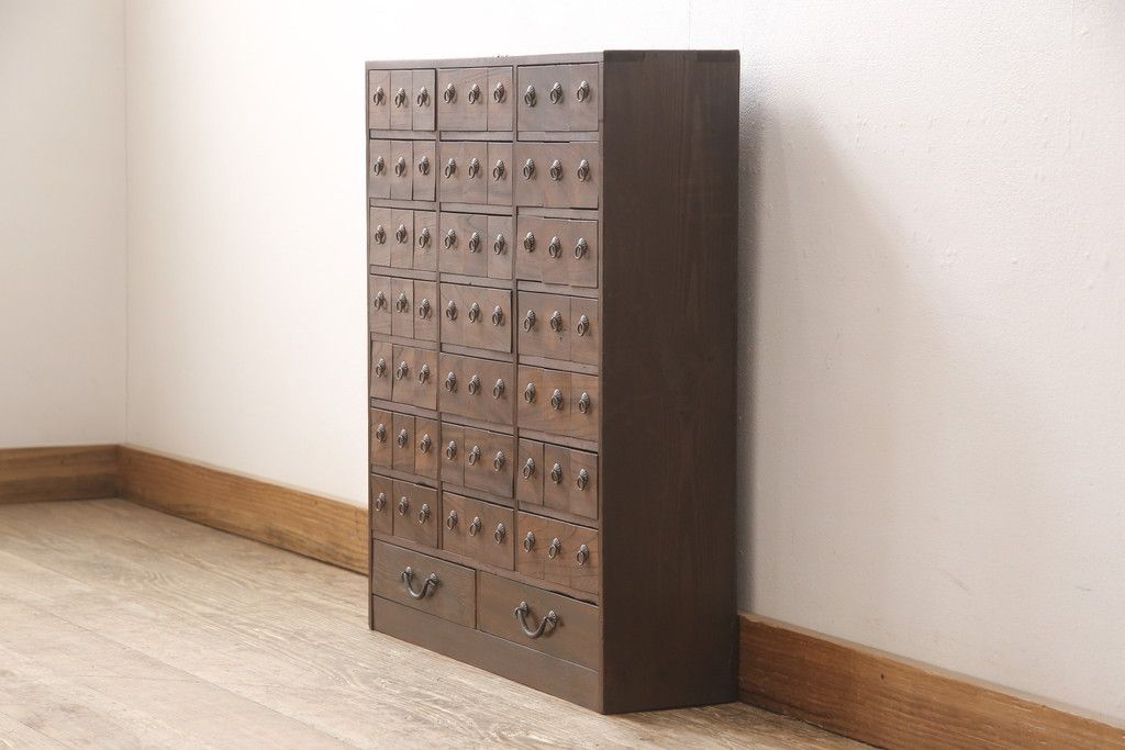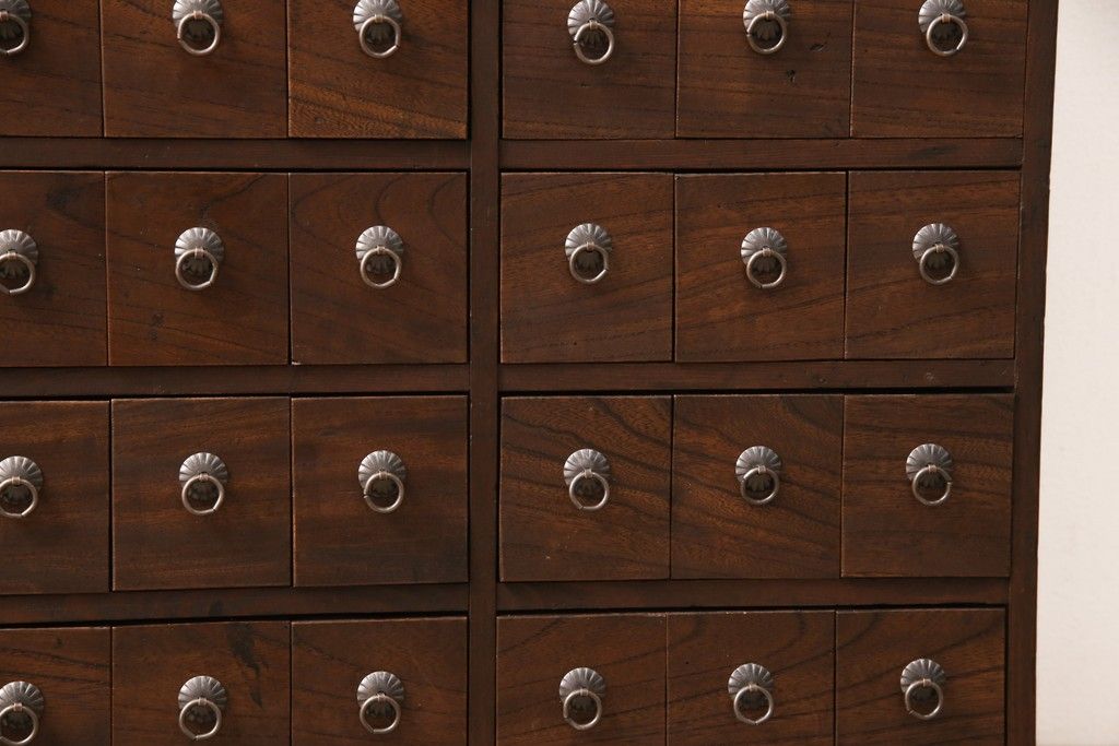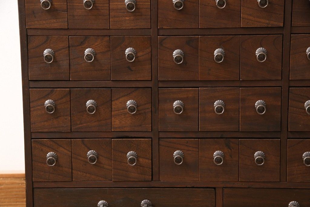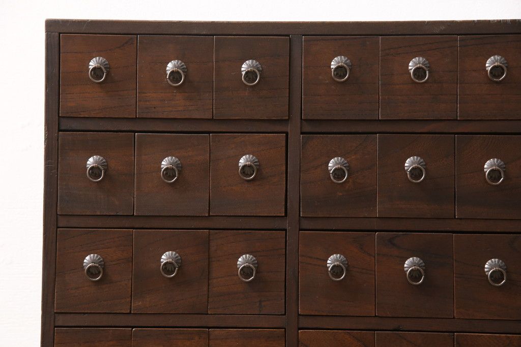 和箪笥 > 対象昭和初期の薬箪笥をリペア&カスタム!引き出しの取っ手金具を交換。本体を深みのある茶色に着色し仕上げ。(薬タンス、チェスト、小物収納、引き出し(大2杯・小63杯))