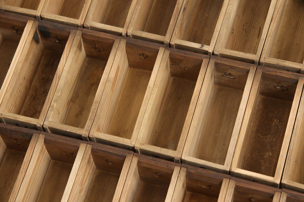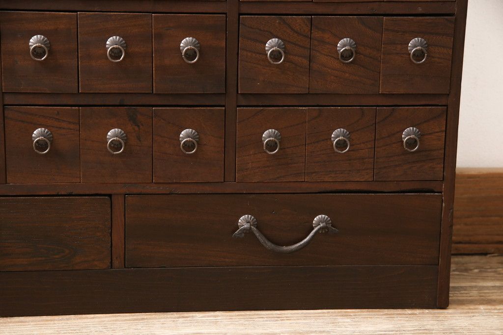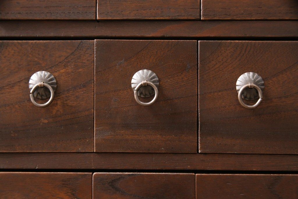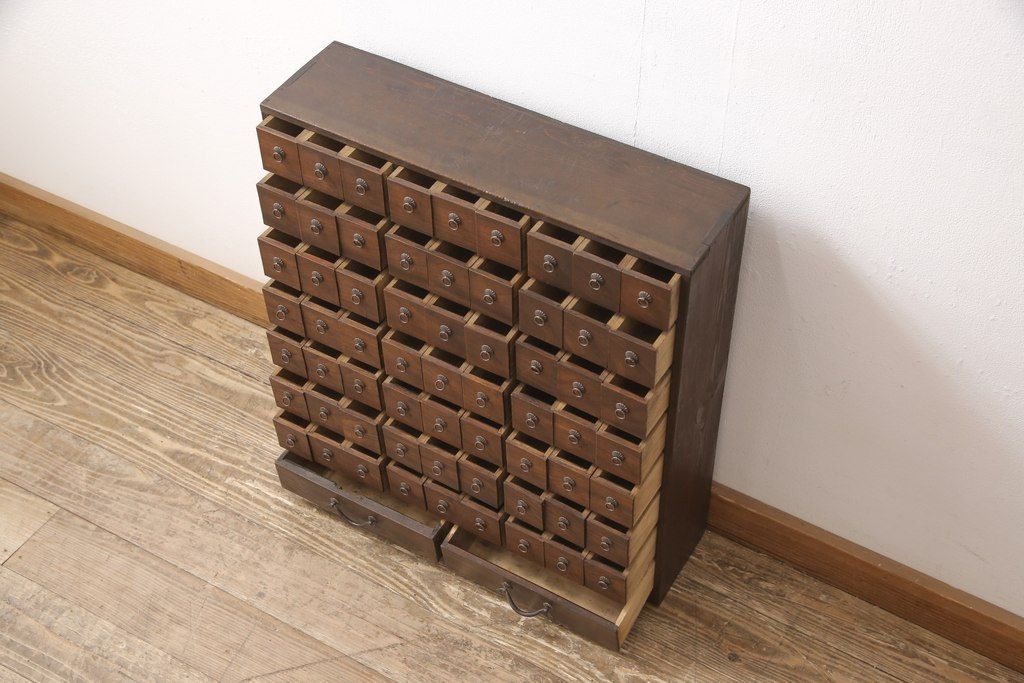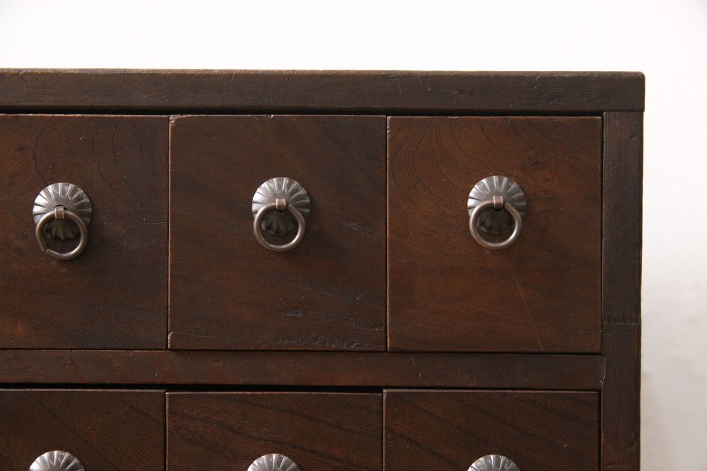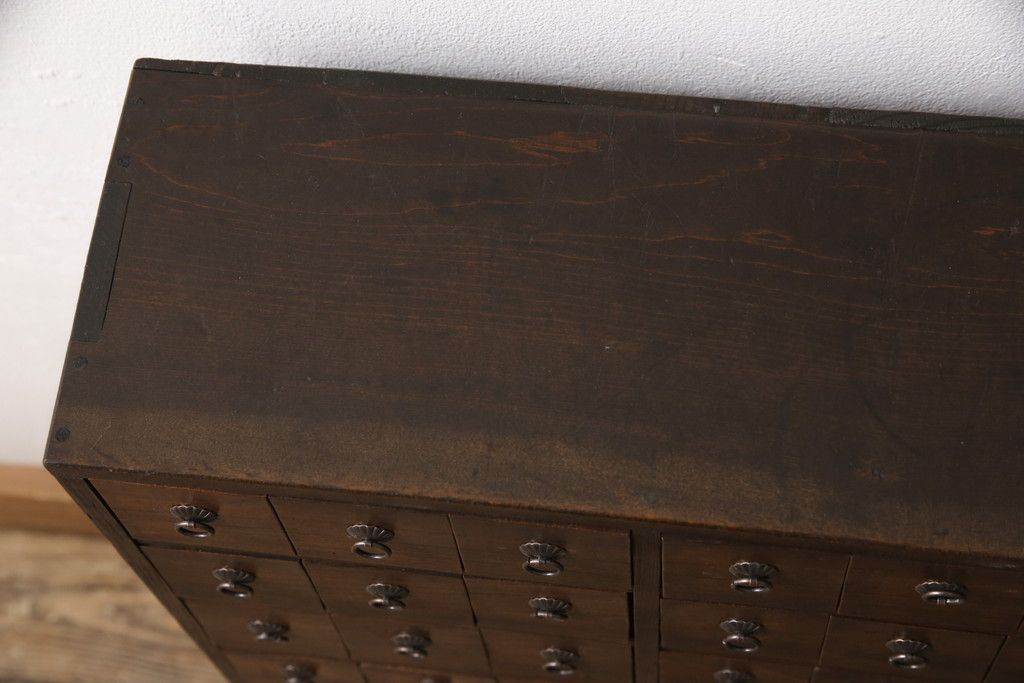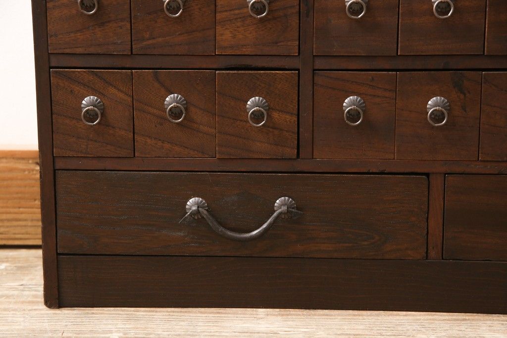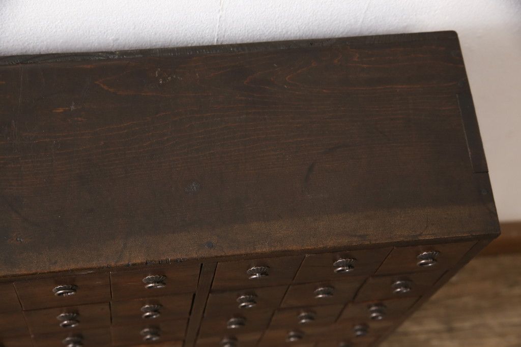 和箪笥 > 対象昭和初期の薬箪笥をリペア&カスタム!引き出しの取っ手金具を交換。本体を深みのある茶色に着色し仕上げ。(薬タンス、チェスト、小物収納、引き出し(大2杯・小63杯))