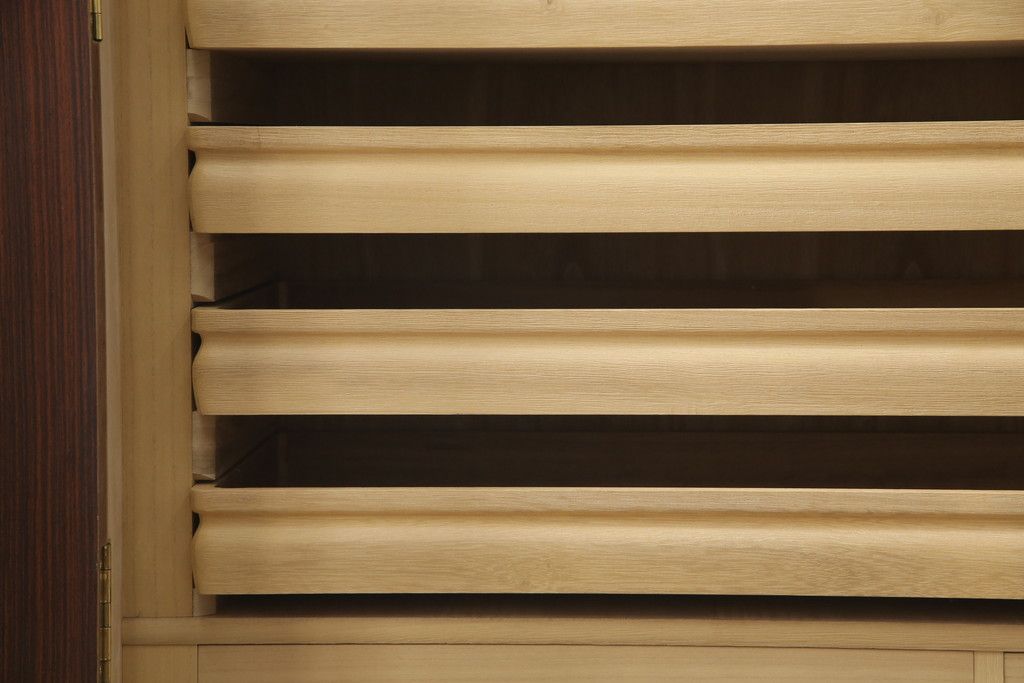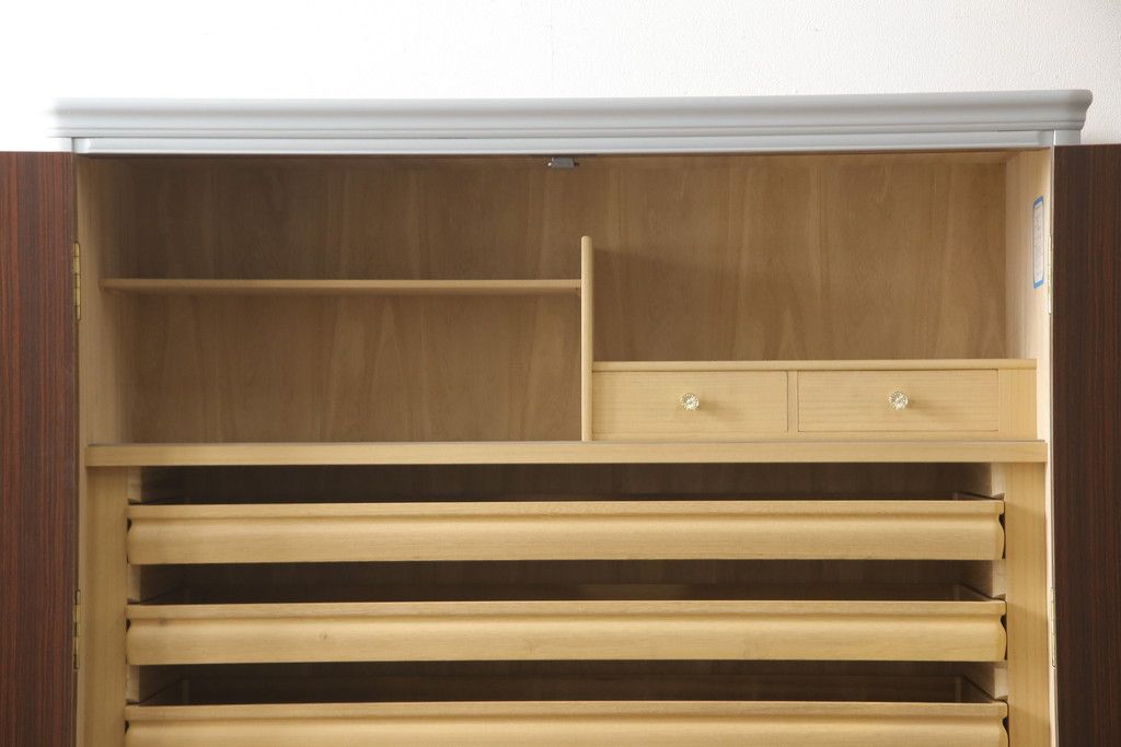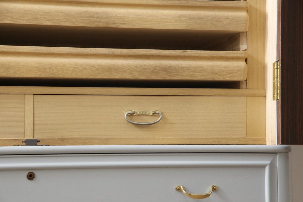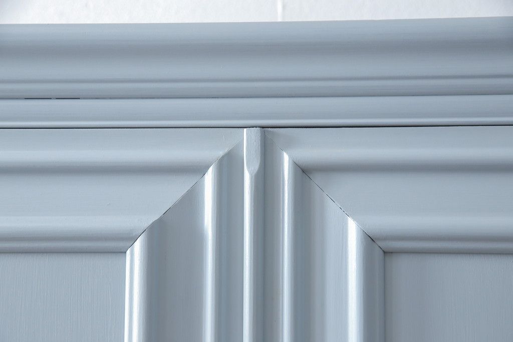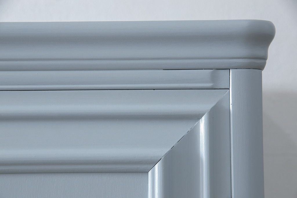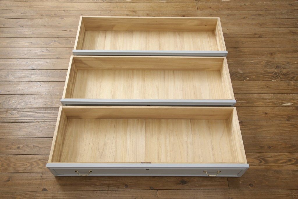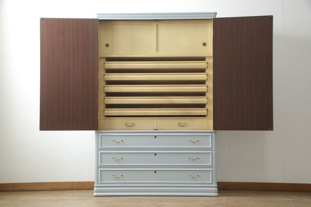 洋服箪笥をペイントリメイク!高品質リペアを施し、扉と引き出しの取っ手を交換。外側のみブルーグレーにペイント仕上げ。