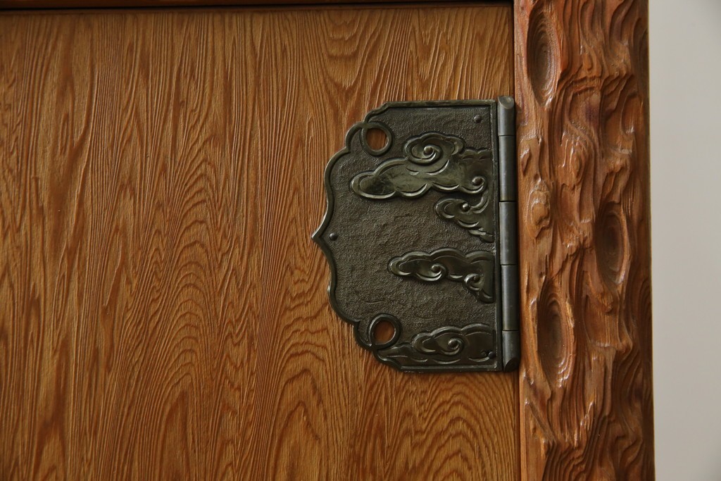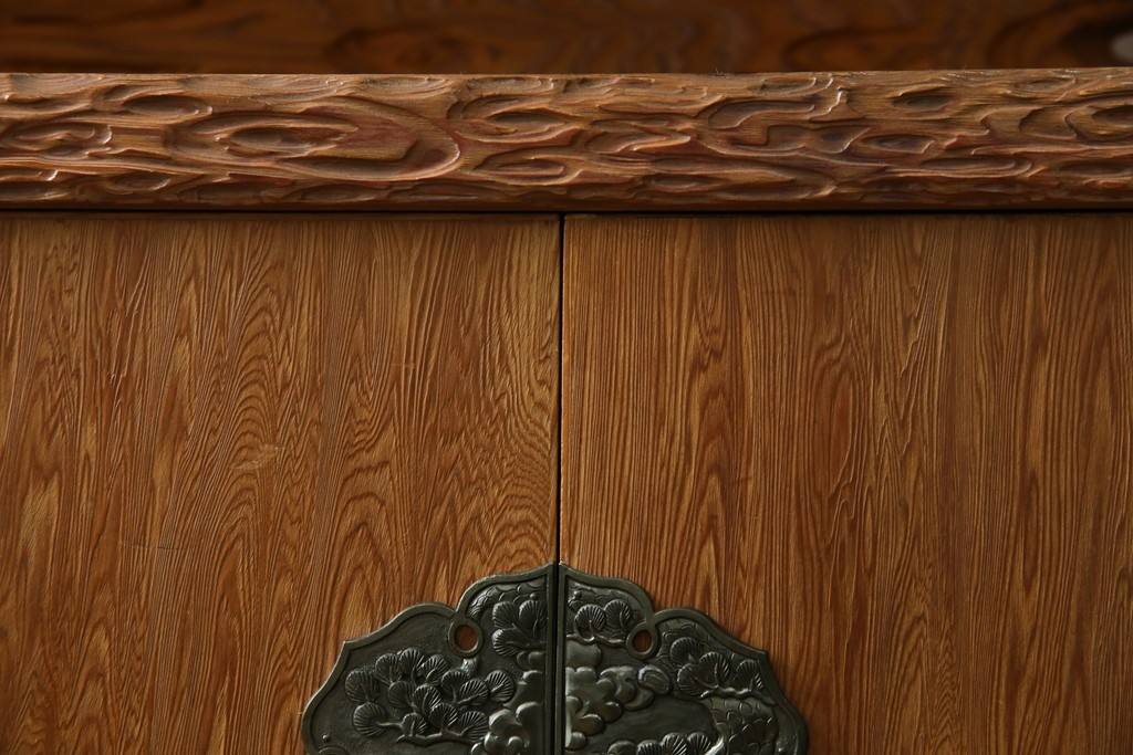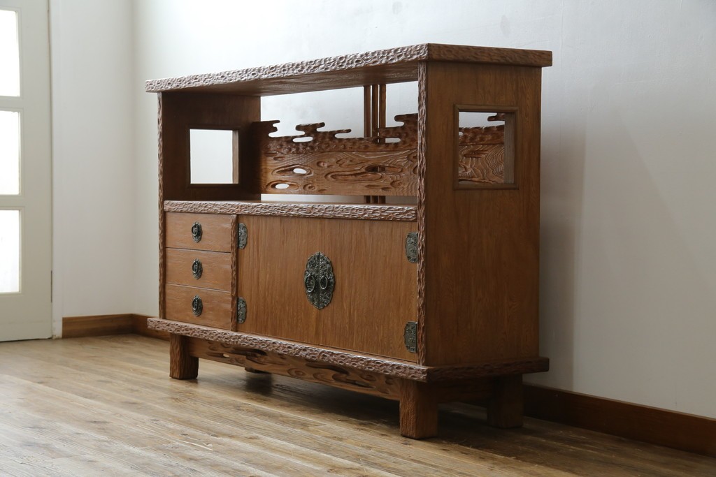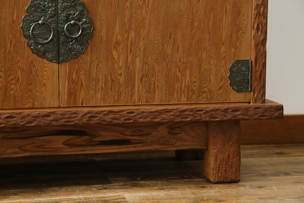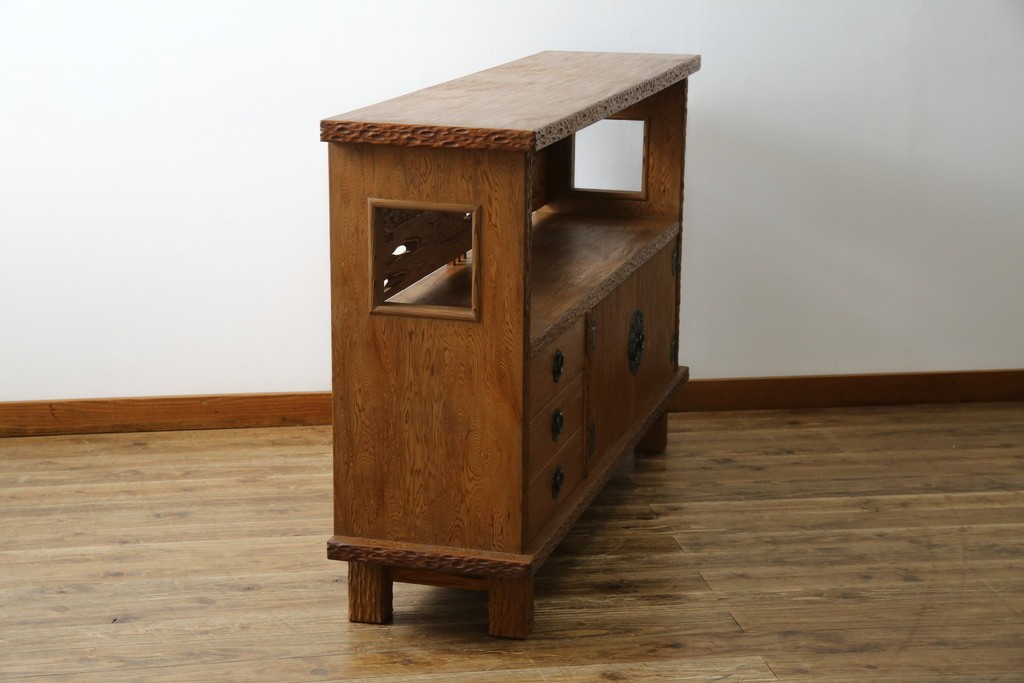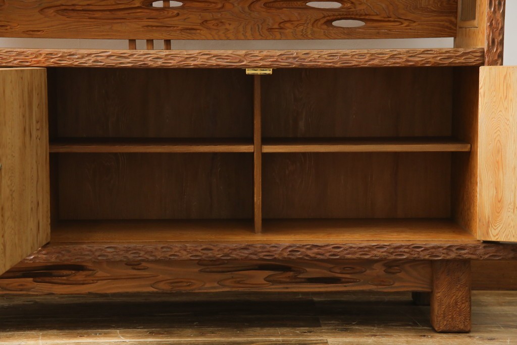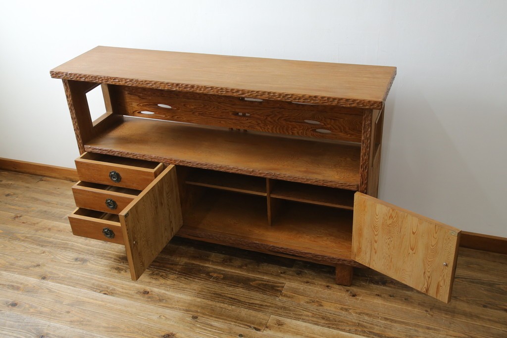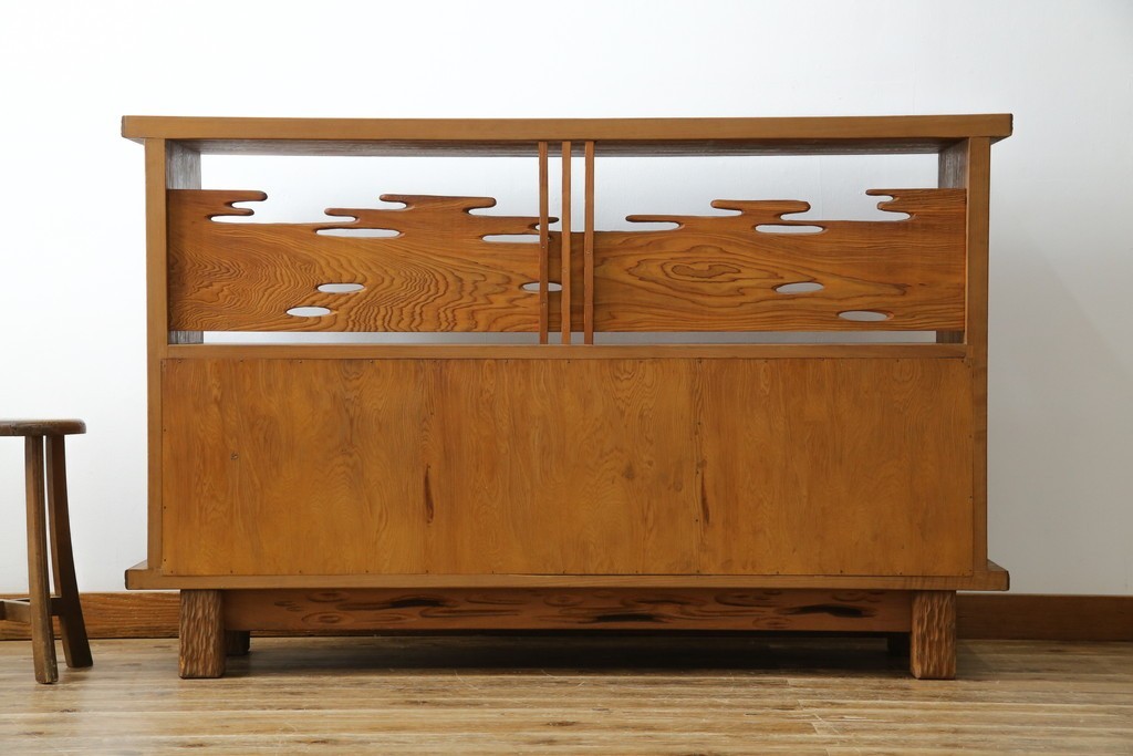 民芸家具 > 中古 屋久杉 突き板 木の風合いが趣あふれるサイドボード(茶棚) (R-058012)