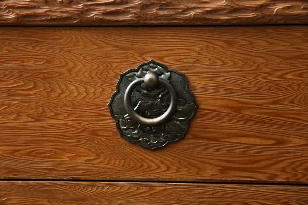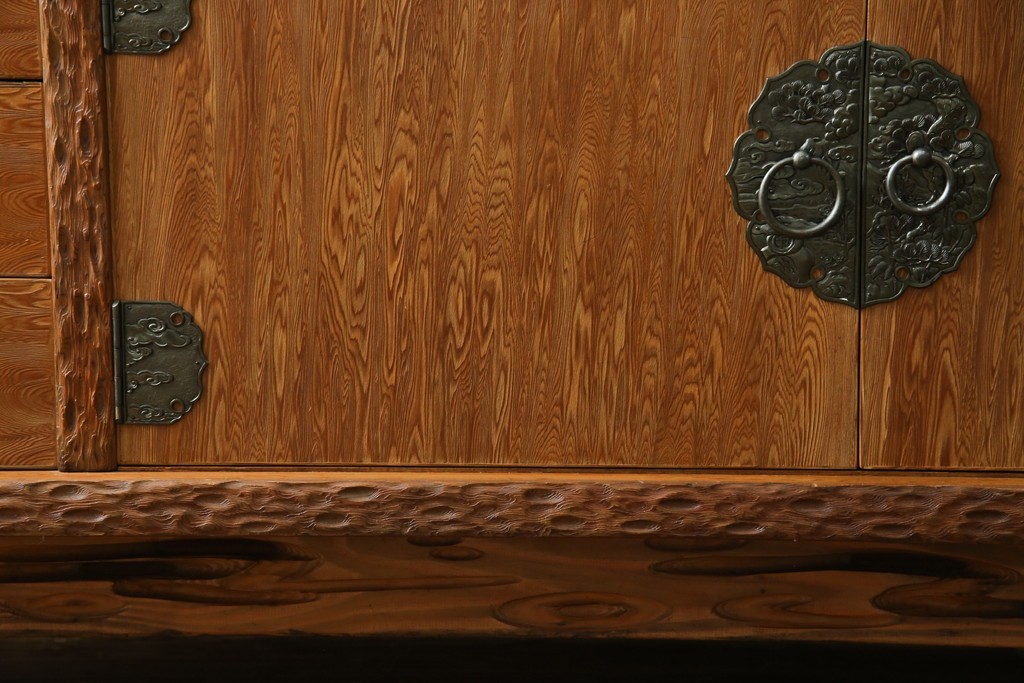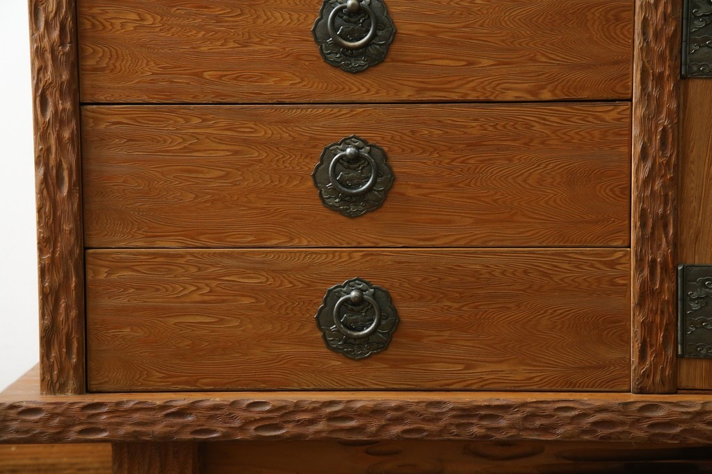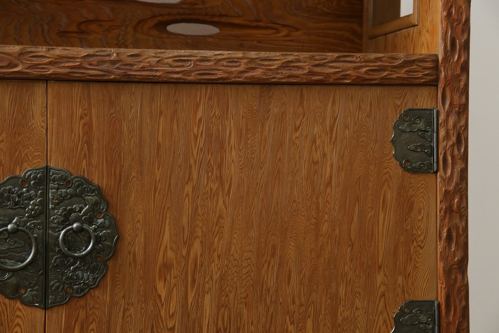和箪笥> 茶箪笥・茶棚 > 中古 屋久杉 突き板 木の風合いが趣あふれるサイドボード(茶棚) (R-058012)