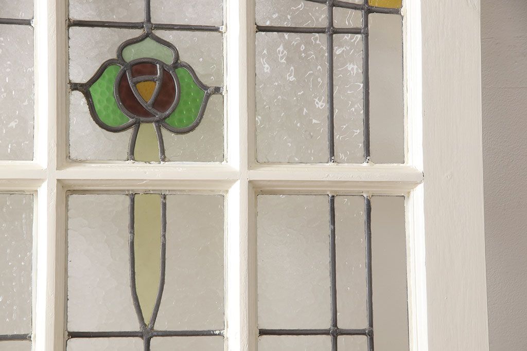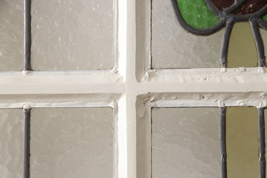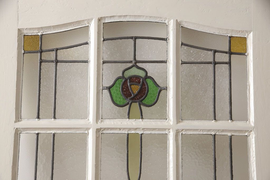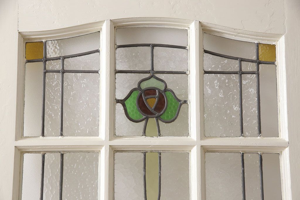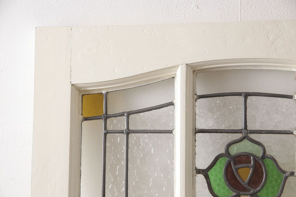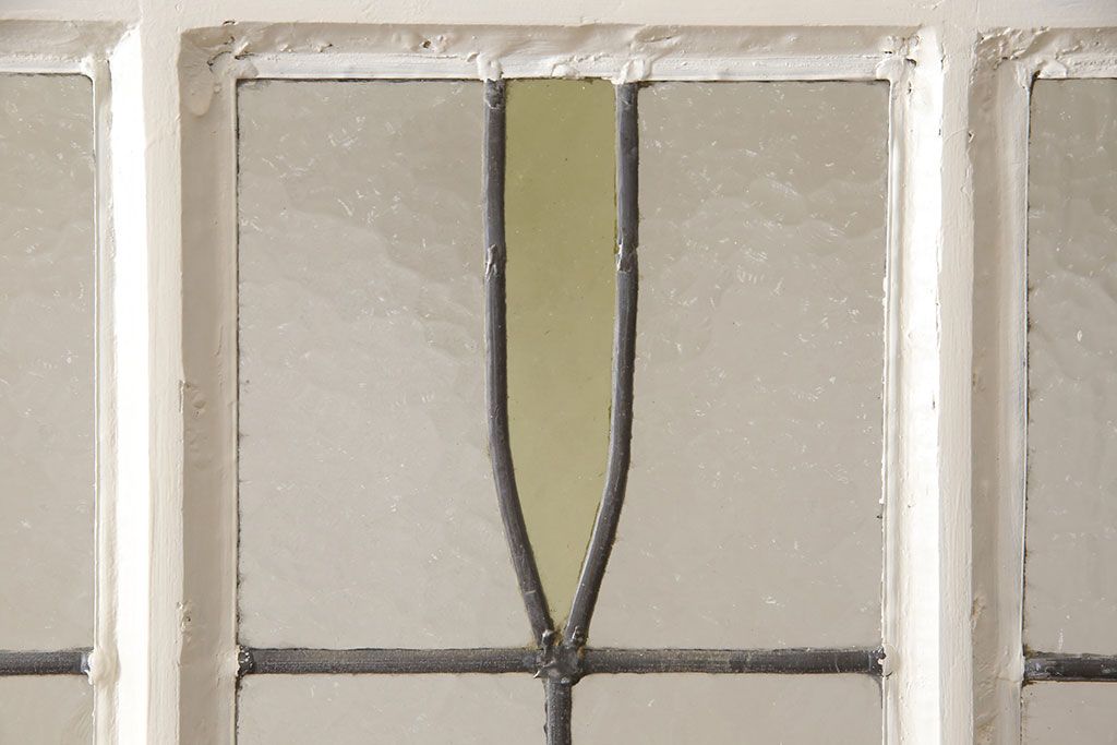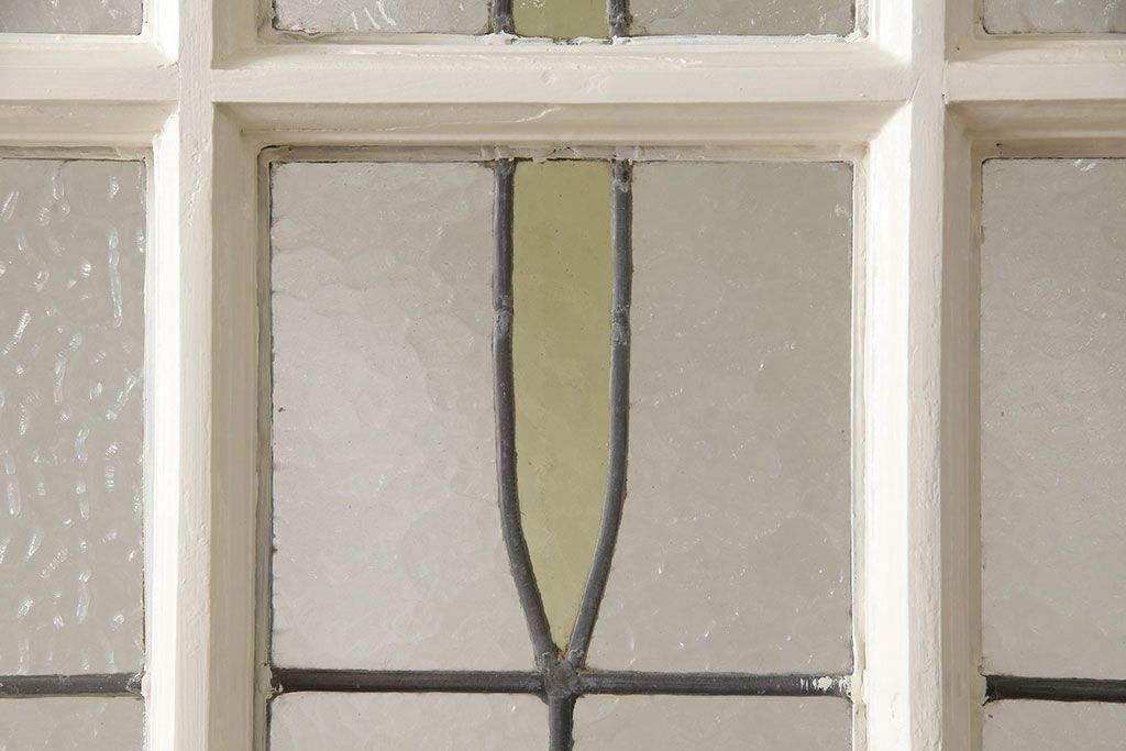 セミオーダー家具実績 > イギリスアンティークの木製ドアをリペア&カスタム!高さと幅をリサイズし、鍵の取り付け跡を埋木処理。お客様ご用意の塗料でペイント仕上げ。(扉、ステンドグラス、建具)