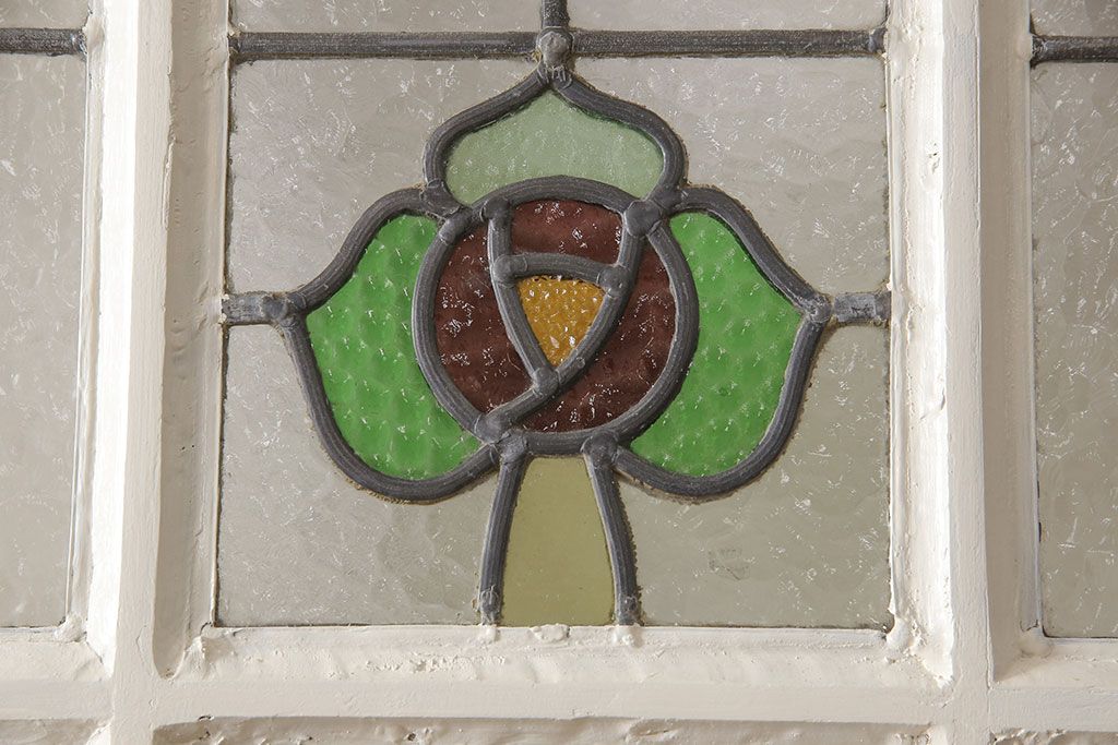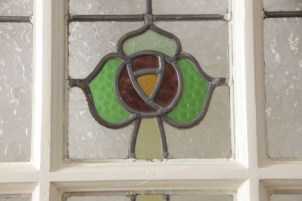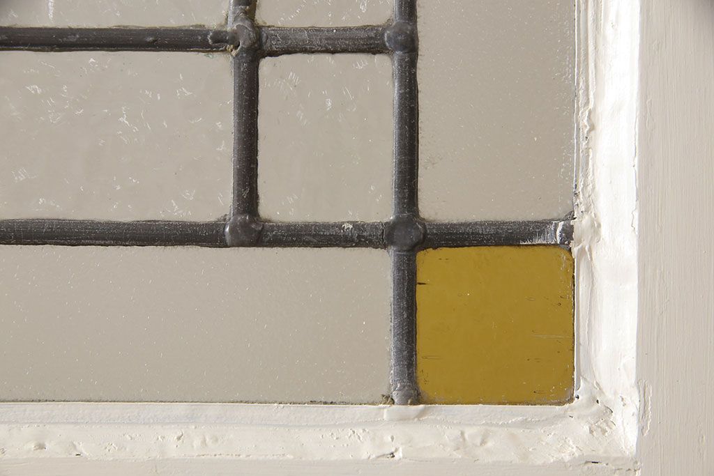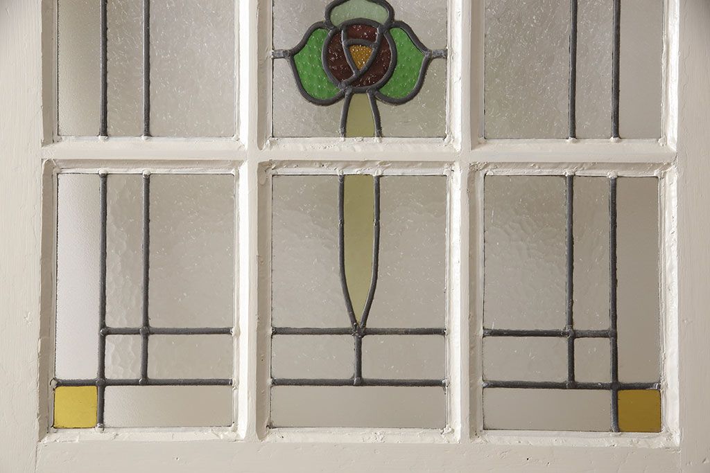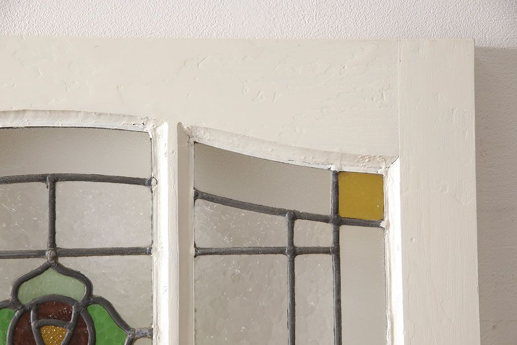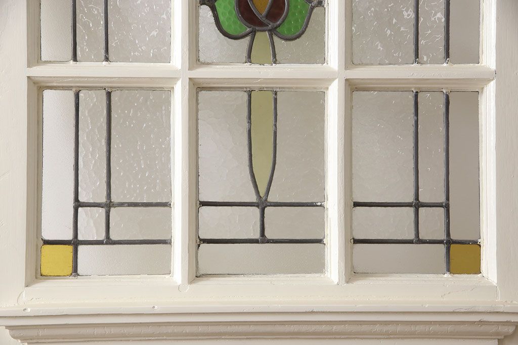 セミオーダー家具実績 > イギリスアンティークの木製ドアをリペア&カスタム!高さと幅をリサイズし、鍵の取り付け跡を埋木処理。お客様ご用意の塗料でペイント仕上げ。(扉、ステンドグラス、建具)