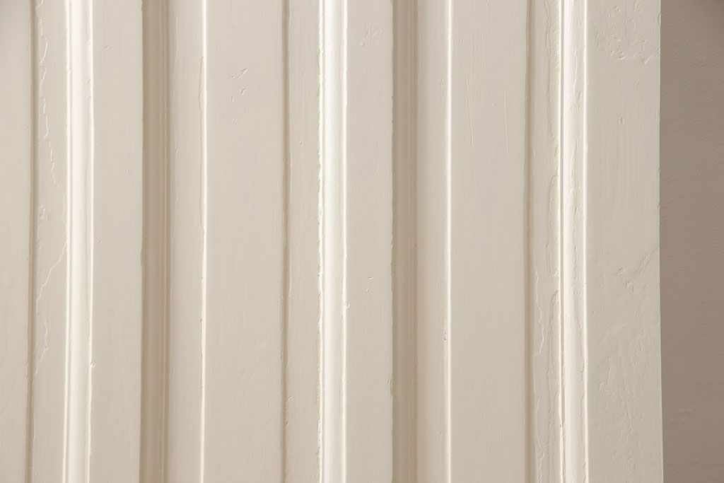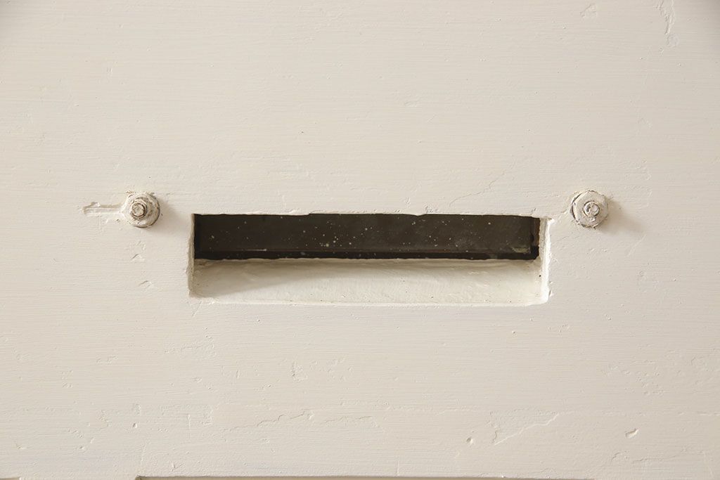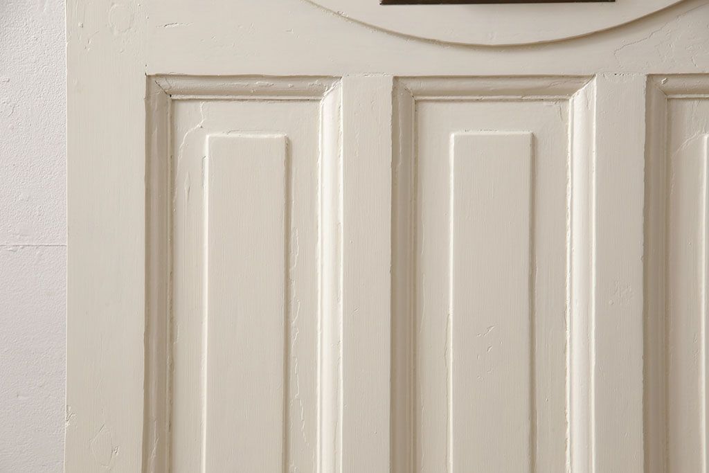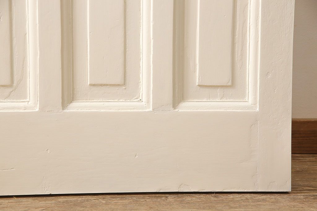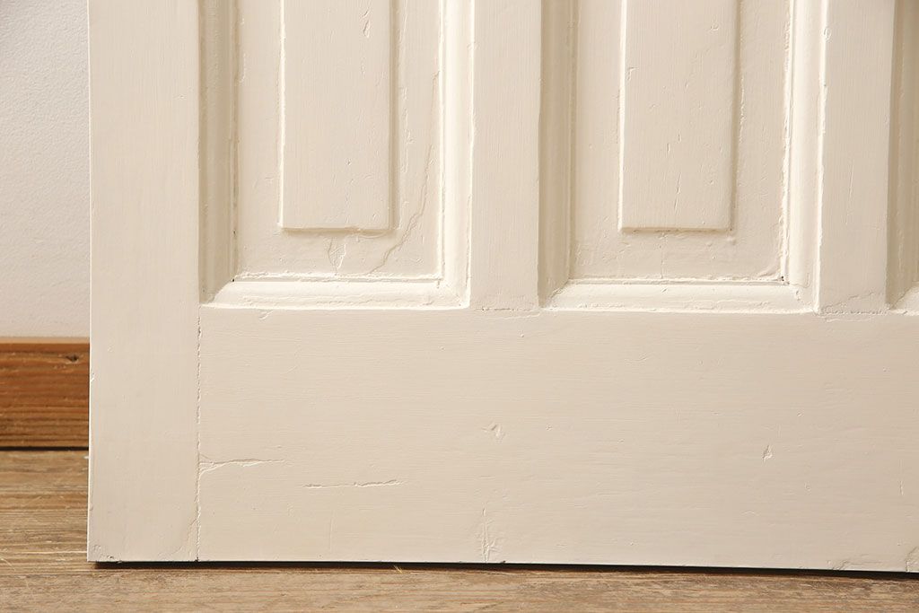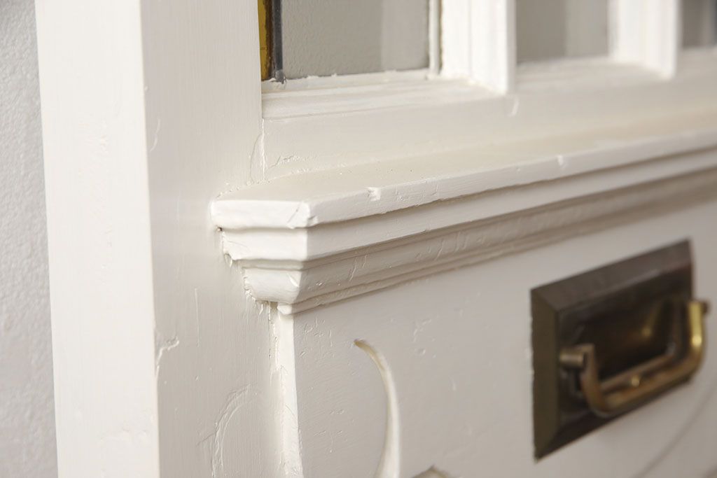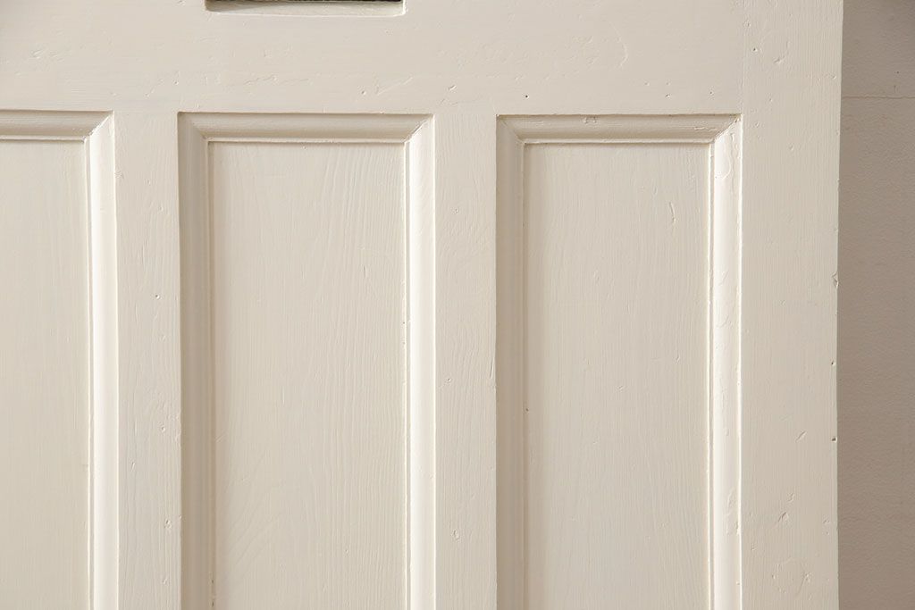 ドア・建具> ドア・扉 > イギリスアンティークの木製ドアをリペア&カスタム!高さと幅をリサイズし、鍵の取り付け跡を埋木処理。お客様ご用意の塗料でペイント仕上げ。(扉、ステンドグラス、建具)