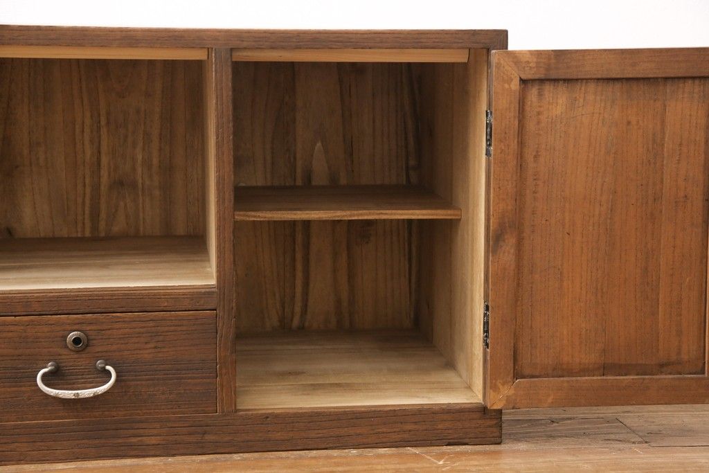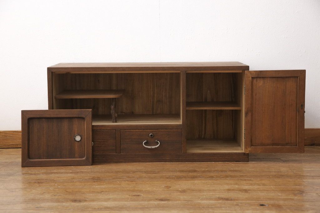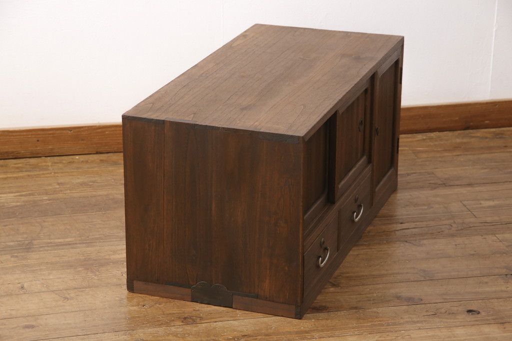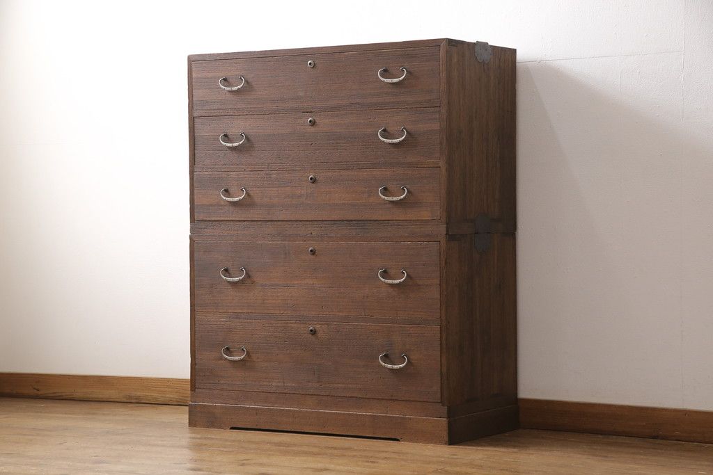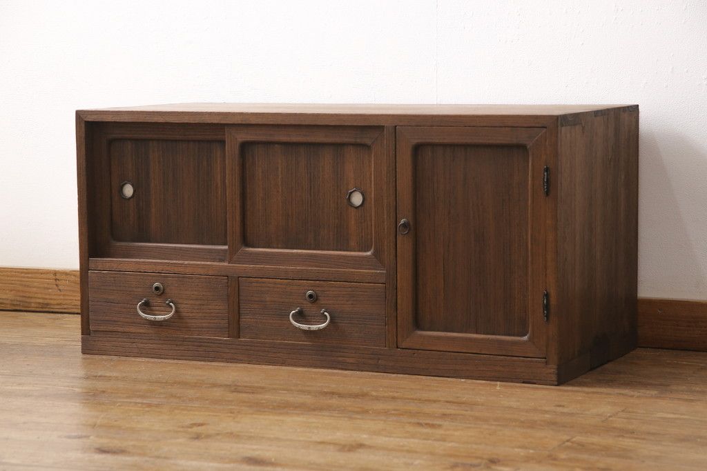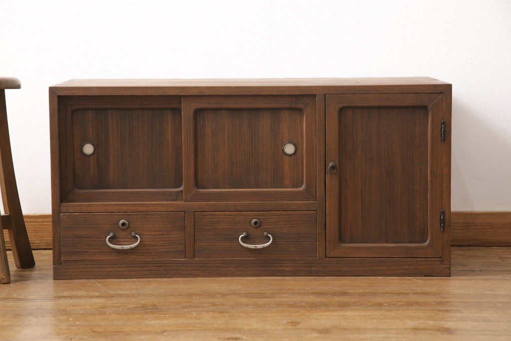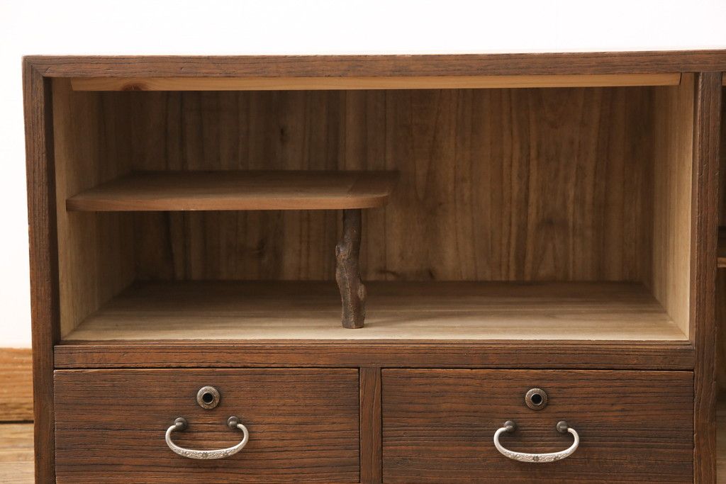 3段重ね桐箪笥をテレビボードとチェストにリメイク!上段は天板を補強しテレビボードに。中段・下段は重ねチェストに。いずれもオーク系で着色仕上げ。