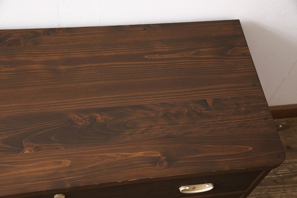 セミオーダー家具実績 > 加茂桐箪笥の下段をリペア&カスタム!天板を取り付けサイドボードにリメイク。オーク系の色味に着色仕上げ。(チェスト、リビングボード、引き出し、桐たんす、和タンス)