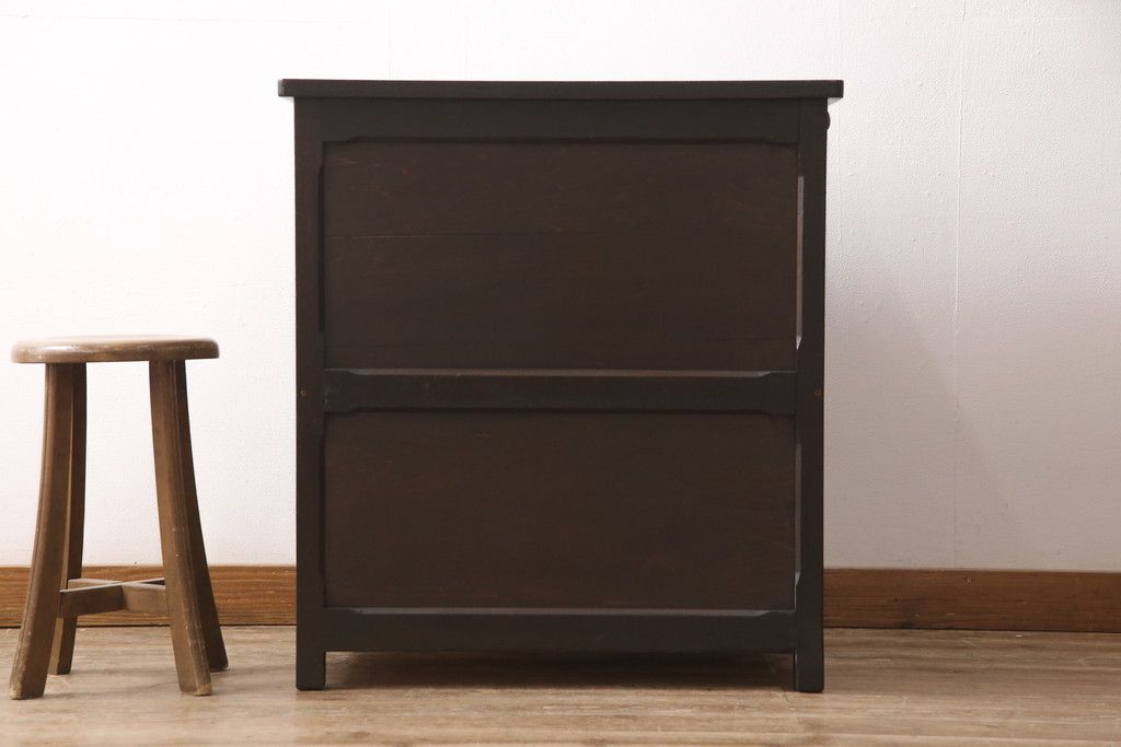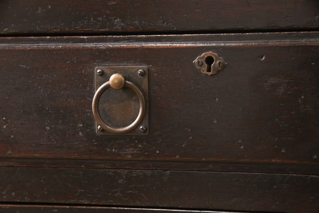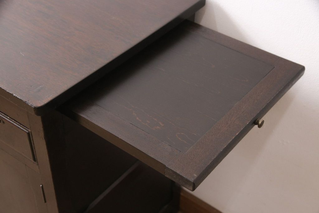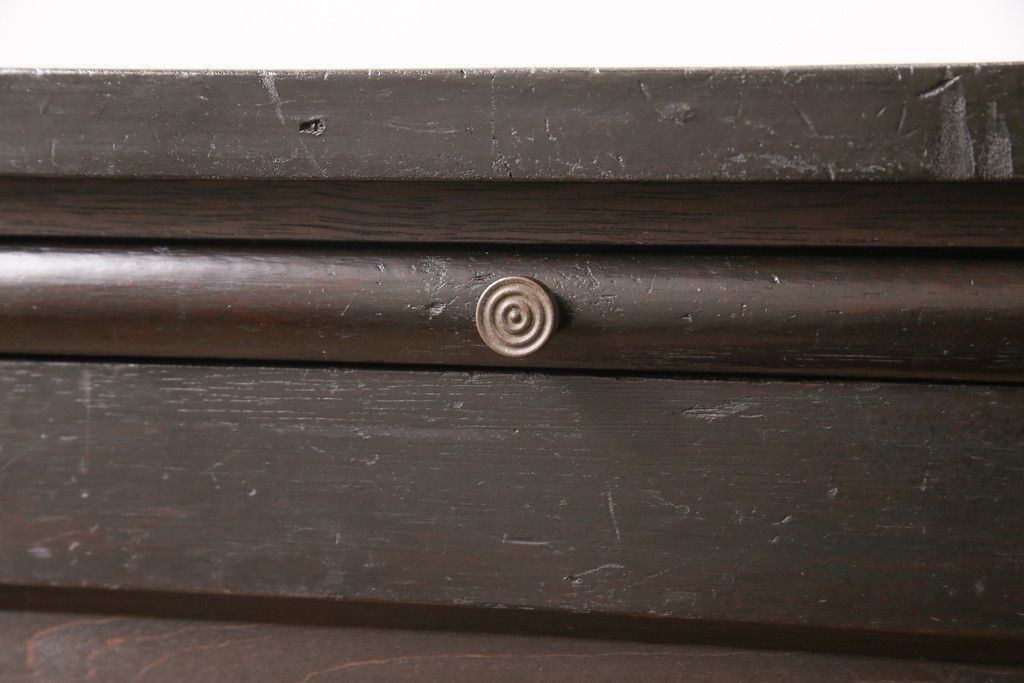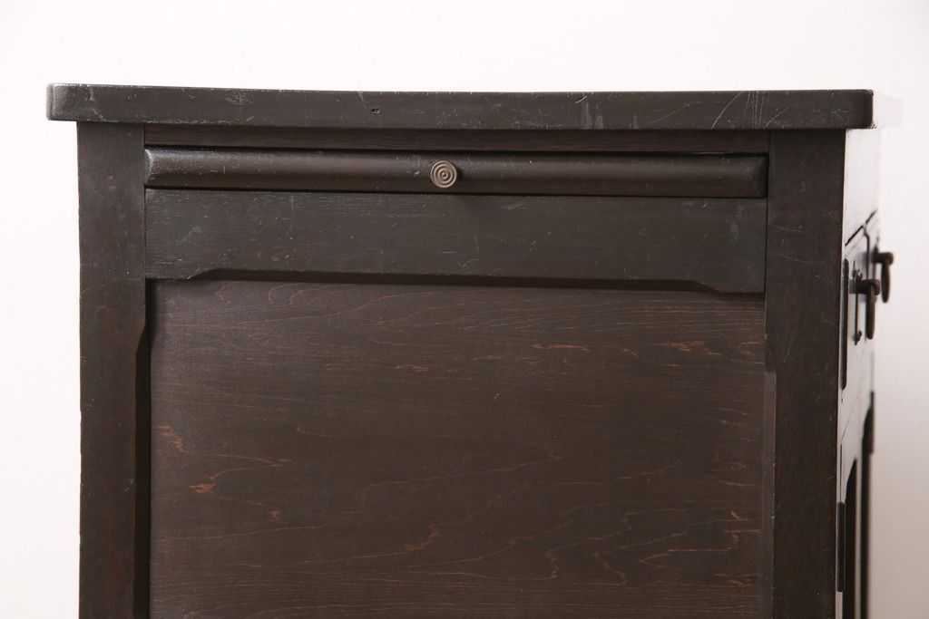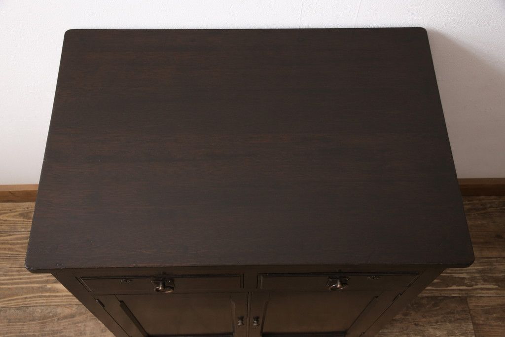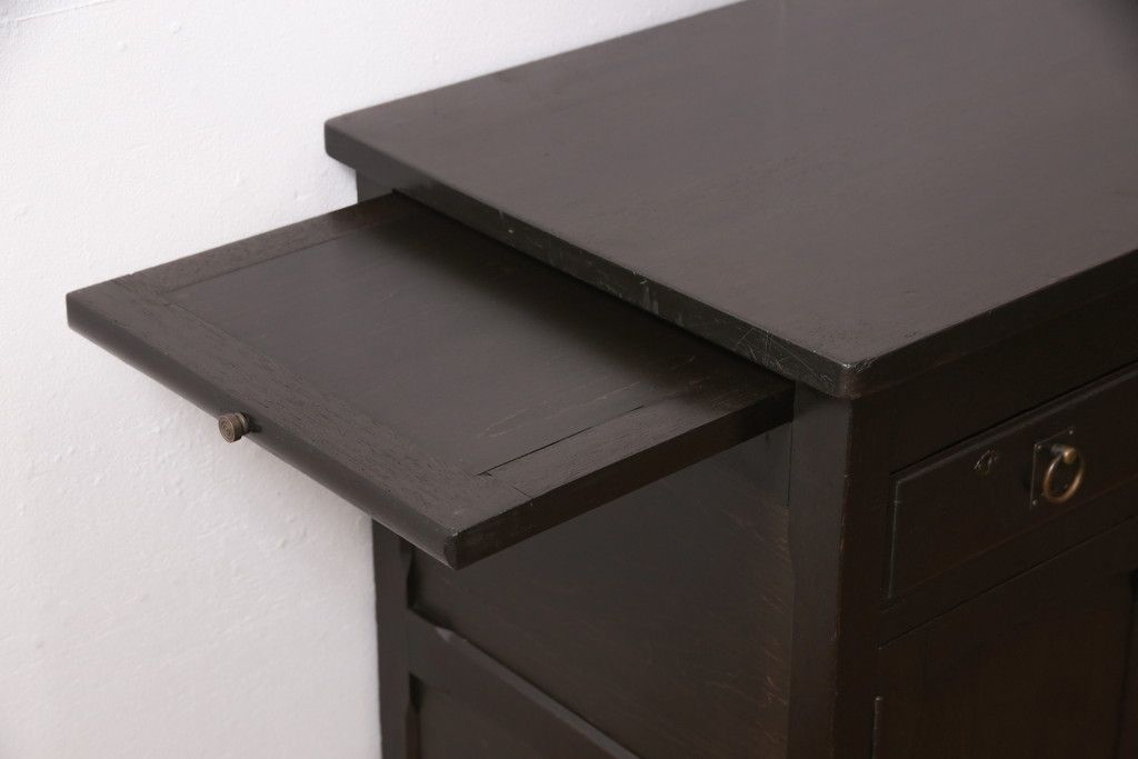 キャビネット・戸棚> サイドキャビネット > 大正期のサイドキャビネットをリペア&カスタム!雰囲気をそのままに傷や割れ・痛み部分を修理。1トーン落ち着いた色味に着色仕上げ。(収納棚、戸棚、サイドボード、引き出し)