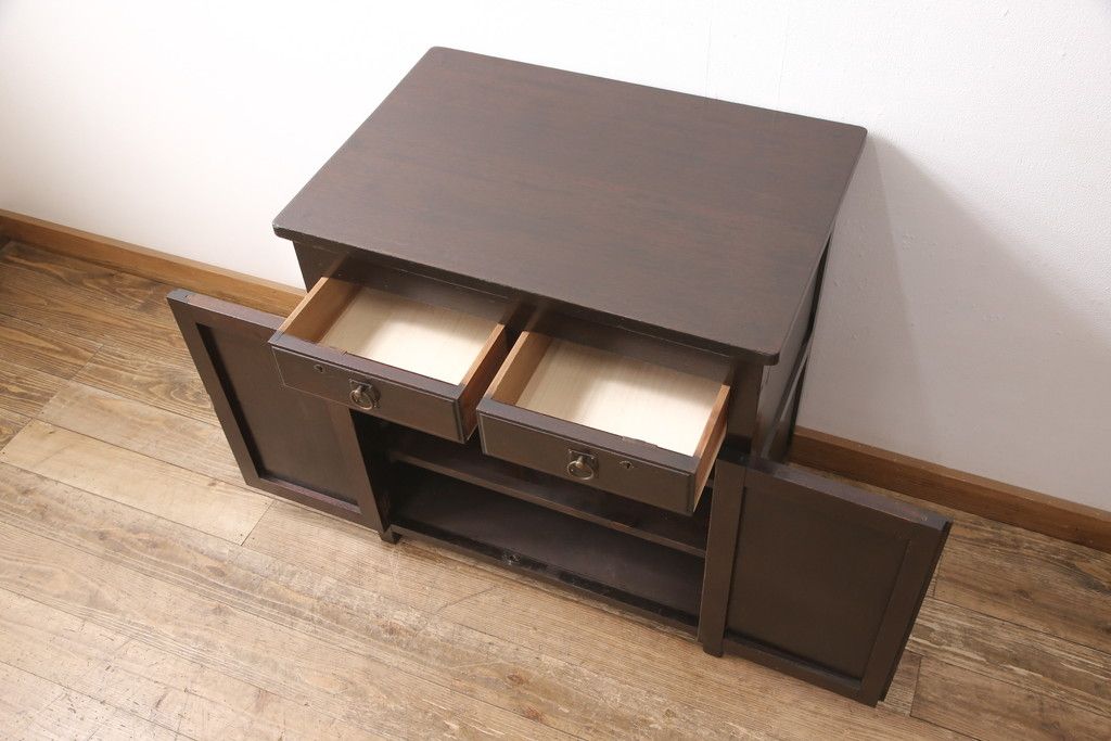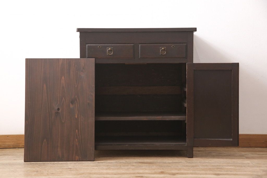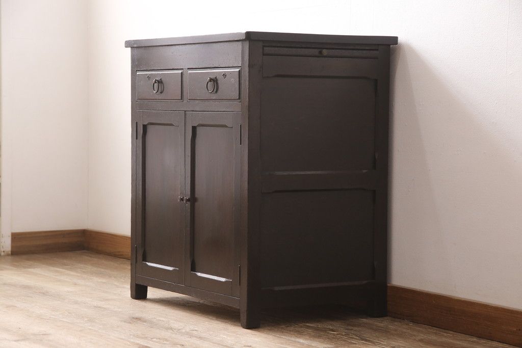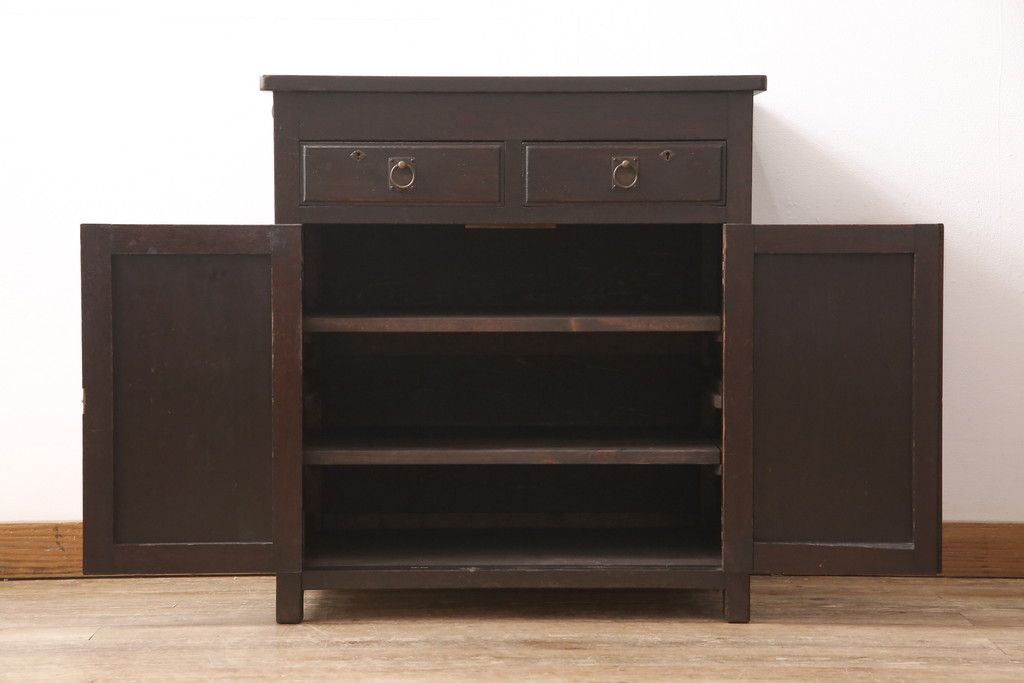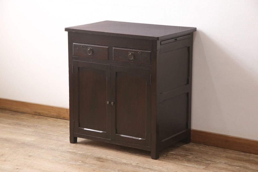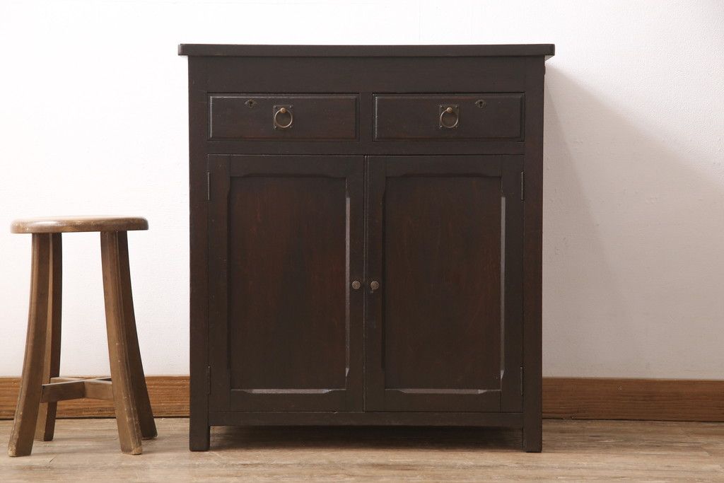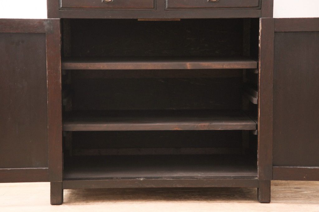 キャビネット・戸棚> サイドキャビネット > 大正期のサイドキャビネットをリペア&カスタム!雰囲気をそのままに傷や割れ・痛み部分を修理。1トーン落ち着いた色味に着色仕上げ。(収納棚、戸棚、サイドボード、引き出し)
