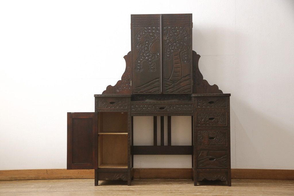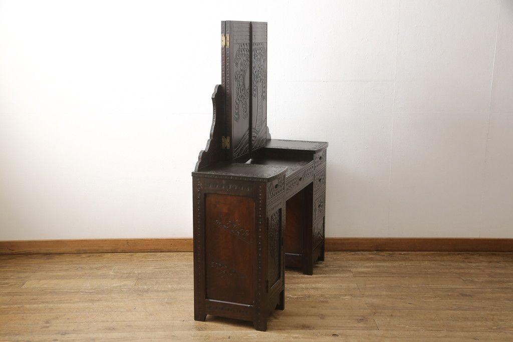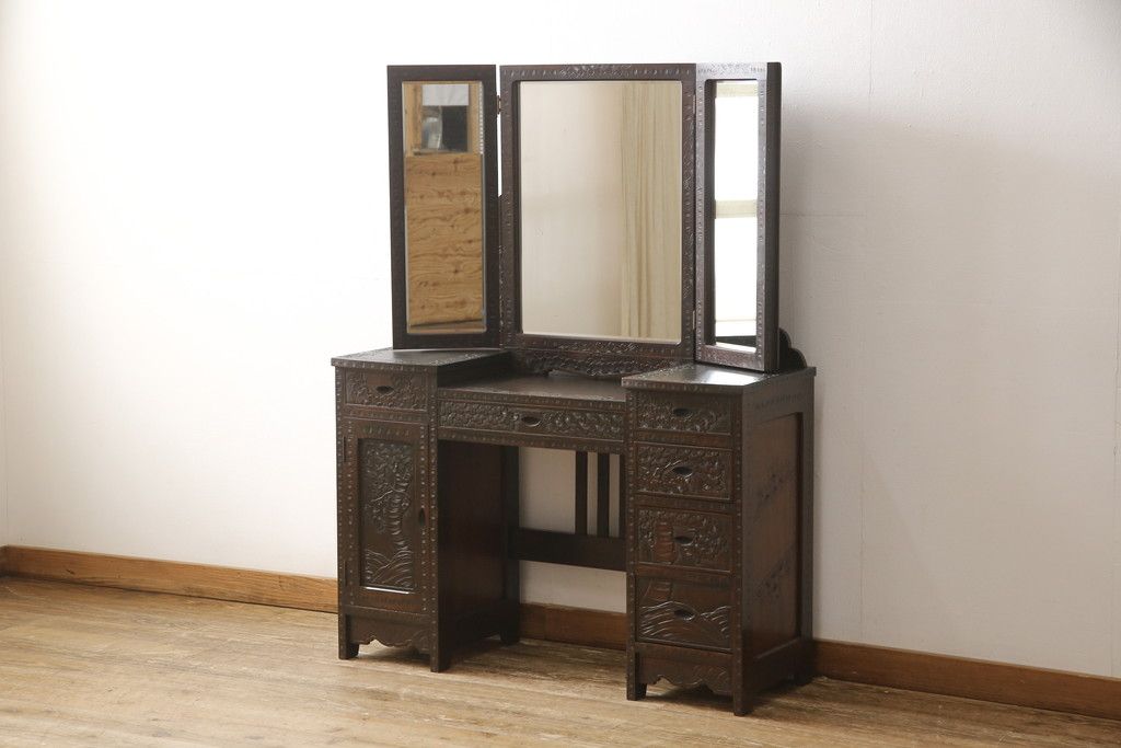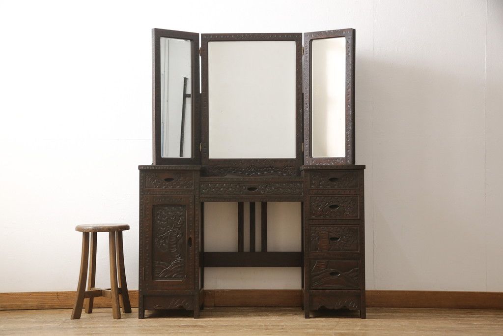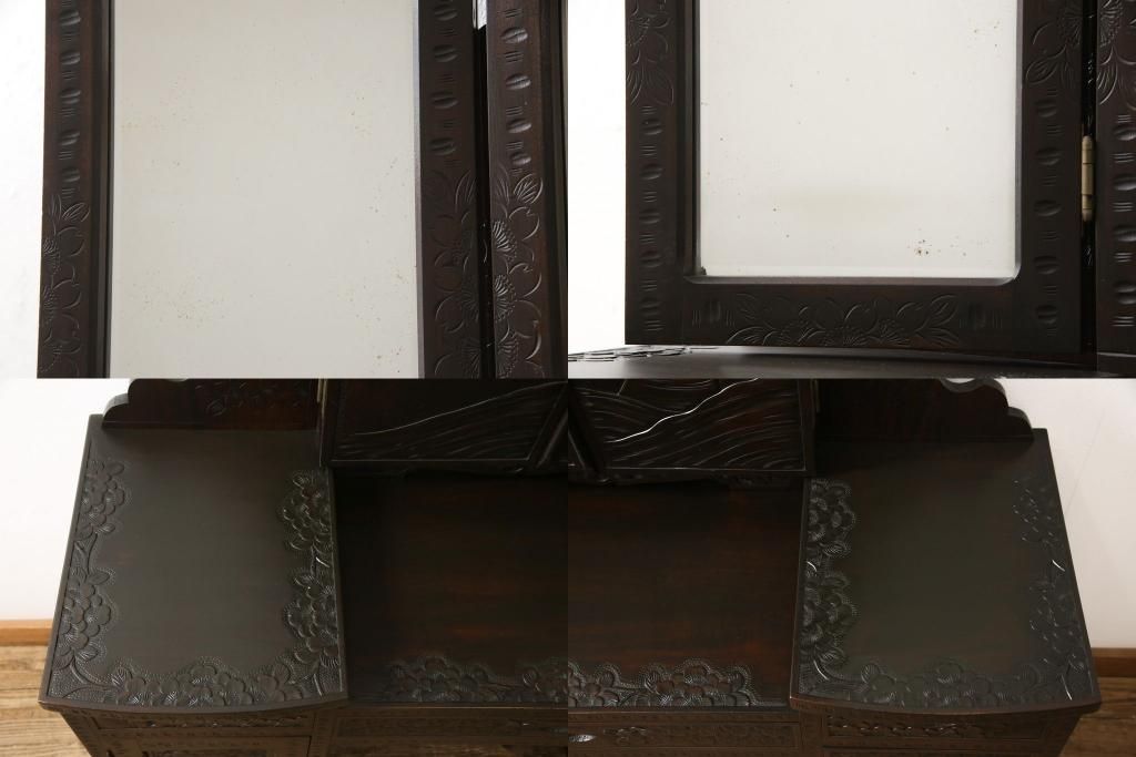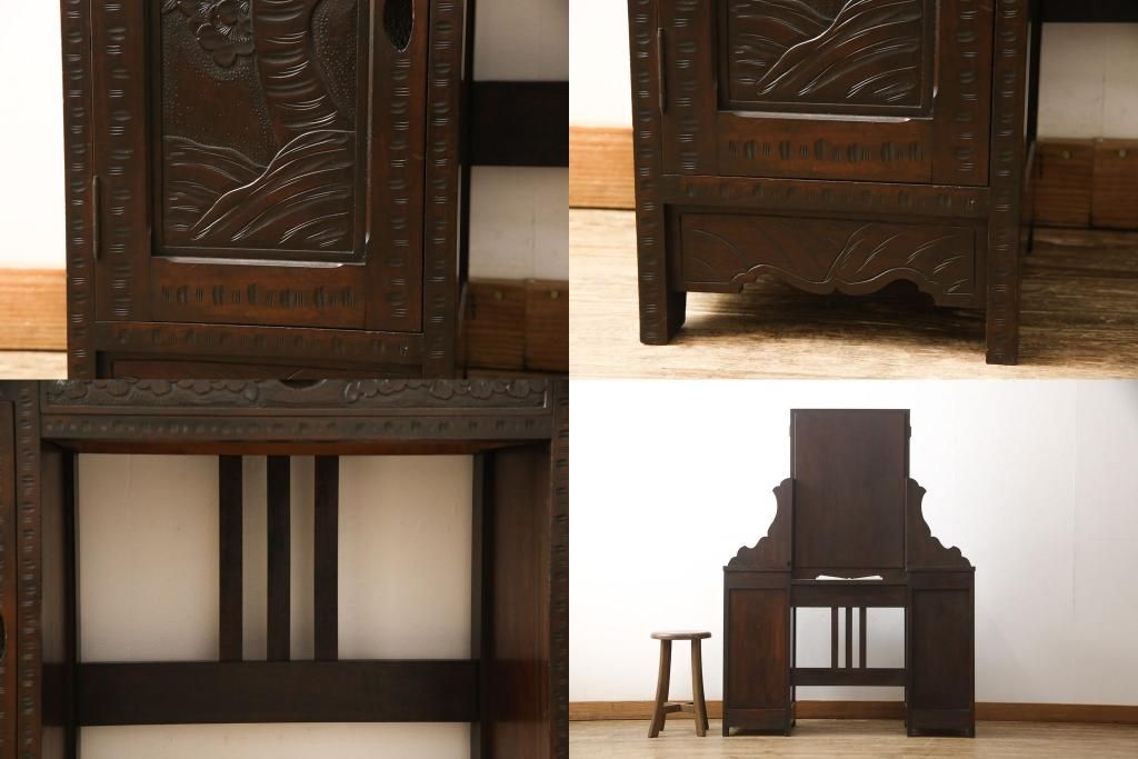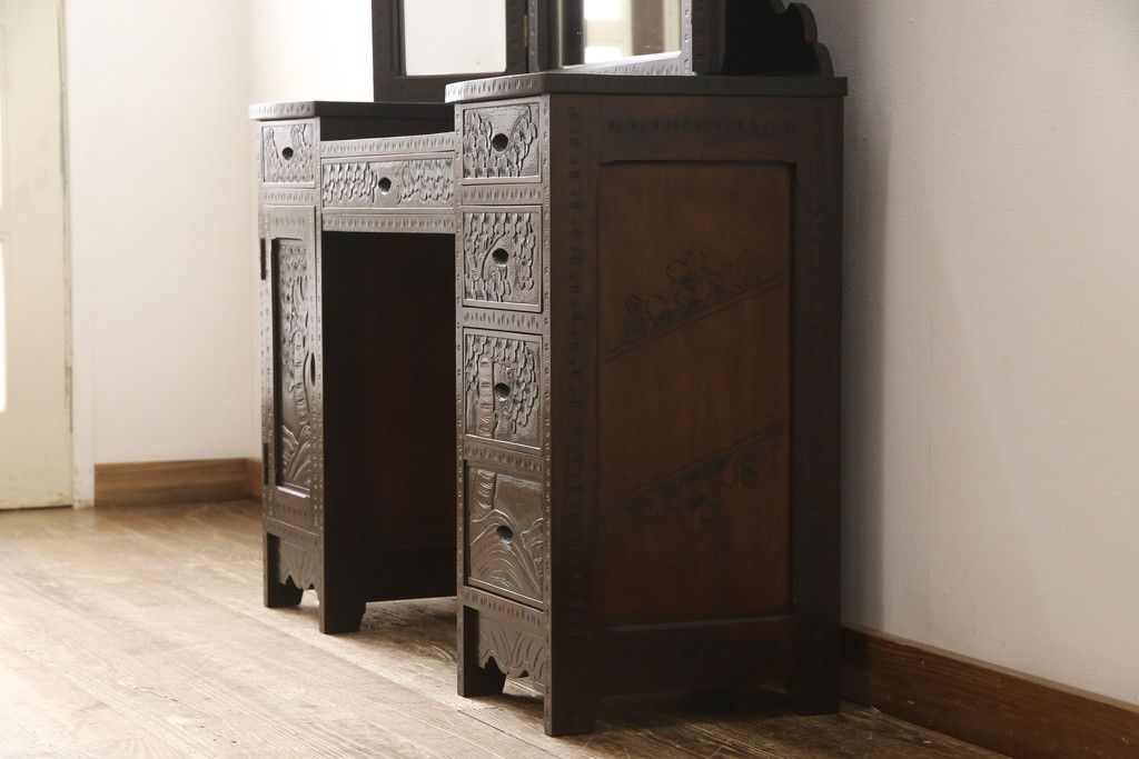 ドレッサーをリペア&カスタム!開き戸内の棚板の高さを変更し、全体を現状をベースに着色仕上げ。(鏡台)