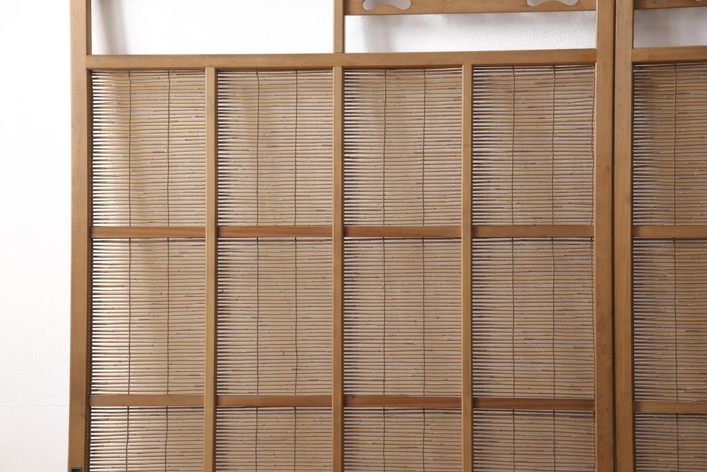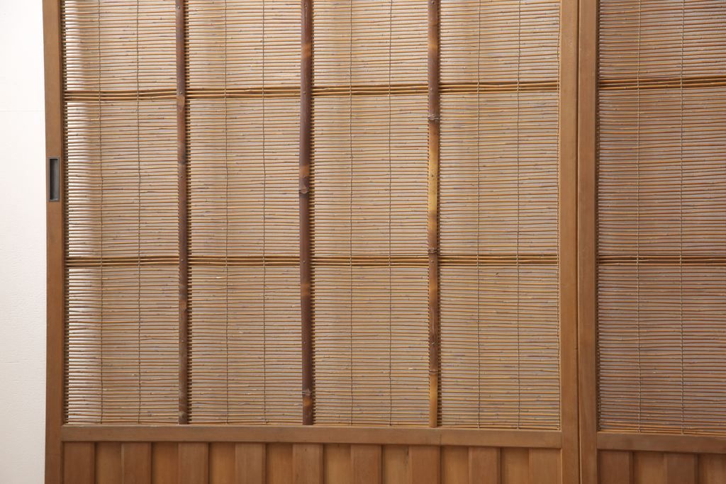 御簾戸4枚をリペア&カスタム!指定箇所に引手をとりつけ。現状の雰囲気をそのままにクリアワックス仕上げ。(簾戸、簀戸、葭戸、夏障子、すど、葦戸)