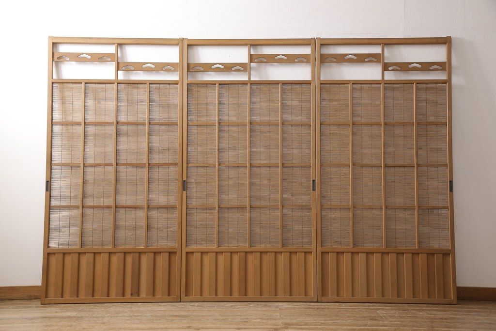 ドア・建具> 引き戸 > 御簾戸4枚をリペア&カスタム!指定箇所に引手をとりつけ。現状の雰囲気をそのままにクリアワックス仕上げ。(簾戸、簀戸、葭戸、夏障子、すど、葦戸)