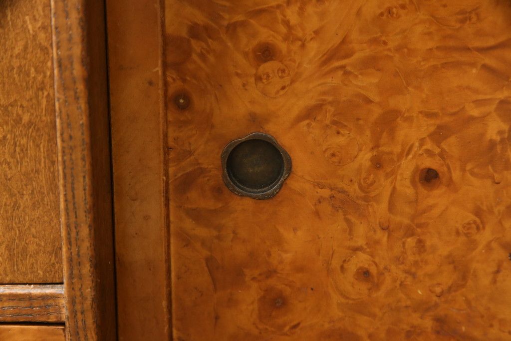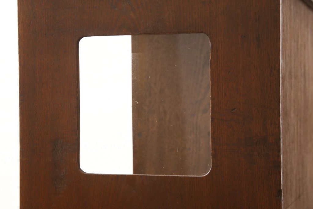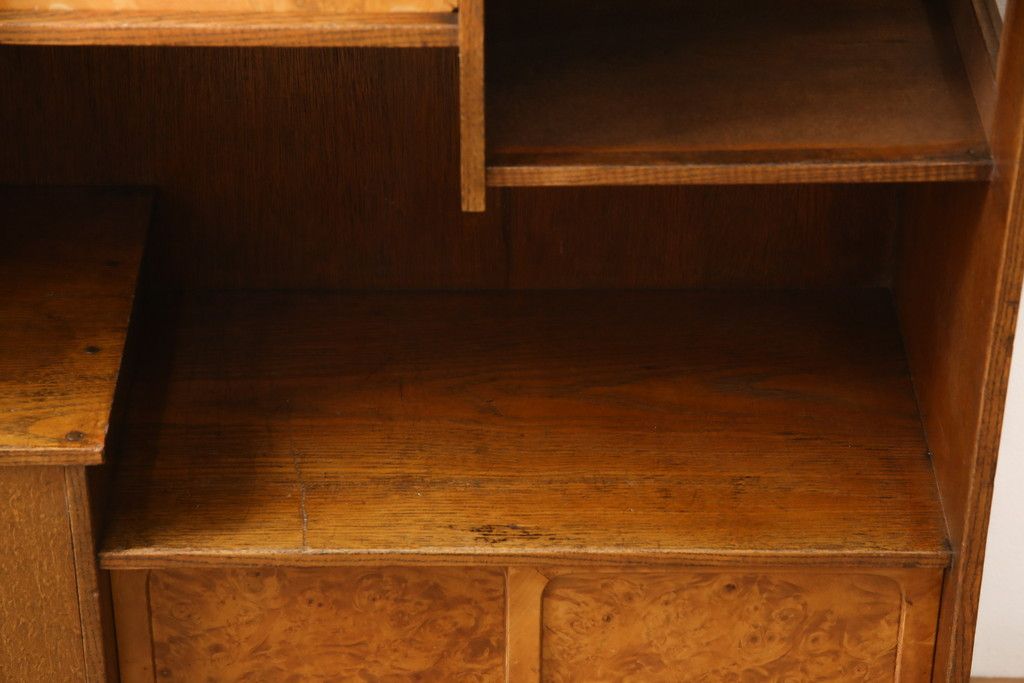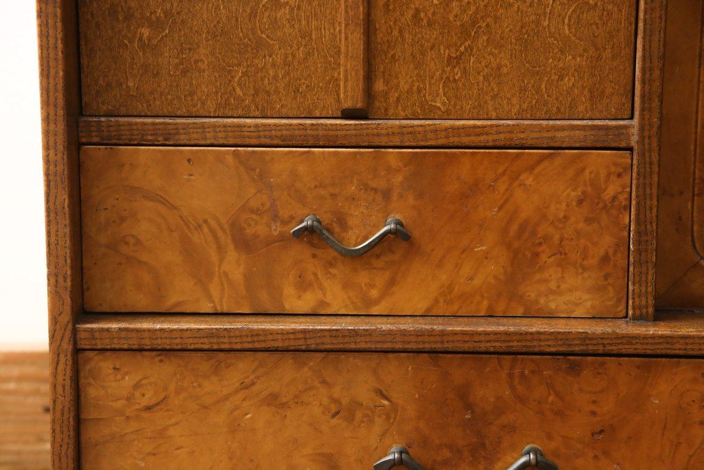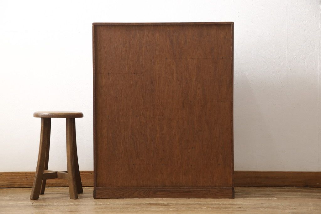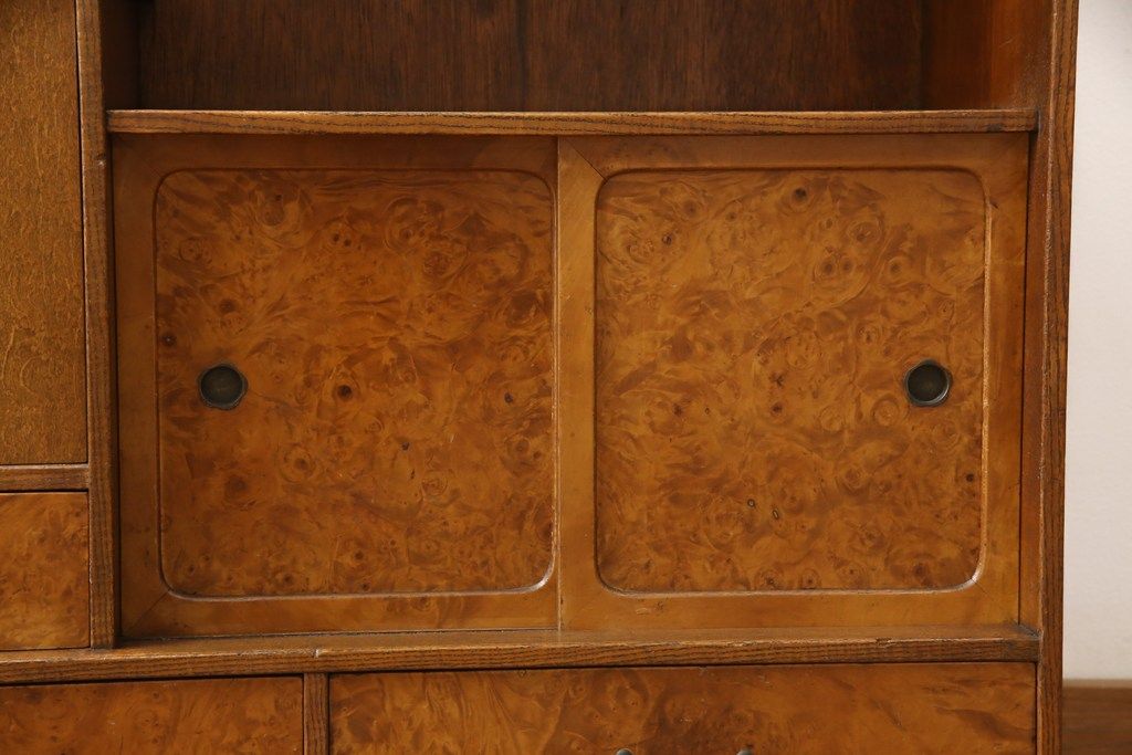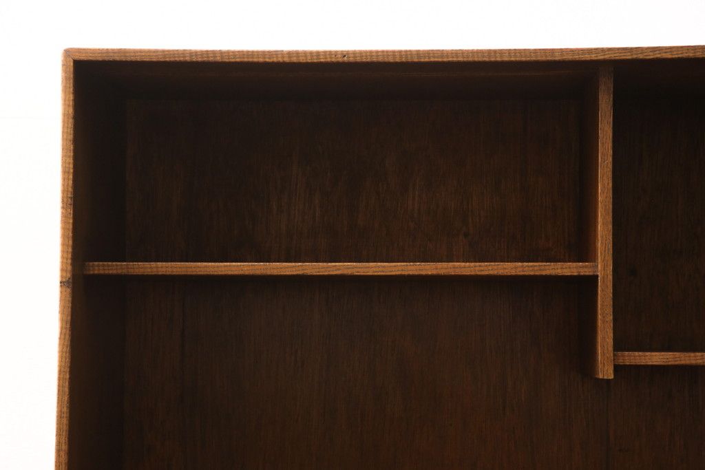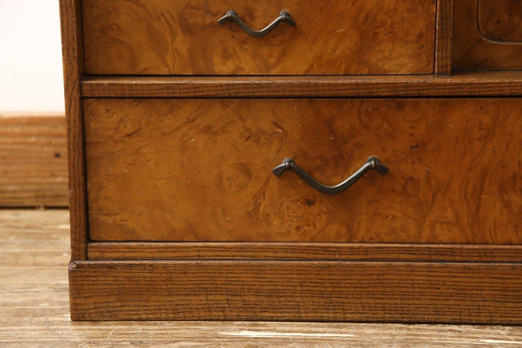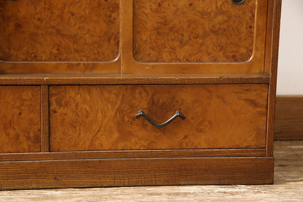 茶棚を綺麗に再生!高品質リペアを施し、引き違い戸に花柄ガラスを取り付け。上部の戸当たりは取り除き、現状の色味を活かした塗装仕上げ。