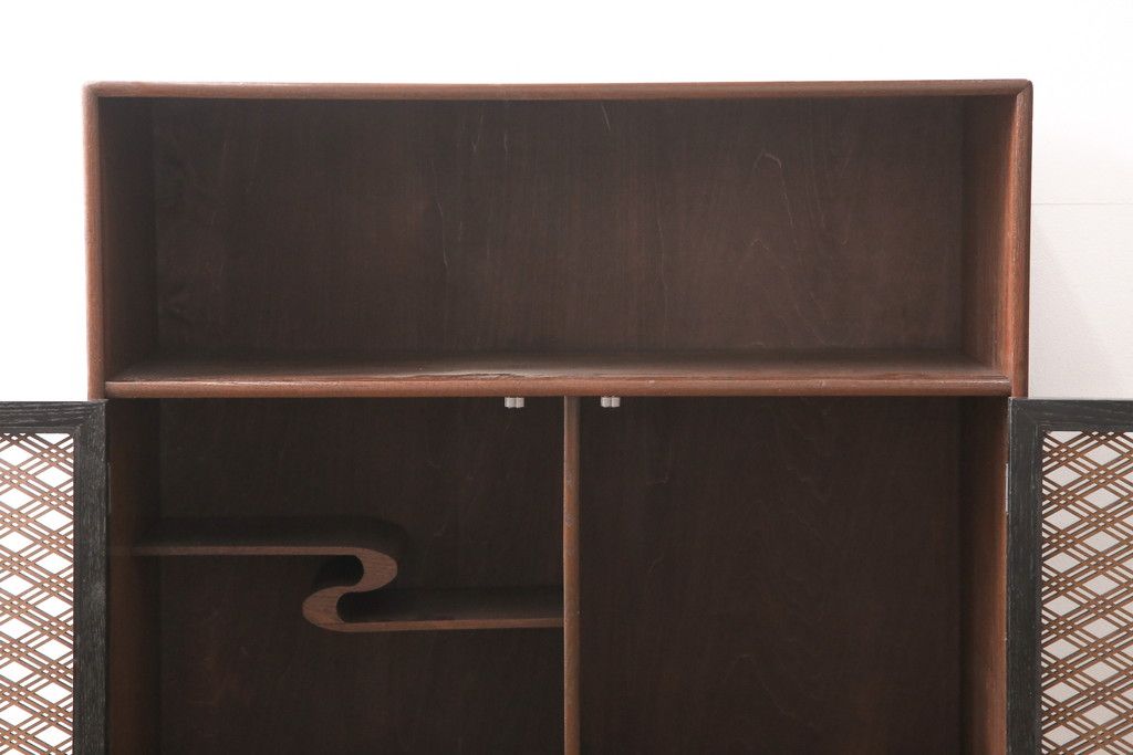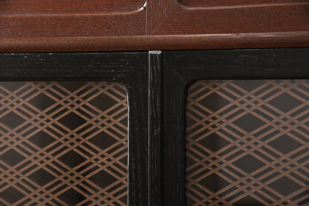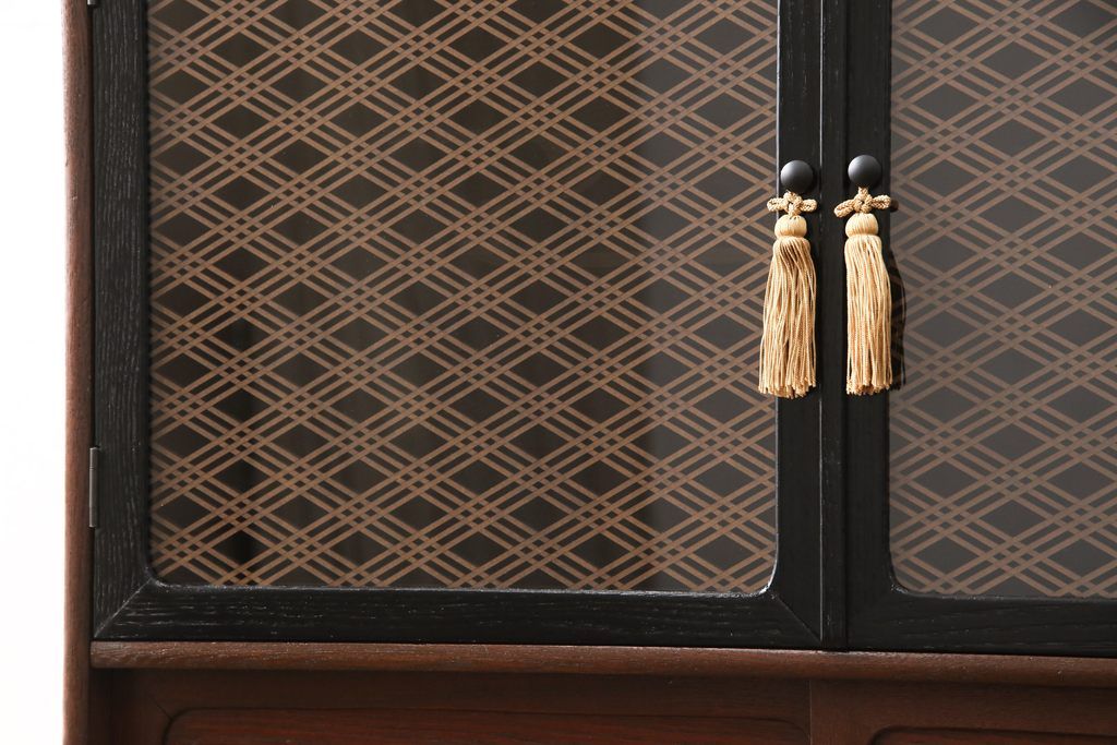 ┗観音扉はレーザー組子で製作した三重菱模様入りのガラス扉に