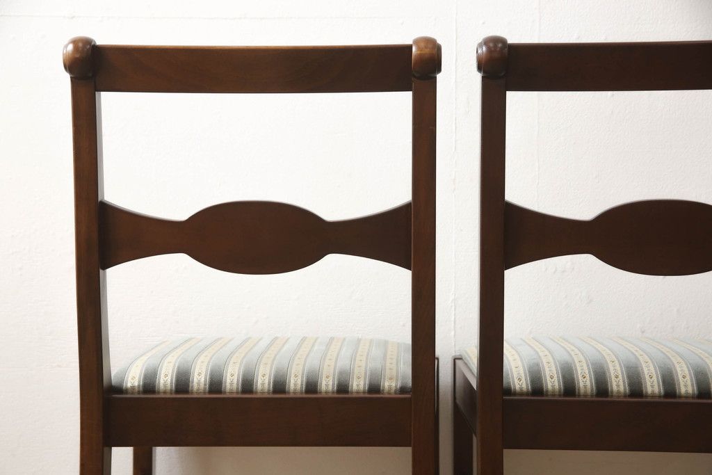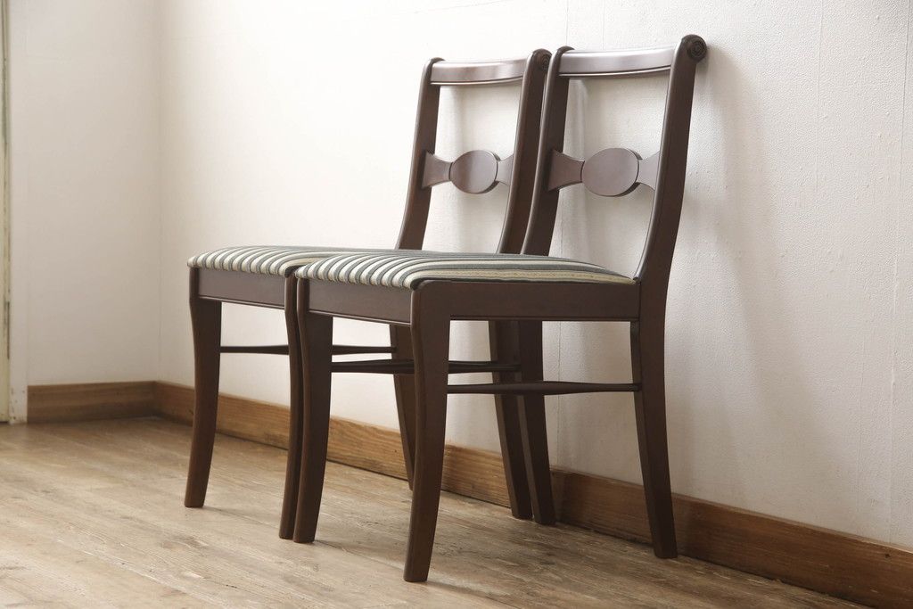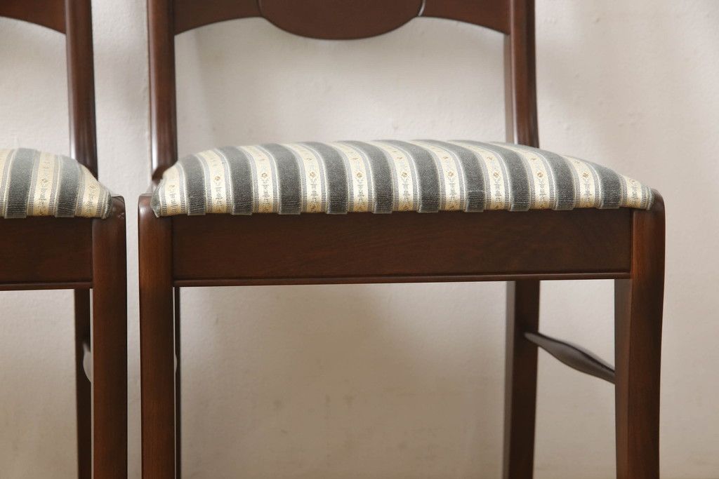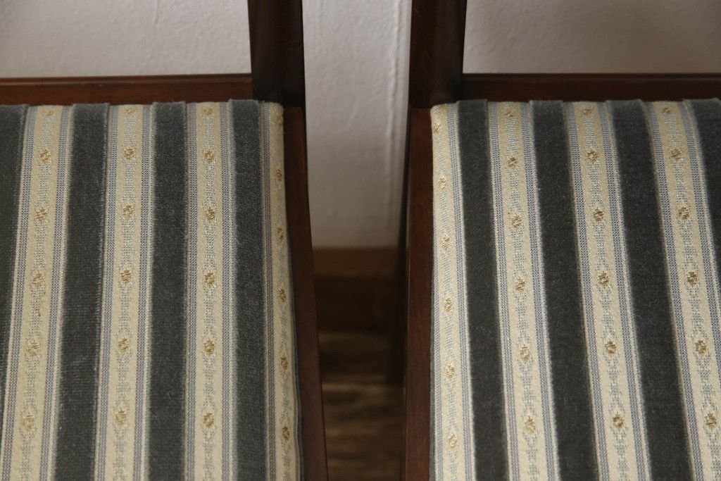中古 神戸洋家具 メープル不二屋 ストライプ柄が上品な雰囲気を醸し出すダイニングチェア2脚セット(イス、椅子)(R-058840)です。