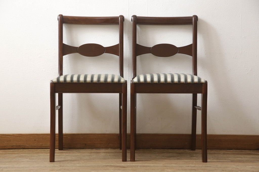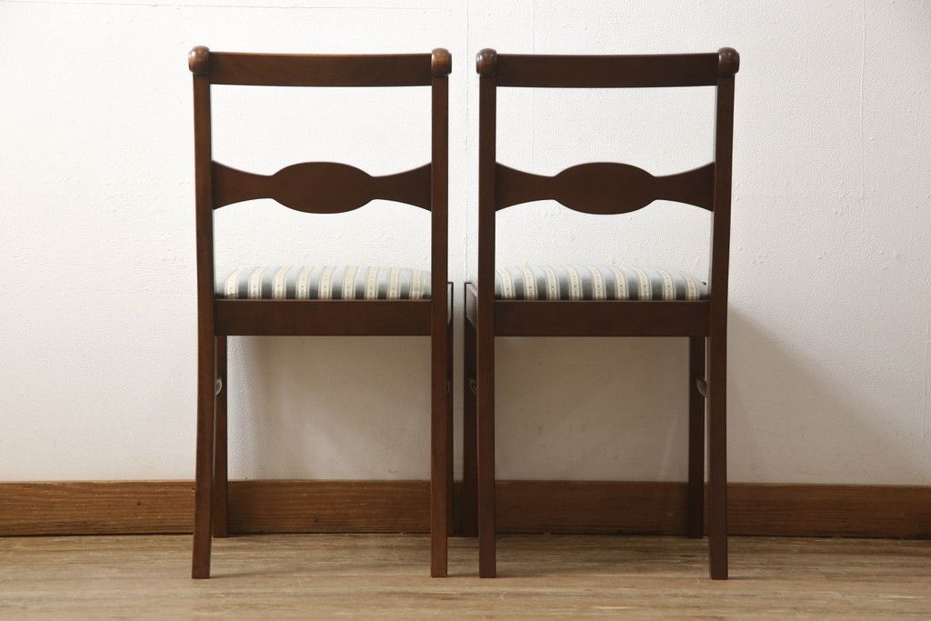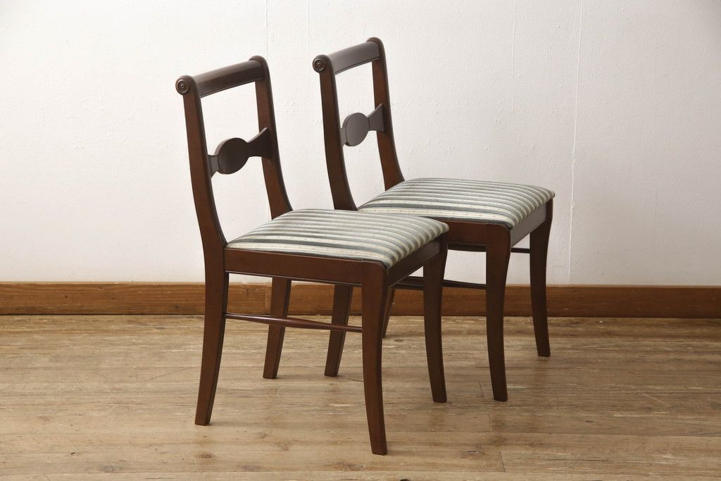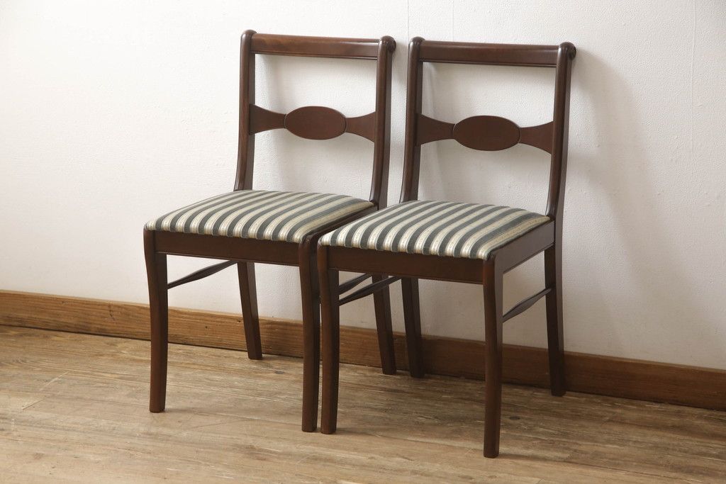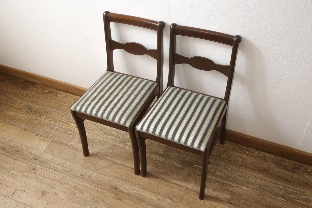 中古 神戸洋家具 メープル不二屋 ストライプ柄が上品な雰囲気を醸し出すダイニングチェア2脚セット(イス、椅子)(R-058840)です。