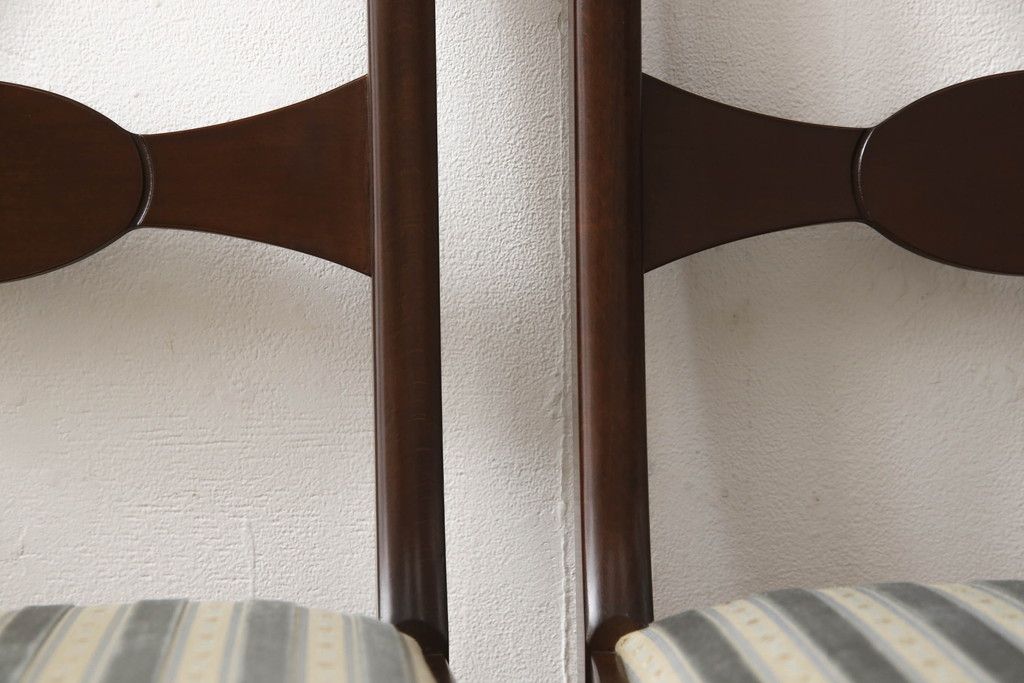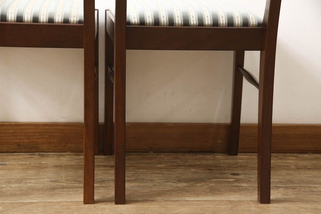 中古 神戸洋家具 メープル不二屋 ストライプ柄が上品な雰囲気を醸し出すダイニングチェア2脚セット(イス、椅子)(R-058840)