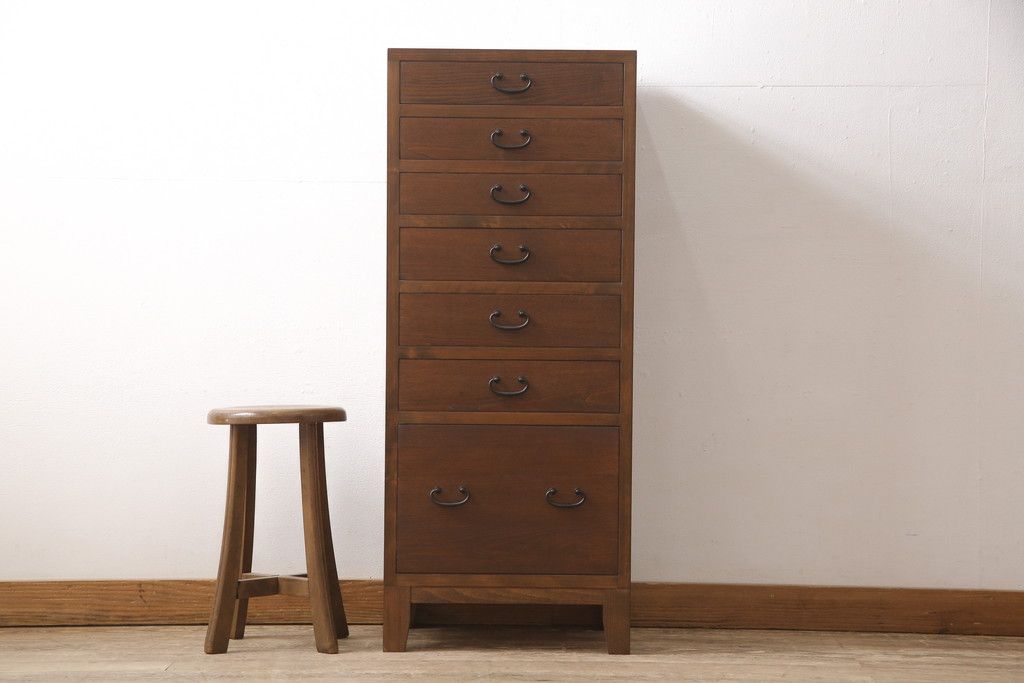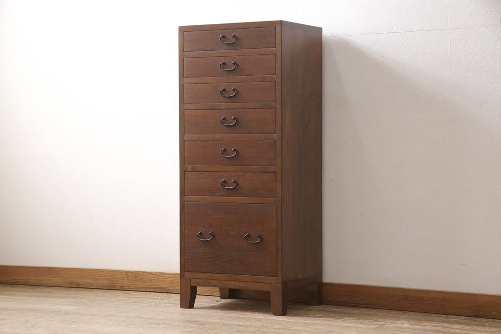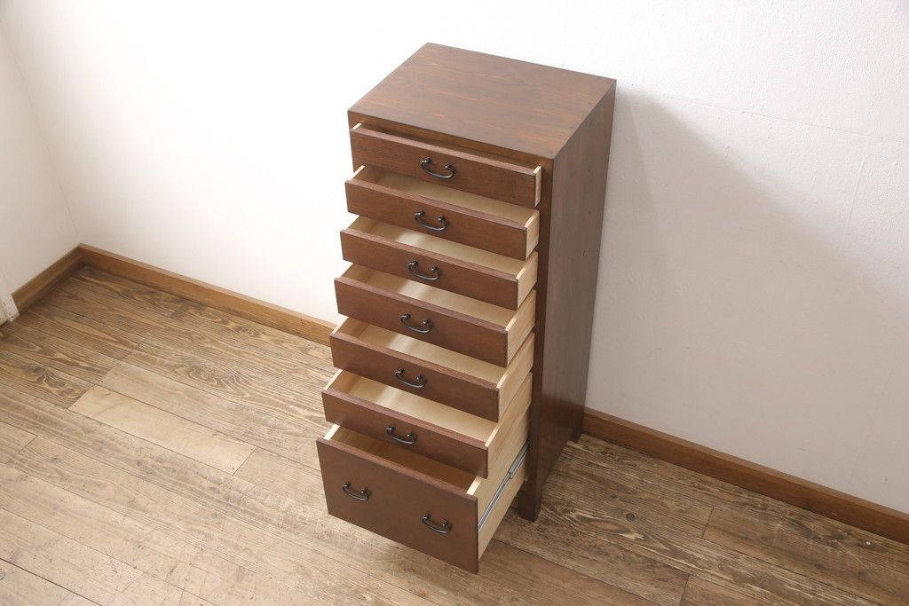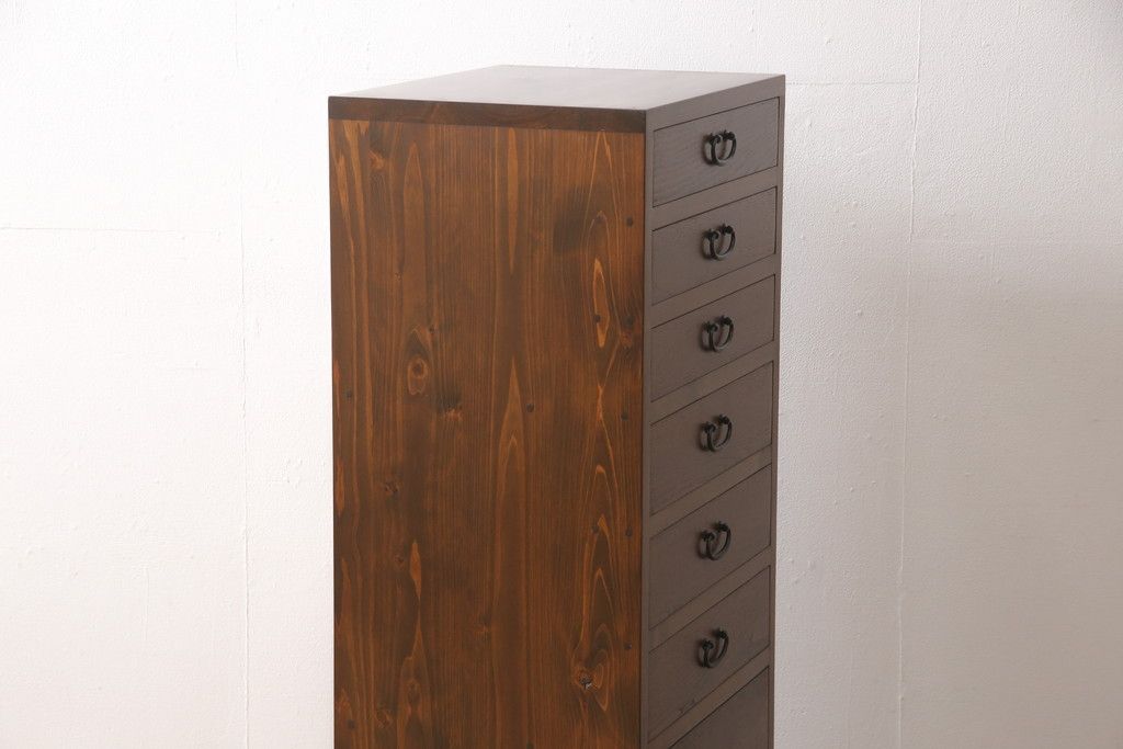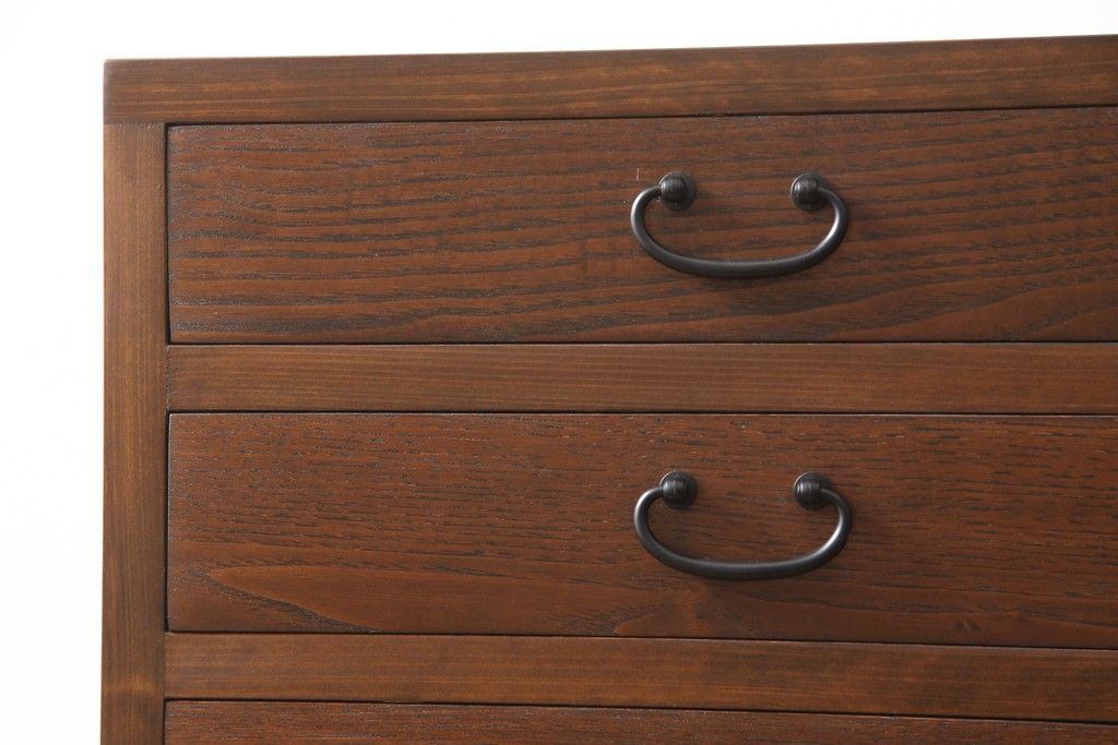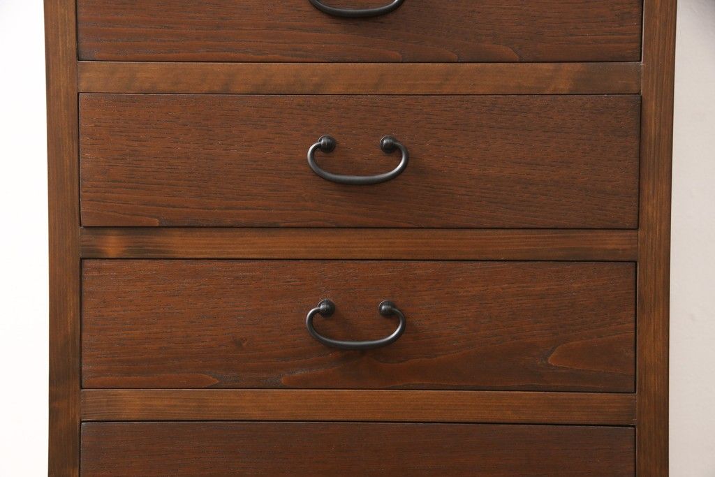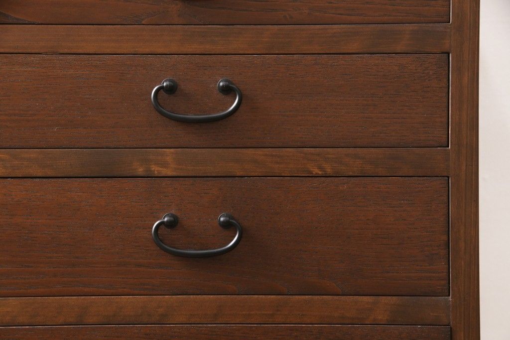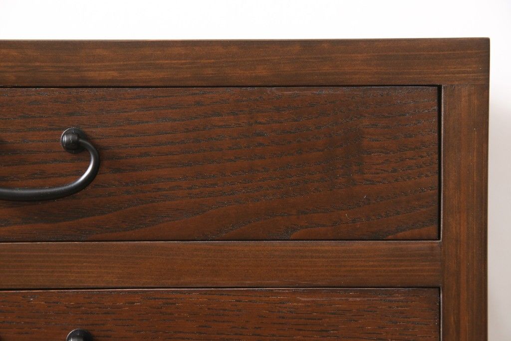 フルオーダー家具実績 > 引き出し収納を新規製作!引き出しは和風の取っ手を取り付け、下1段はスライドレール式に。ご希望の色味で着色し仕上げ。(チェスト、サイドチェスト)