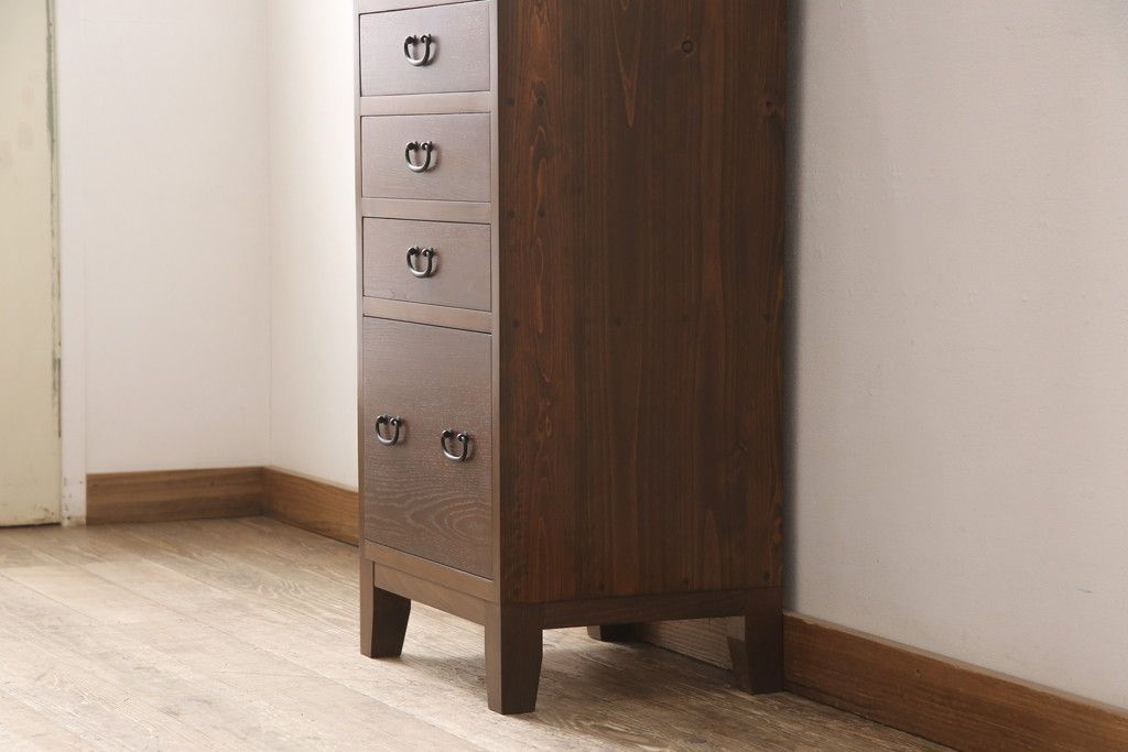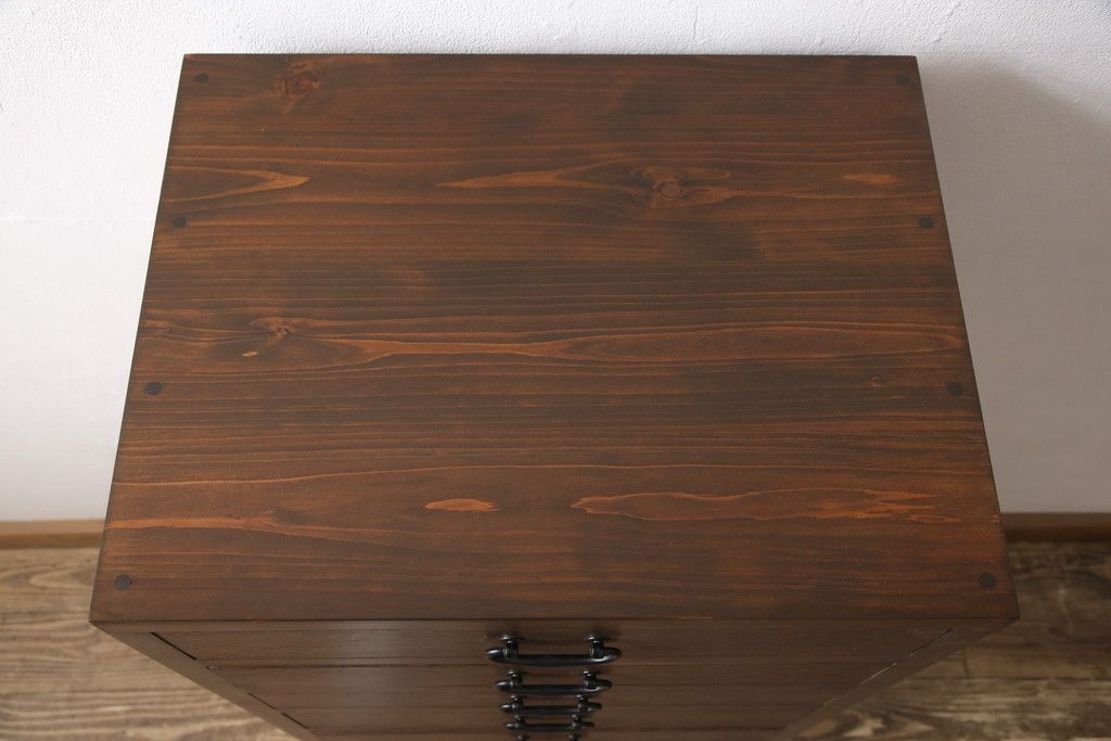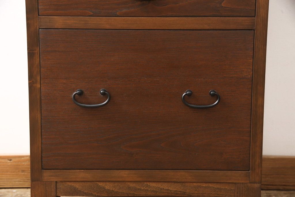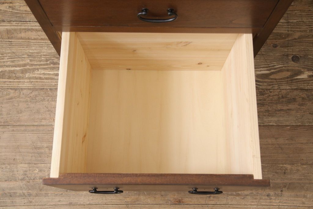 チェスト・引き出し> サイドチェスト > 引き出し収納を新規製作!引き出しは和風の取っ手を取り付け、下1段はスライドレール式に。ご希望の色味で着色し仕上げ。(チェスト、サイドチェスト)