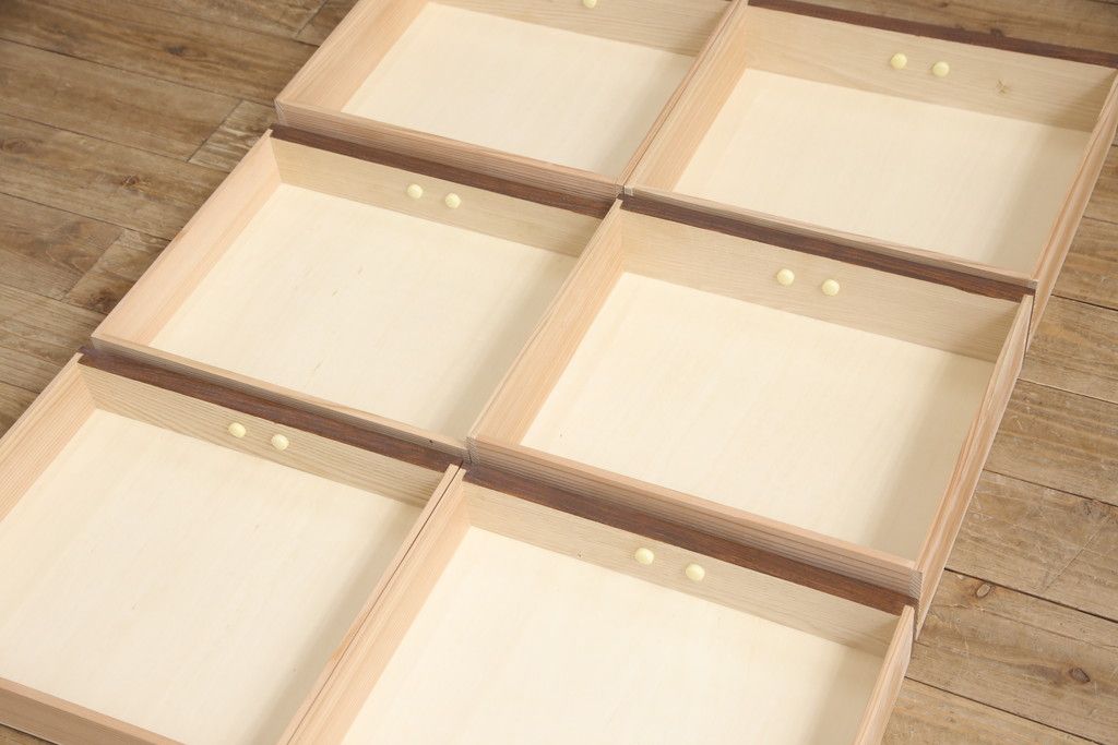 引き出し収納を新規製作!引き出しは和風の取っ手を取り付け、下1段はスライドレール式に。ご希望の色味で着色し仕上げ。(チェスト、サイドチェスト)