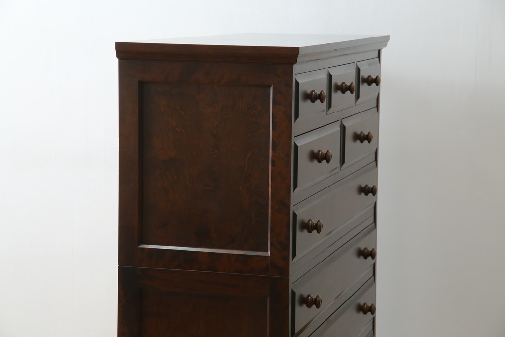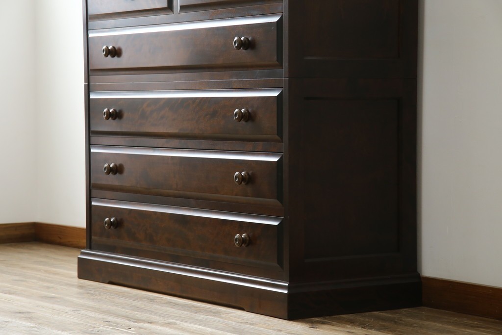 和箪笥> 衣装箪笥 > 中古 美品 北海道民芸家具 上品な佇まいの2段重ね整理タンス (R-058992)