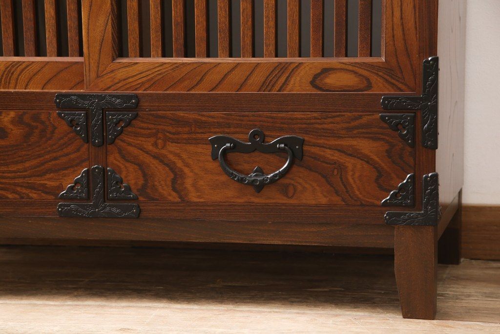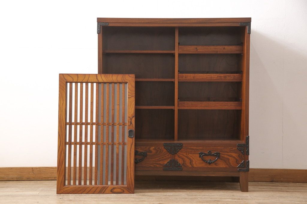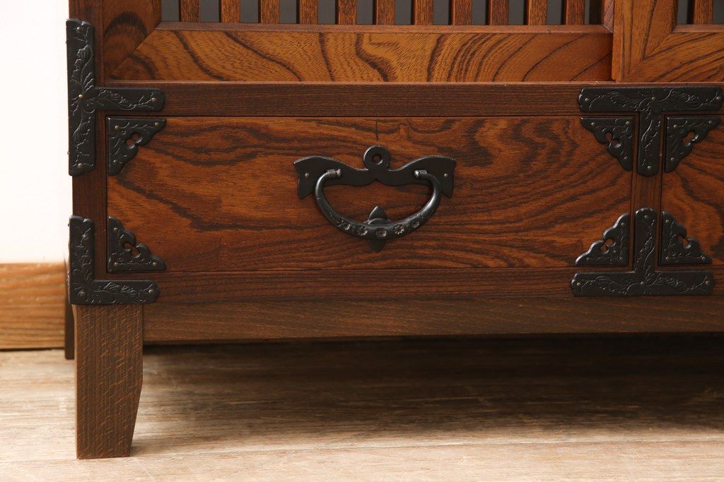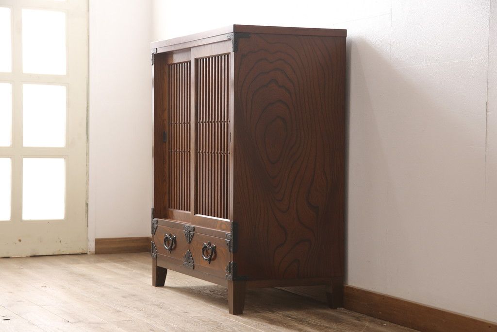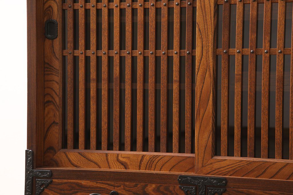 和箪笥> 茶箪笥・茶棚 > 岩谷堂箪笥の収納棚をリペア&カスタム!本体の色味に近づけて着色した木製脚を取り付け。(戸棚、水屋箪笥、茶たんす、茶棚、キャビネット)