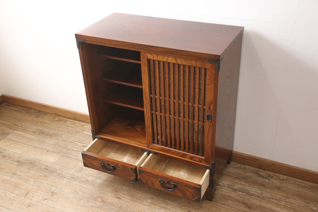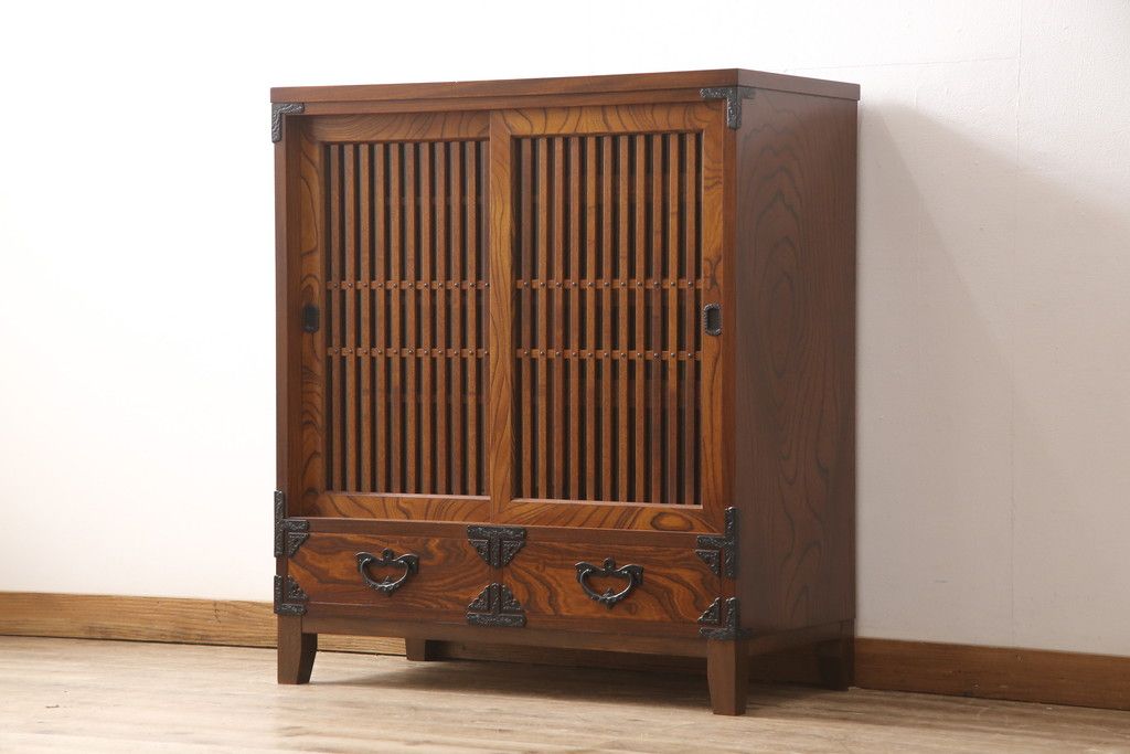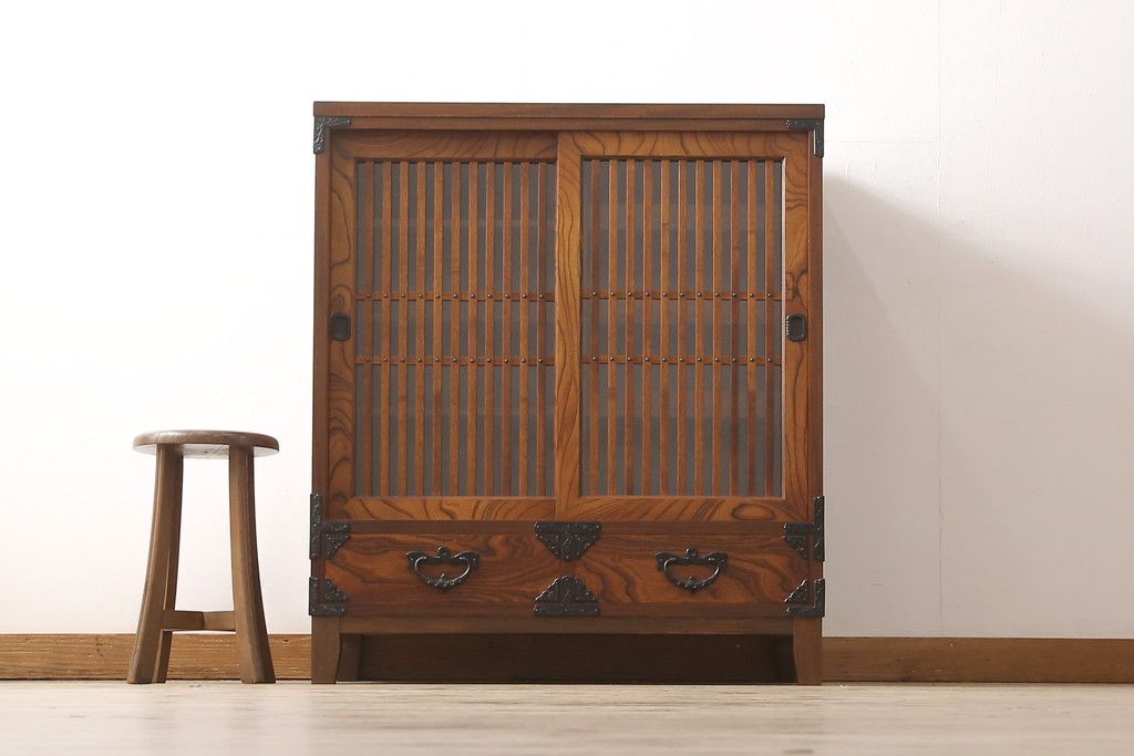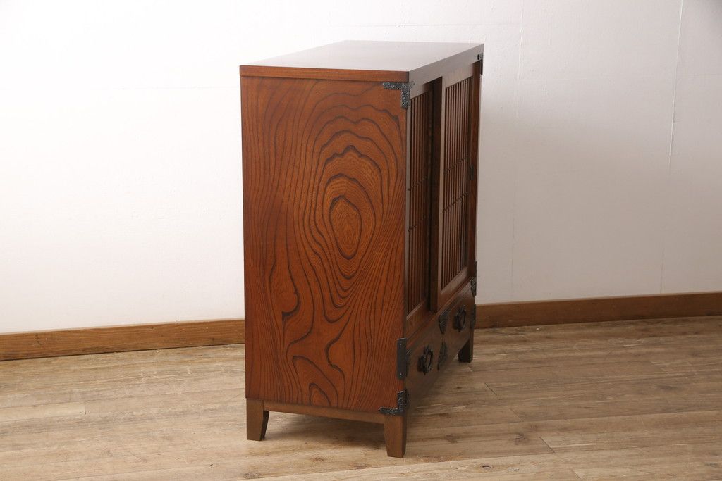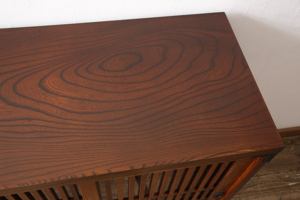 和箪笥> 茶箪笥・茶棚 > 岩谷堂箪笥の収納棚をリペア&カスタム!本体の色味に近づけて着色した木製脚を取り付け。(戸棚、水屋箪笥、茶たんす、茶棚、キャビネット)