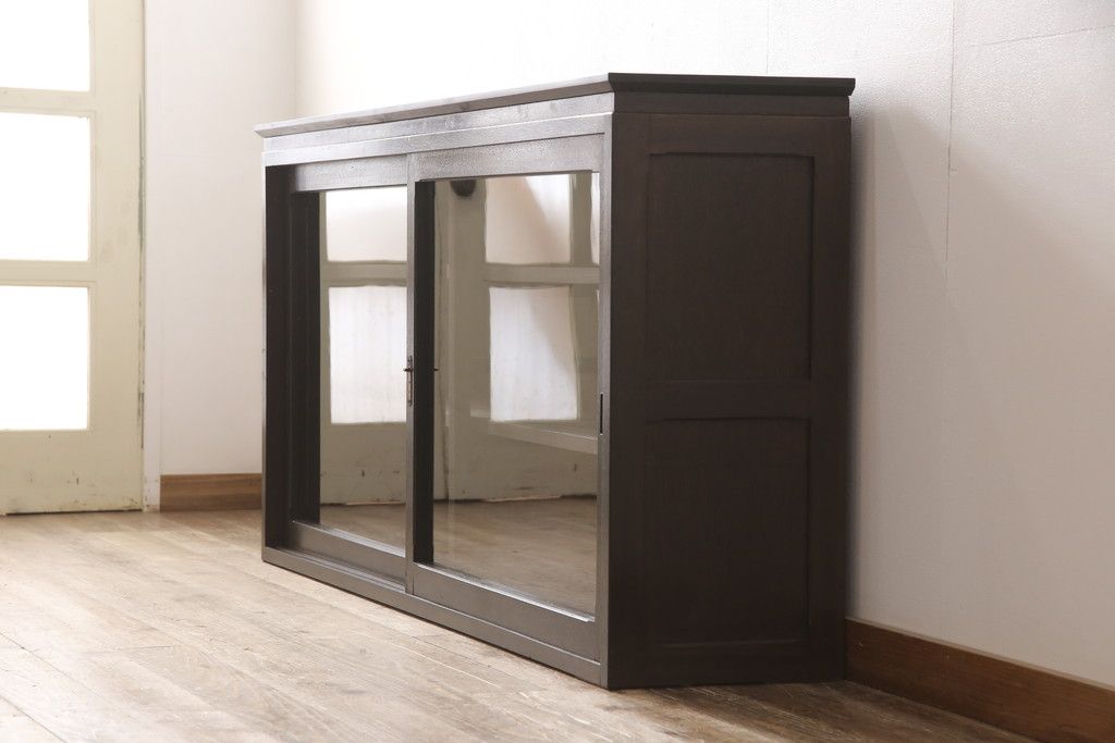 戸棚をリペア&カスタム!ヒノキ無垢材の天板を取り付け、現状の色味に合わせて着色し、ワックスで仕上げ。(収納棚、キャビネット、サイドボード)