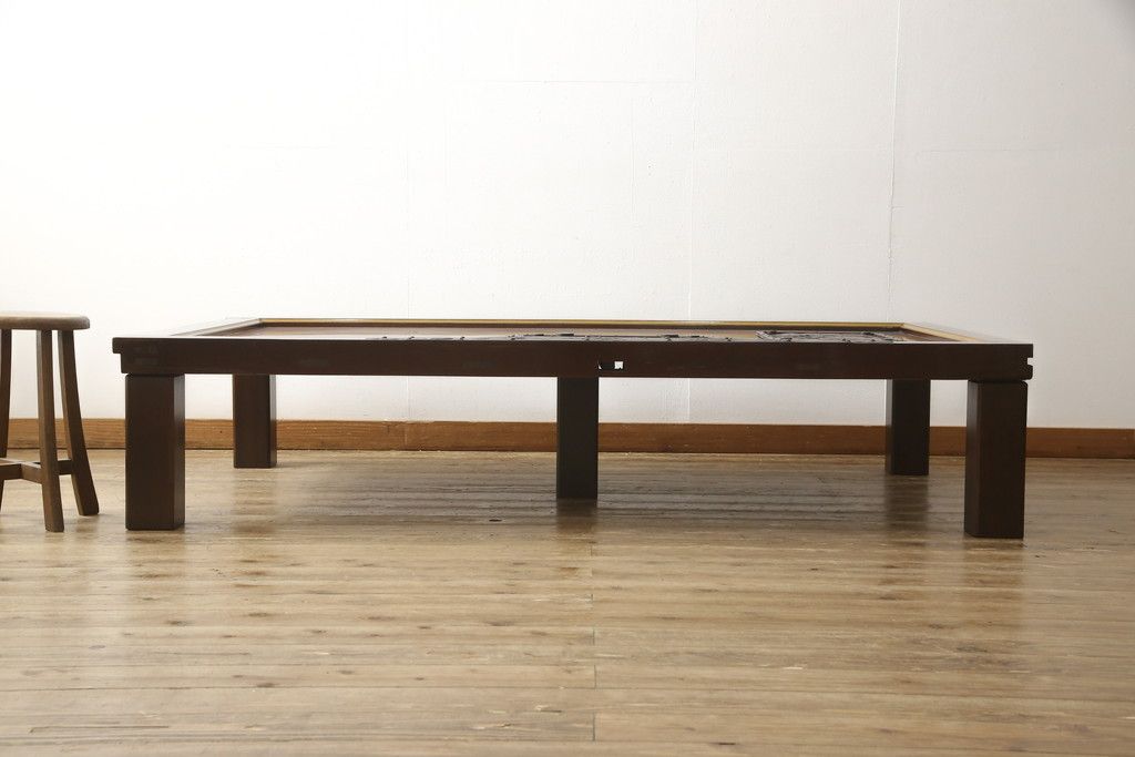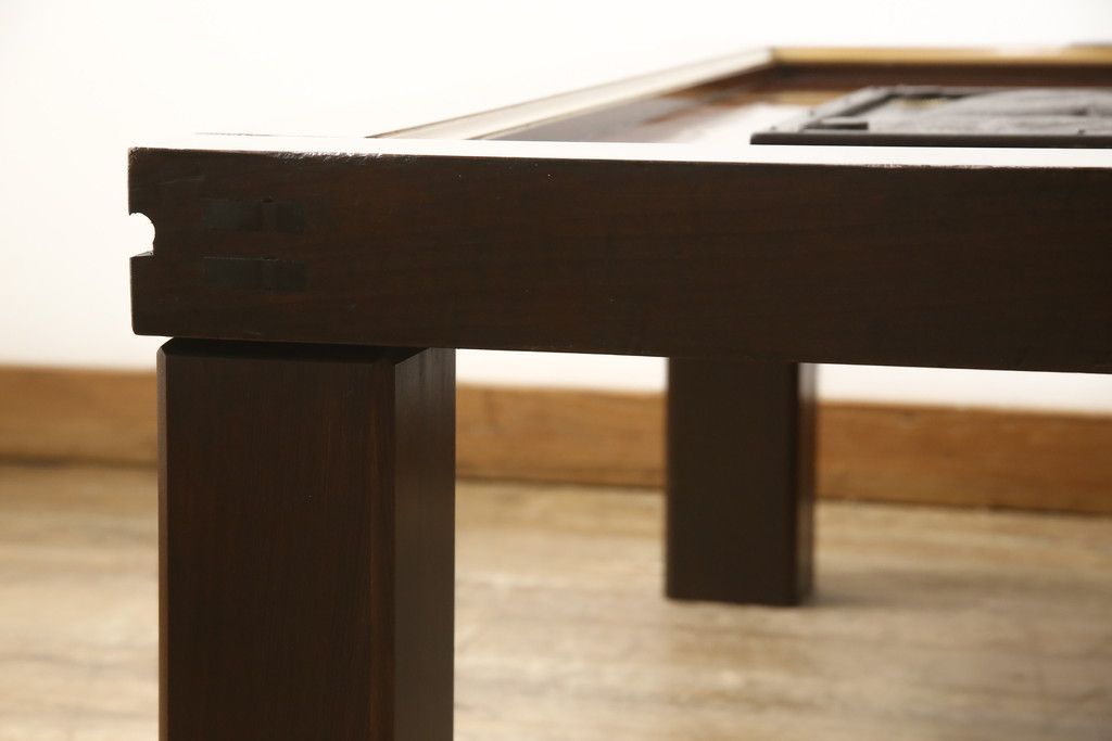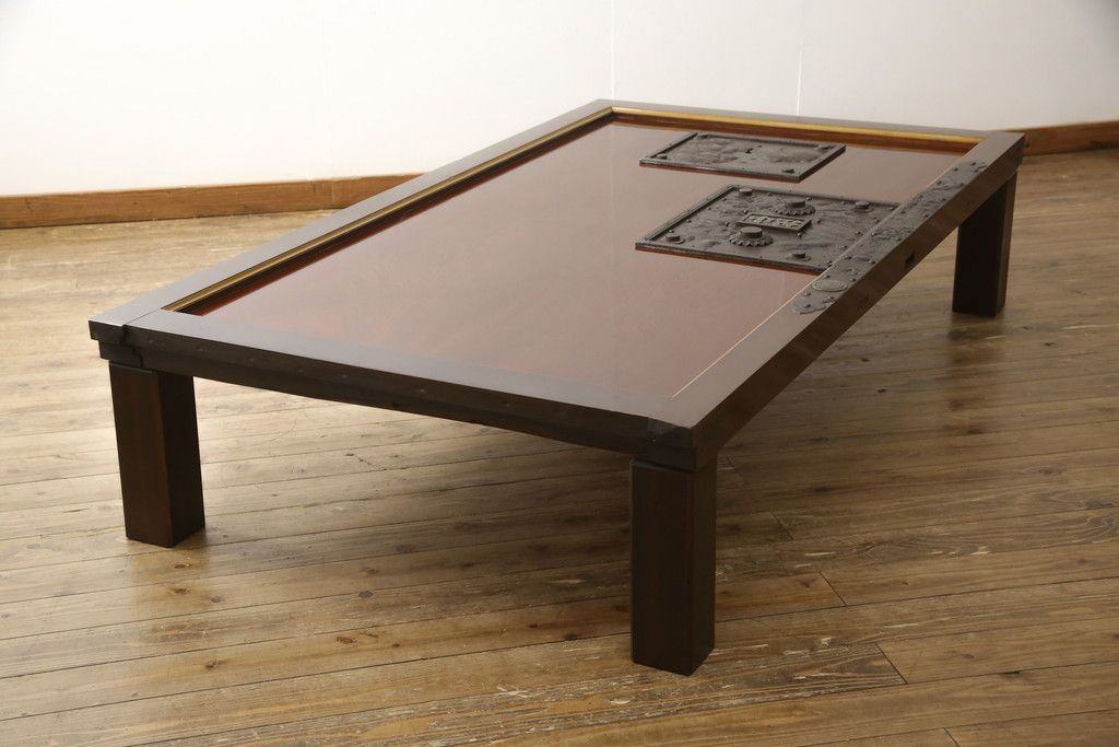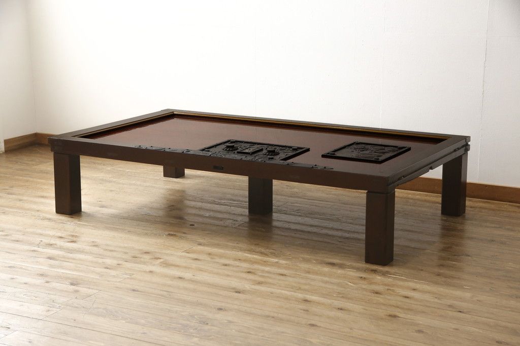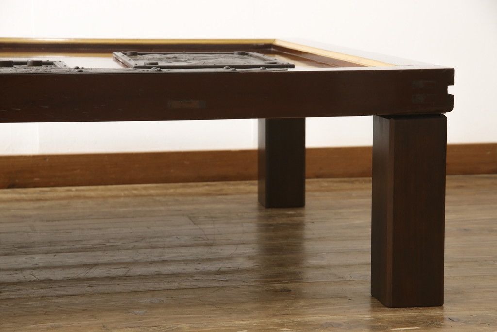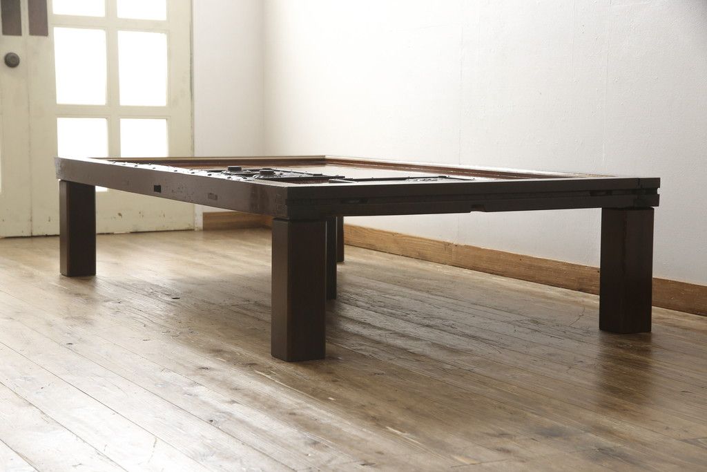 明治大正期の蔵戸をリペア&カスタム!木製脚5本を取り付けテーブルにリメイク。脚は縁の色に合わせて着色し仕上げ。(座卓、ローテーブル)