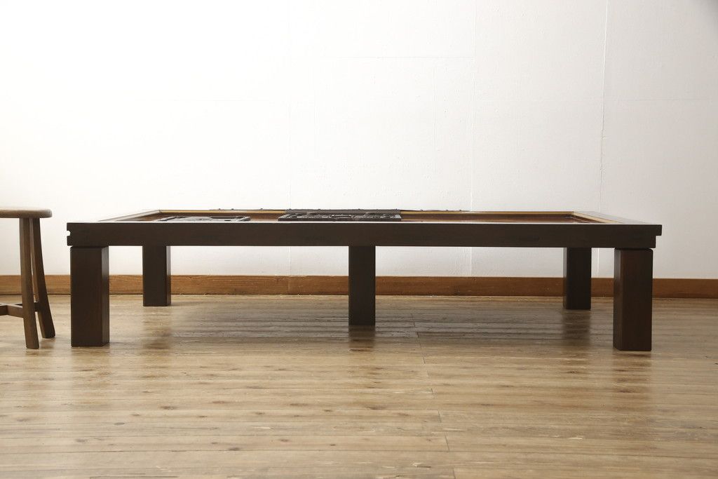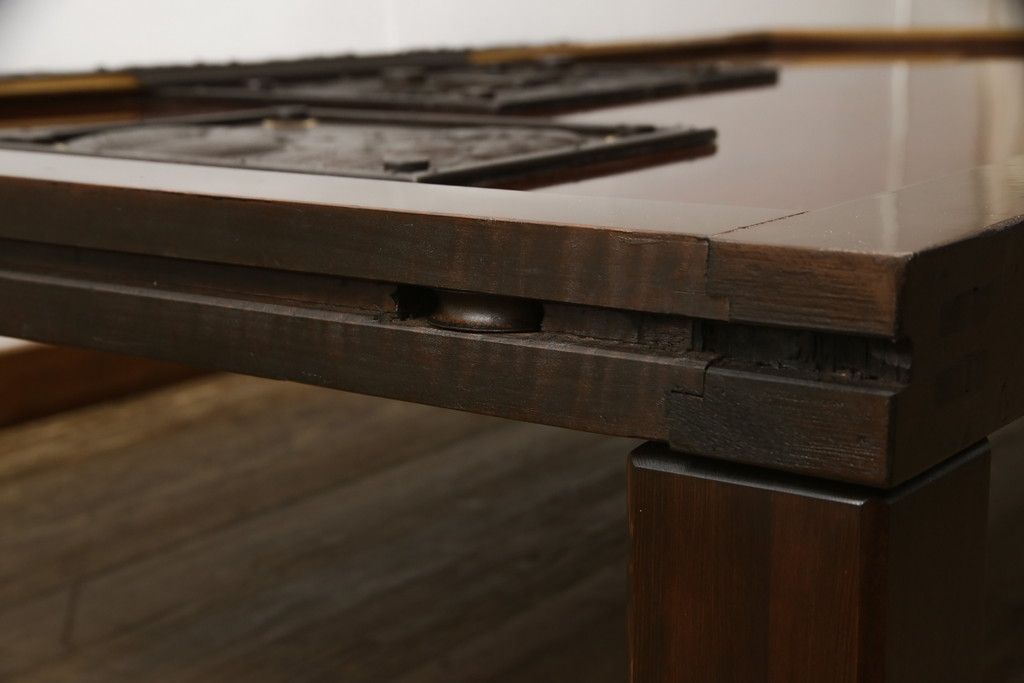 セミオーダー家具実績 > 明治大正期の蔵戸をリペア&カスタム!木製脚5本を取り付けテーブルにリメイク。脚は縁の色に合わせて着色し仕上げ。(座卓、ローテーブル)