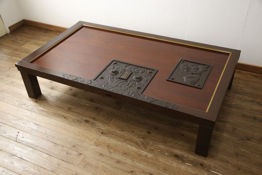 テーブル> 座卓 > 明治大正期の蔵戸をリペア&カスタム!木製脚5本を取り付けテーブルにリメイク。脚は縁の色に合わせて着色し仕上げ。(座卓、ローテーブル)