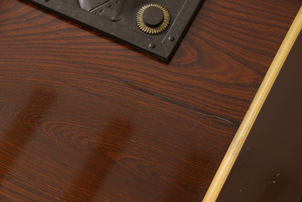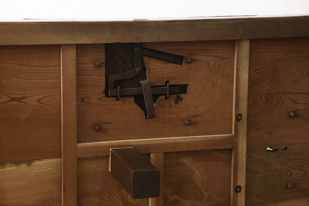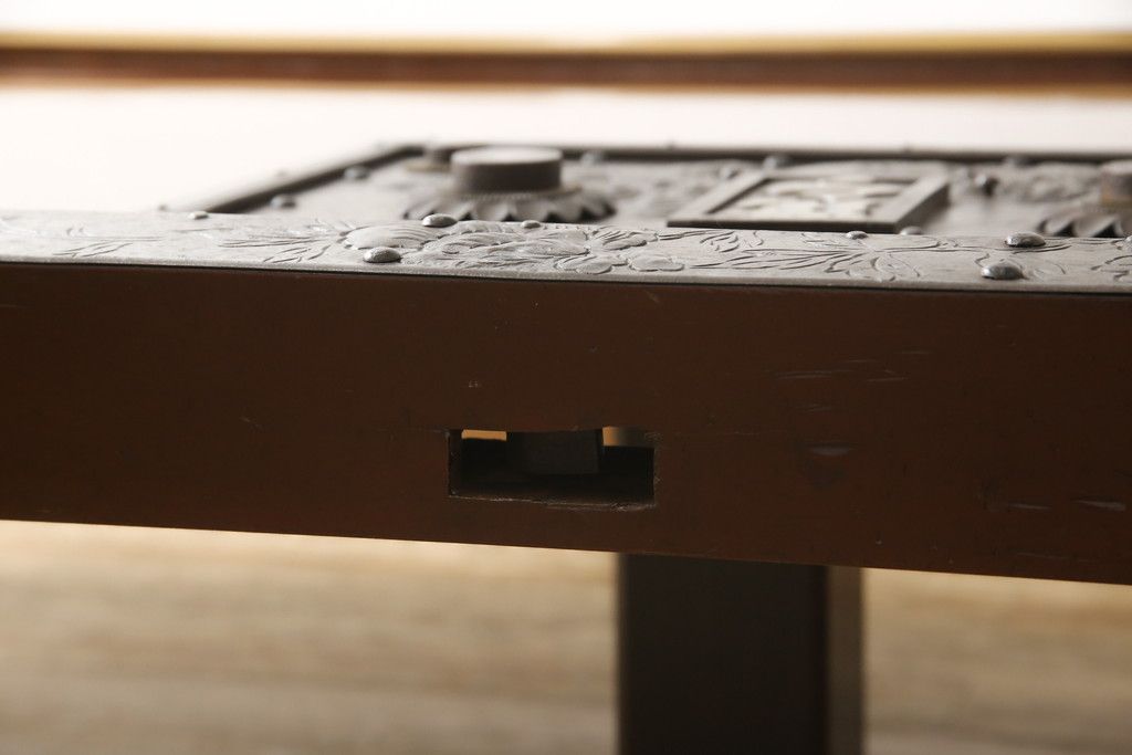 ドア・建具> 蔵戸 > 明治大正期の蔵戸をリペア&カスタム!木製脚5本を取り付けテーブルにリメイク。脚は縁の色に合わせて着色し仕上げ。(座卓、ローテーブル)