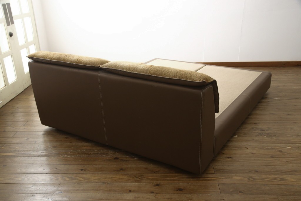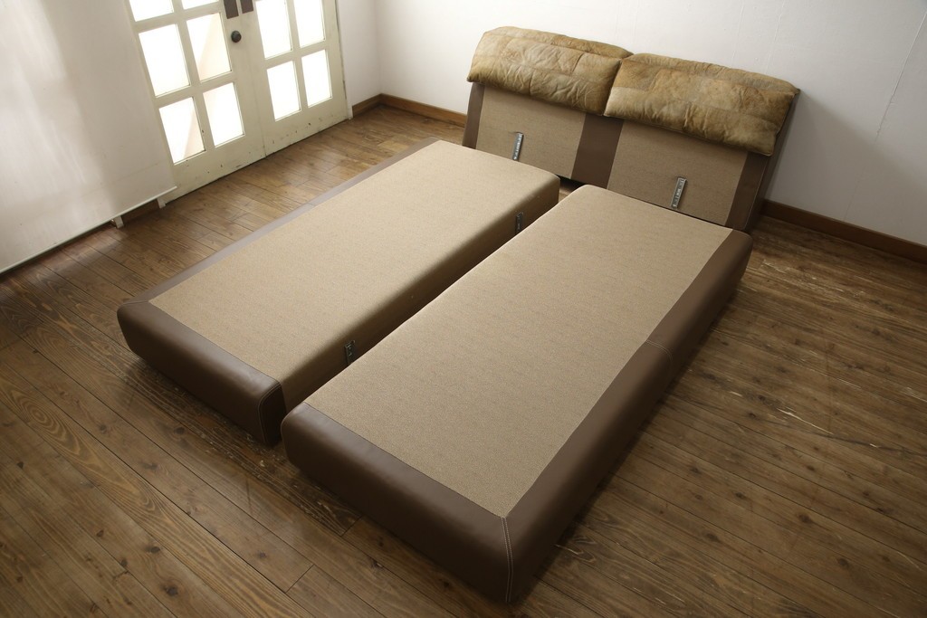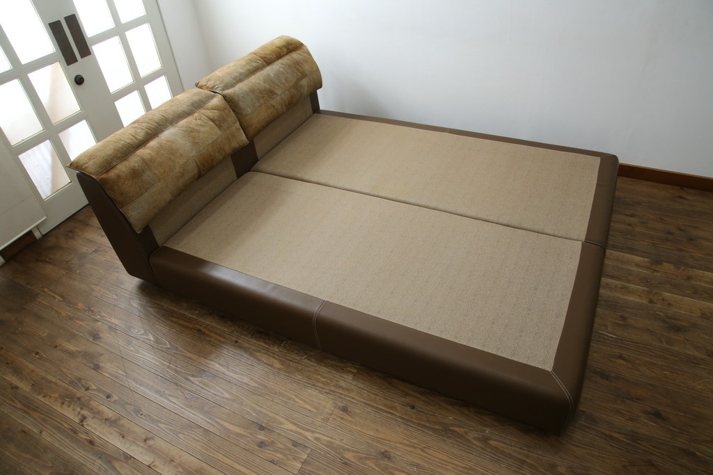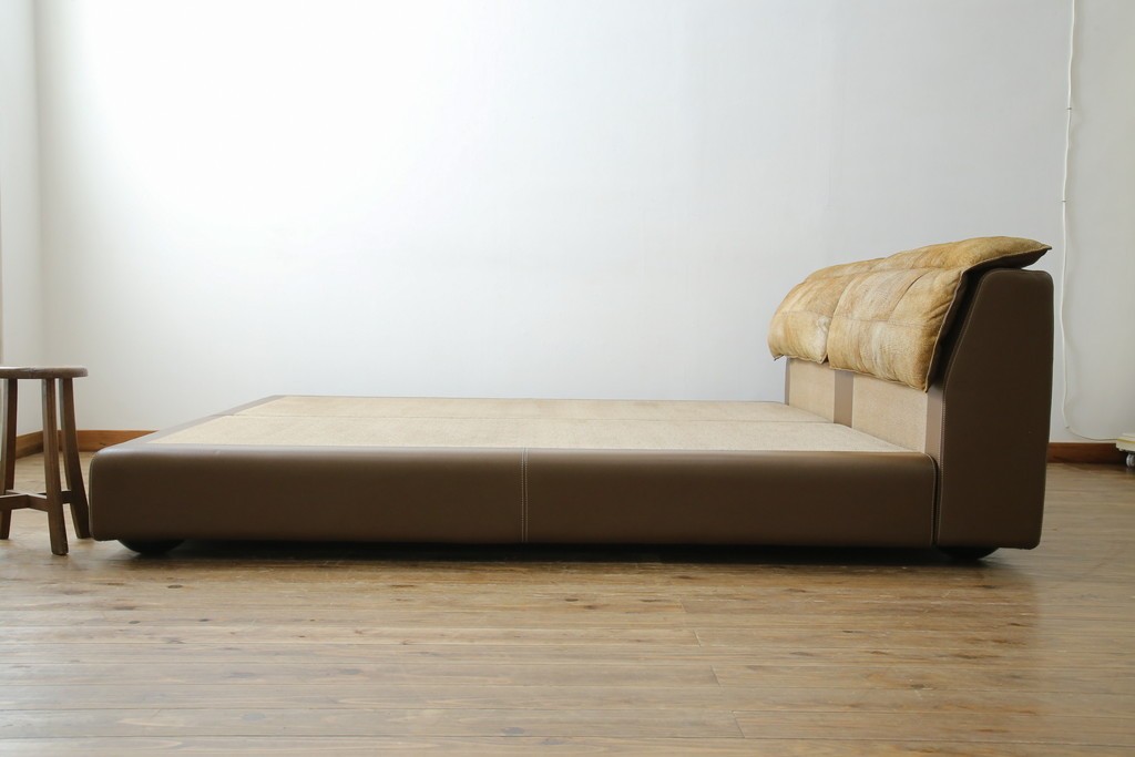 ベッド> クイーン > 中古 イタリア家具 総本革(ボルボネーゼ) rossi di albizzate(ロッシディアルビザーテ) 高級感と洗練されたデザインが魅力のベッドフレーム(クイーンサイズ) 定価約152万円相当 (R-059350)