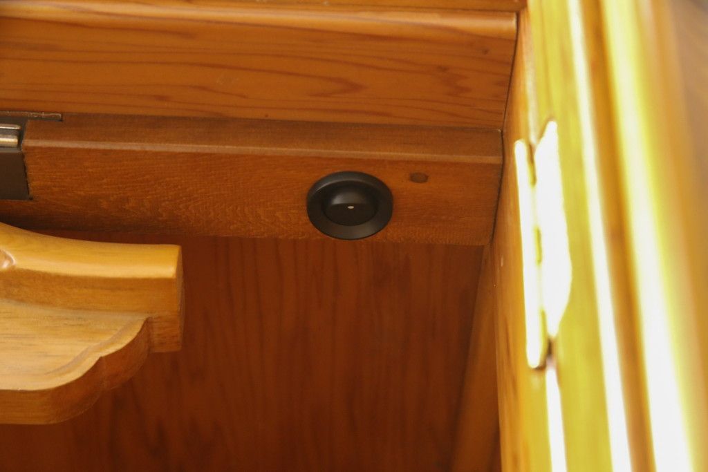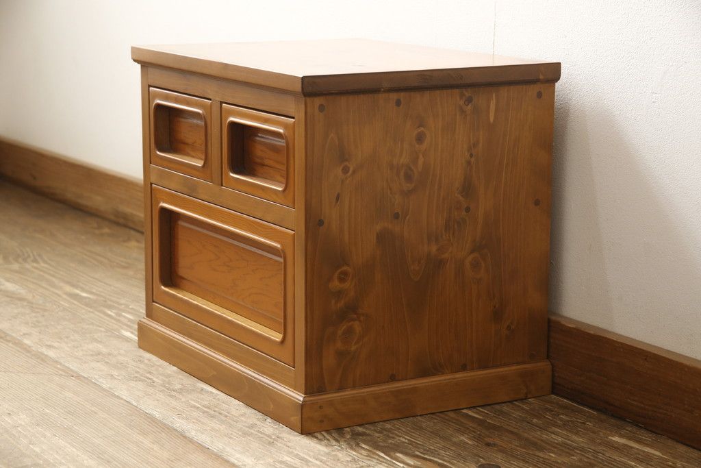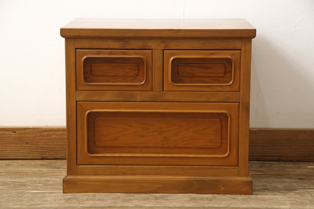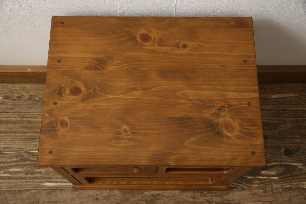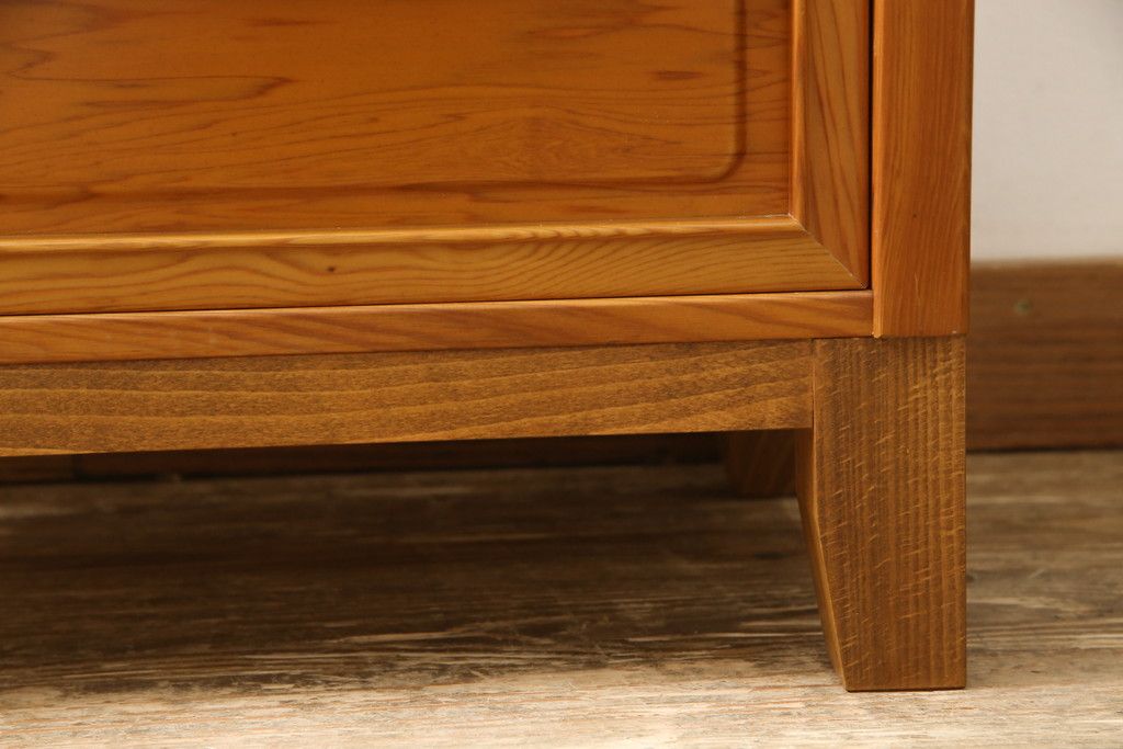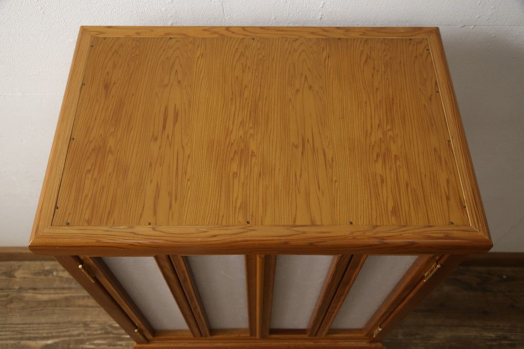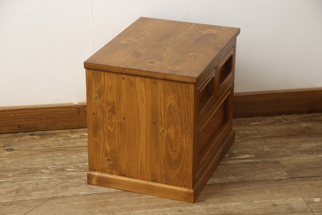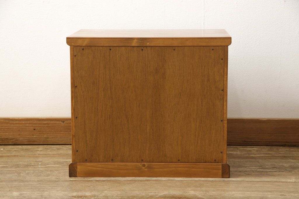 ラフジュ工房> お手持ちの家具・建具リメイク実績> 仏壇リメイク実績 > お仏壇を小型仏壇と小引き出しにリメイク!指定サイズにリサイズし、小型仏壇の上段にはアクリルワーロンの4枚戸を設置。下段には引き出し2杯と脚を取り付け。元の扉1枚と引き出しを活用し、小引き出しに。