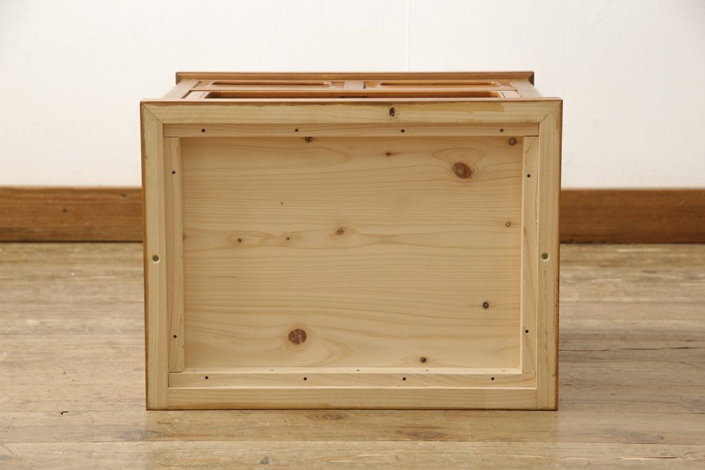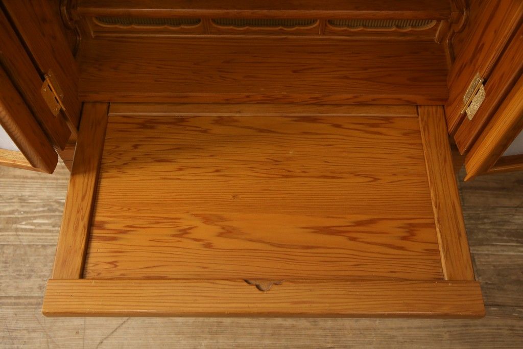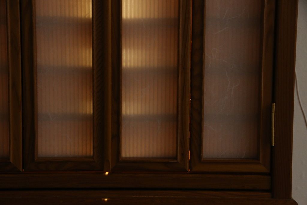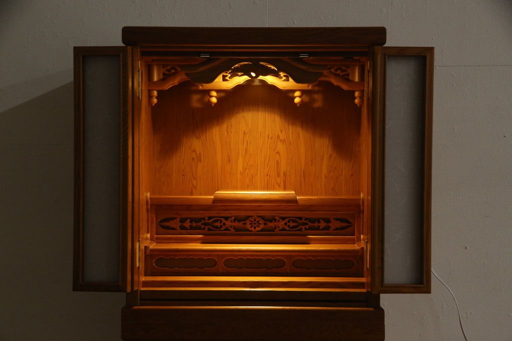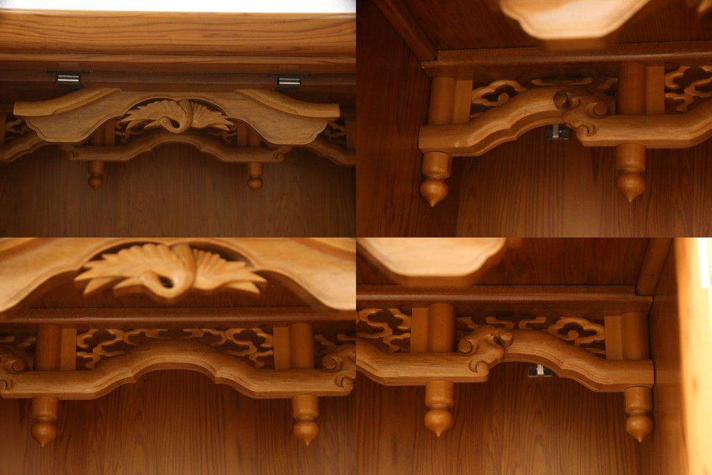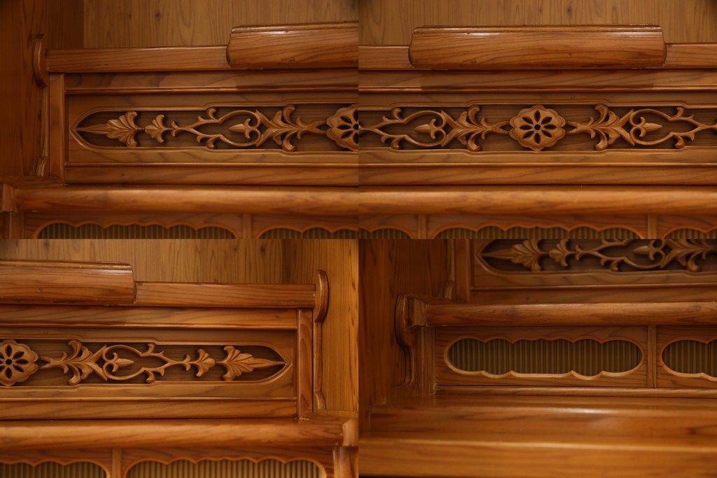 ラフジュ工房> 仏壇 > お仏壇を小型仏壇と小引き出しにリメイク!指定サイズにリサイズし、小型仏壇の上段にはアクリルワーロンの4枚戸を設置。下段には引き出し2杯と脚を取り付け。元の扉1枚と引き出しを活用し、小引き出しに。
