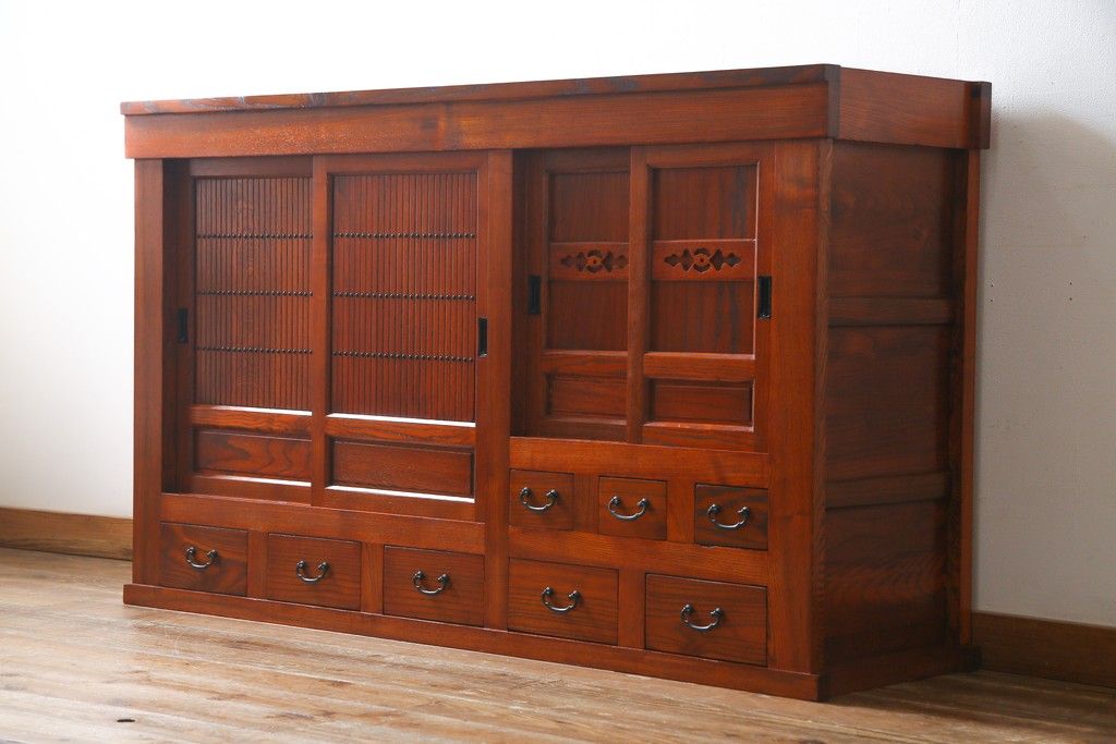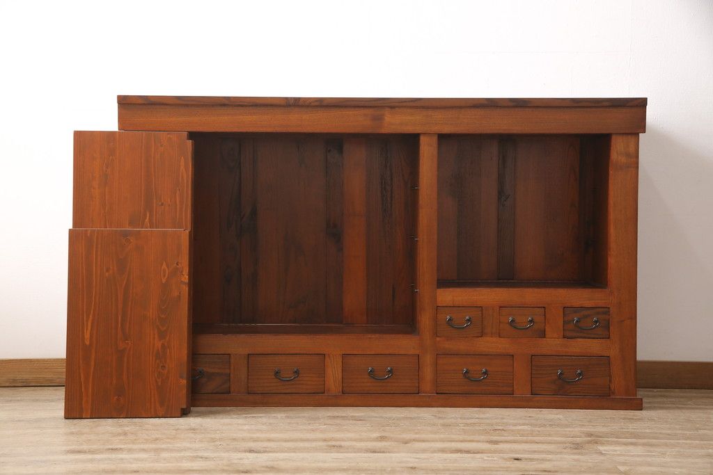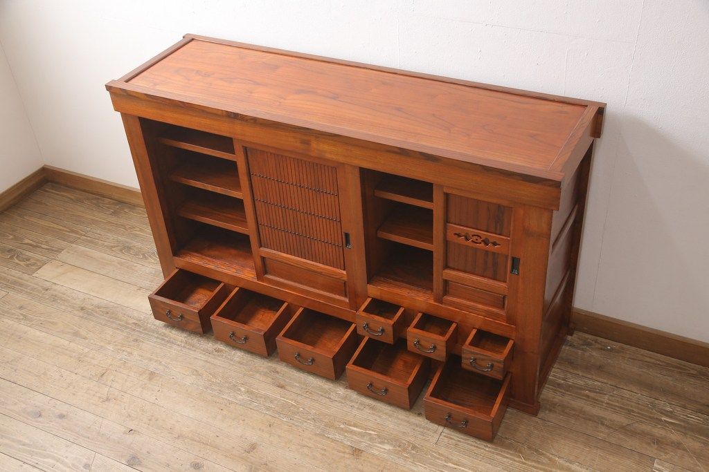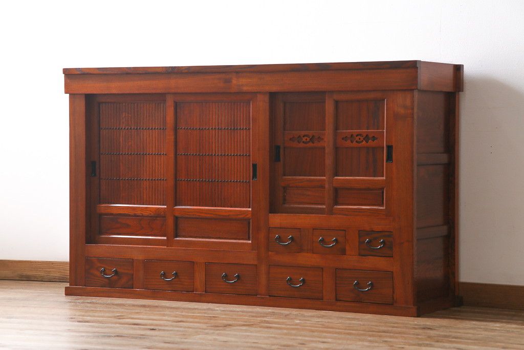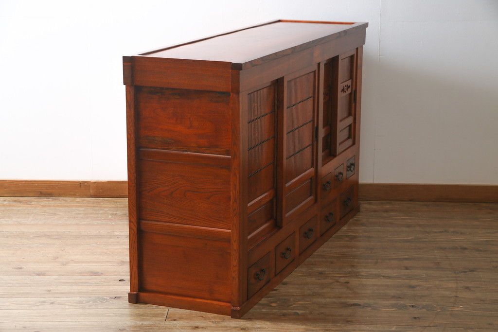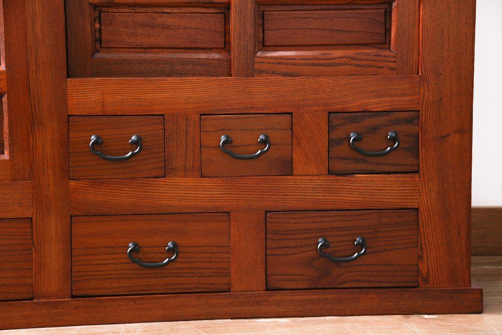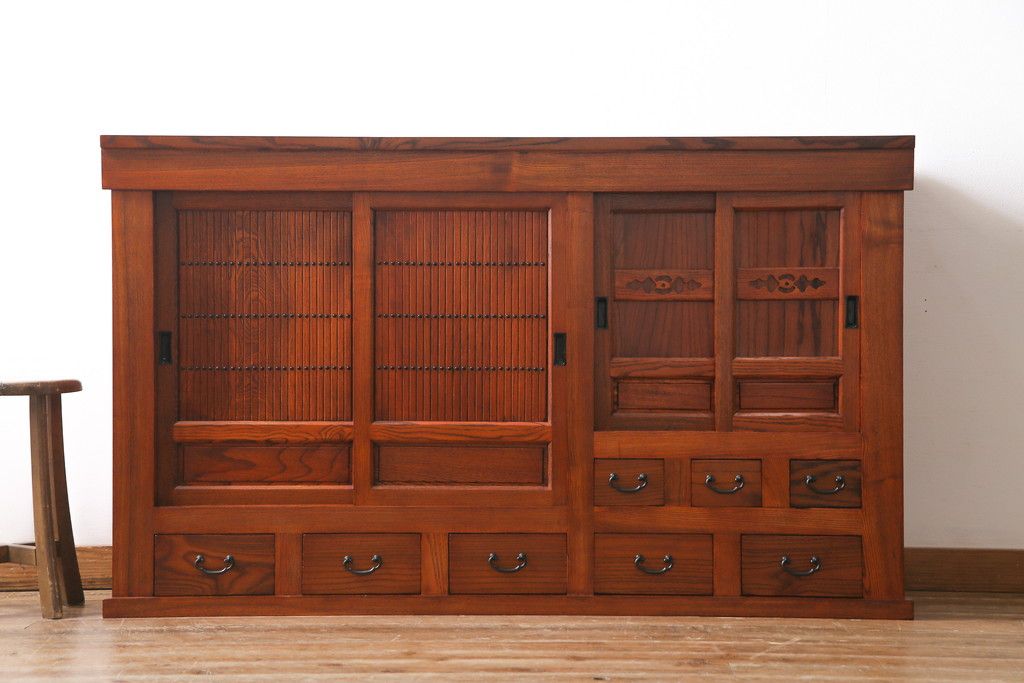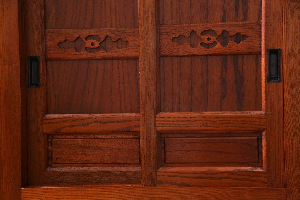 キャビネット・戸棚> サイドキャビネット > 水屋箪笥をリペア&カスタム!既存の棚板を取り外し、新たにヒノキ無垢材の可動式棚板を製作・取り付け。天板裏を補強。(収納棚、戸棚、キャビネット、食器棚、サイドボード)