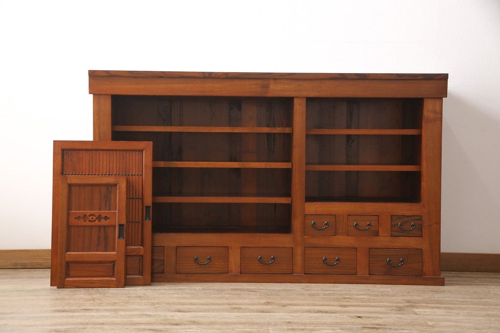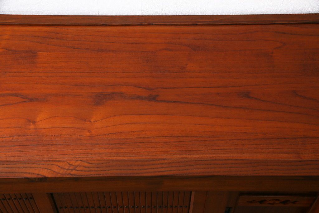 水屋箪笥をリペア&カスタム!既存の棚板を取り外し、新たにヒノキ無垢材の可動式棚板を製作・取り付け。天板裏を補強。(収納棚、戸棚、キャビネット、食器棚、サイドボード)