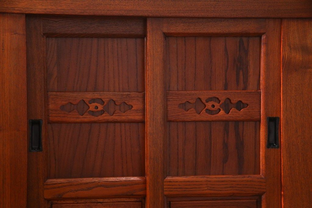 和箪笥> 水屋箪笥 > 水屋箪笥をリペア&カスタム!既存の棚板を取り外し、新たにヒノキ無垢材の可動式棚板を製作・取り付け。天板裏を補強。(収納棚、戸棚、キャビネット、食器棚、サイドボード)